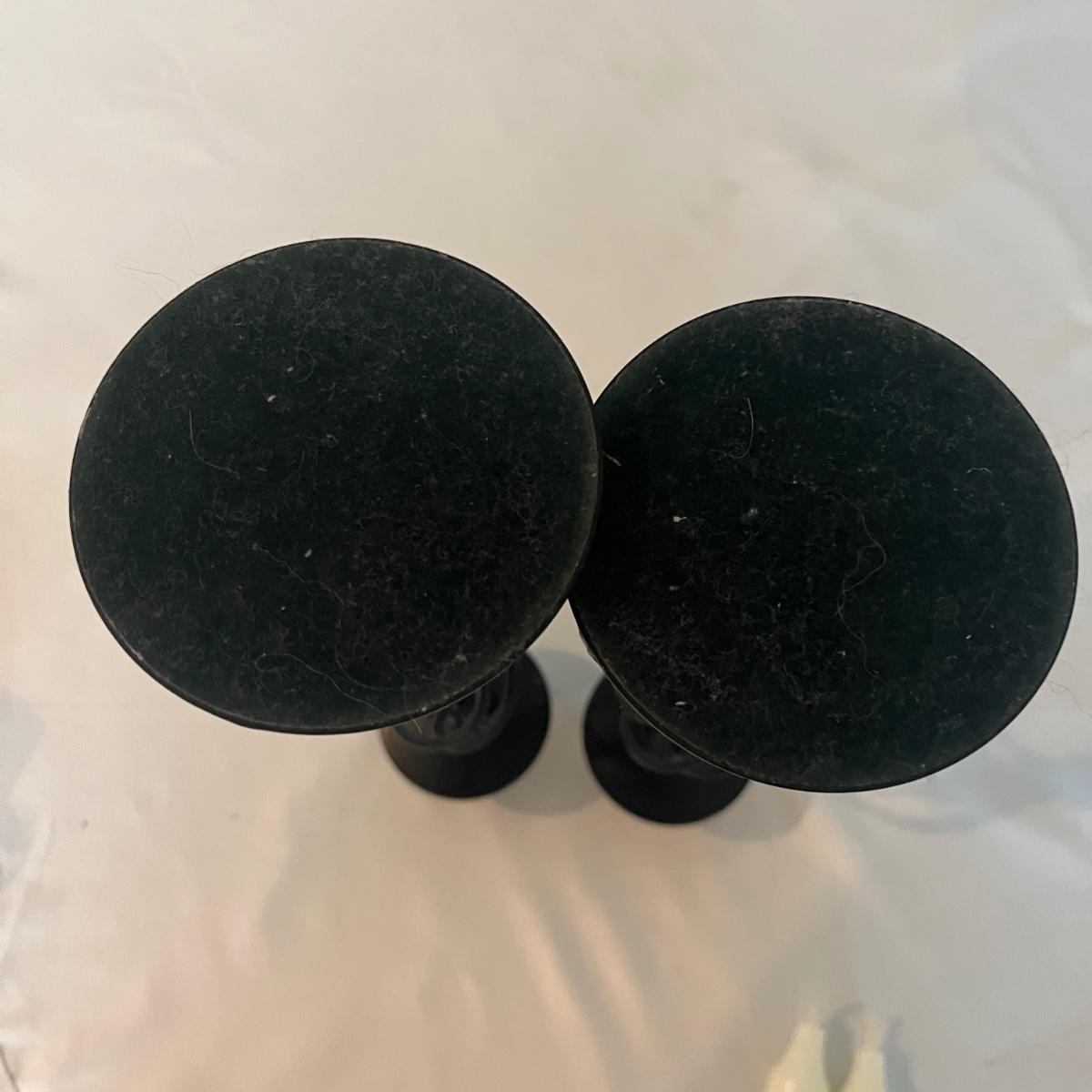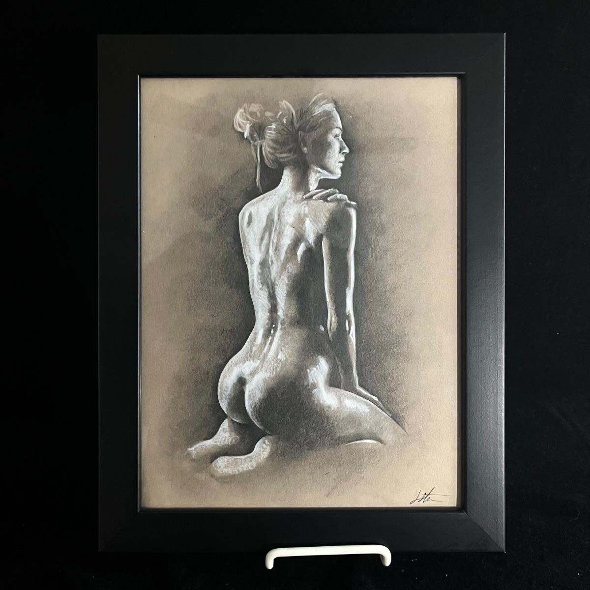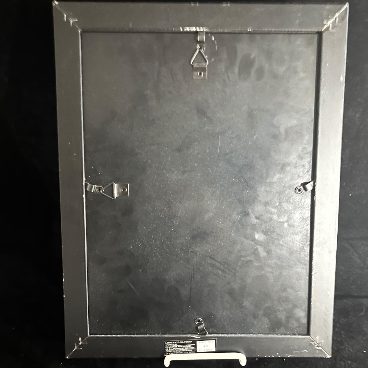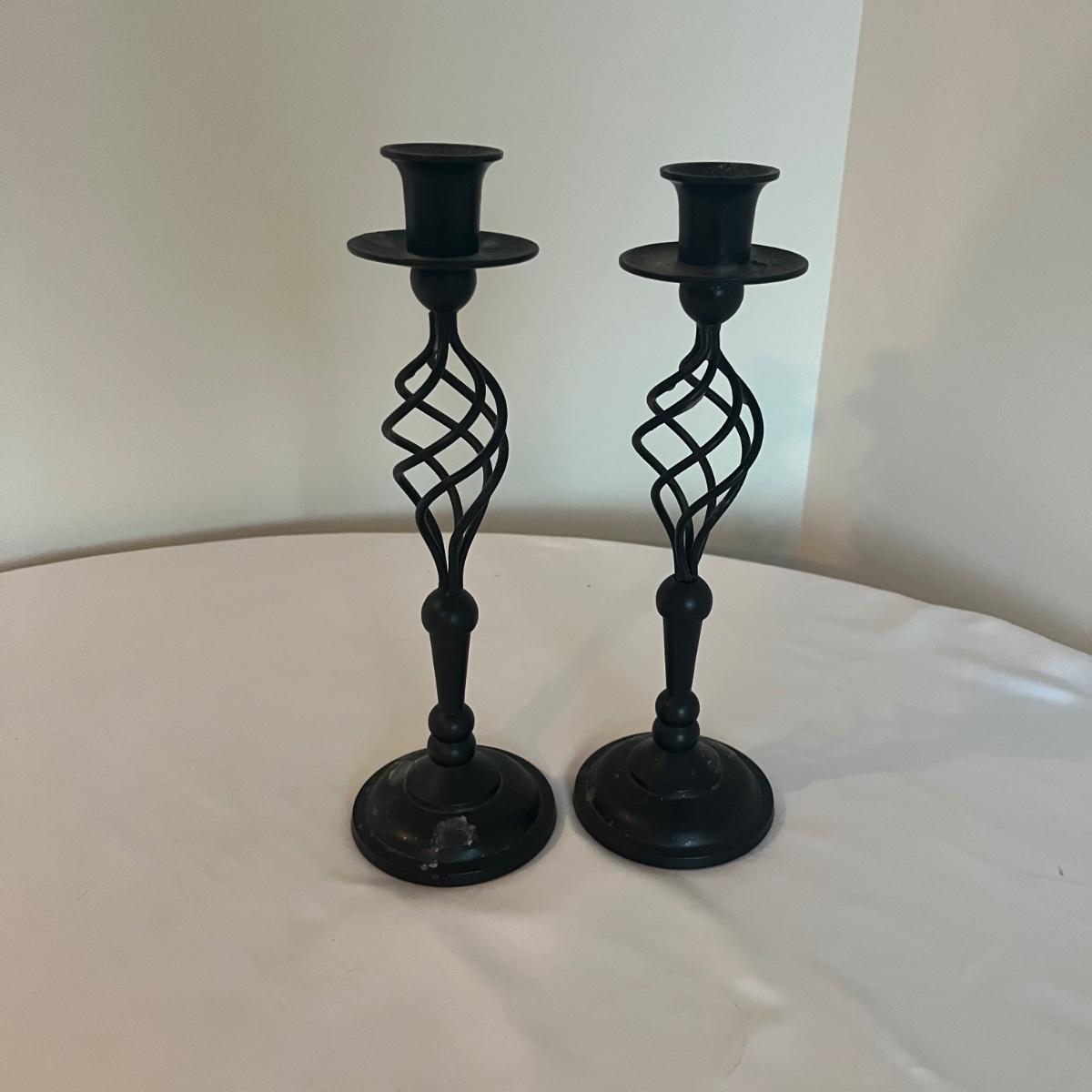 Lot includes two metal candlesticks with candles. Also includes a framed piece of art under glass that appears to be a pencil drawing, but we cannot guarantee the medium. It is signed. Frame is a black resin like material and measures 11” x 14”.