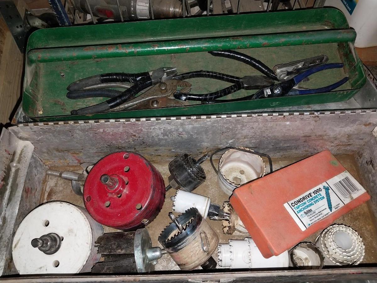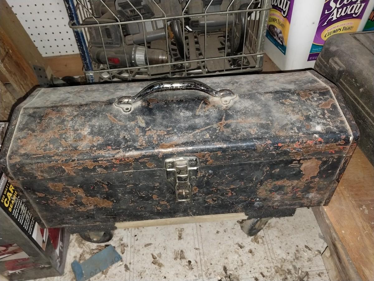 METAL CARRY TOOLBOX WITH TRAY AND HAND TOOLS