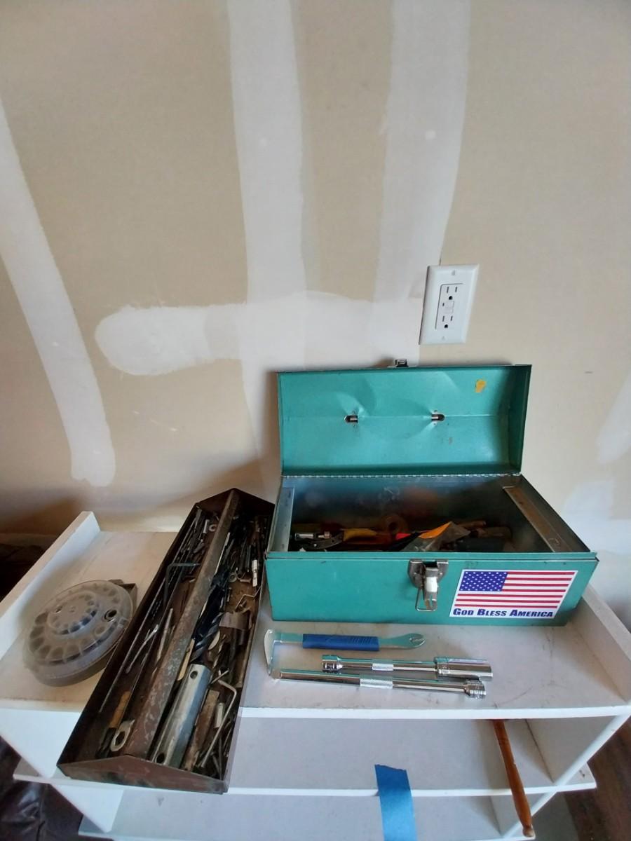 , METAL TOOLBOX WITH SOME HAND TOOLS