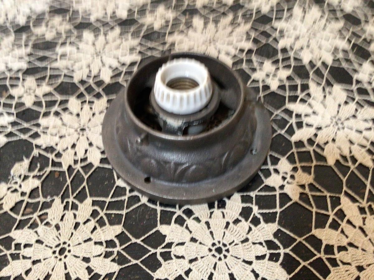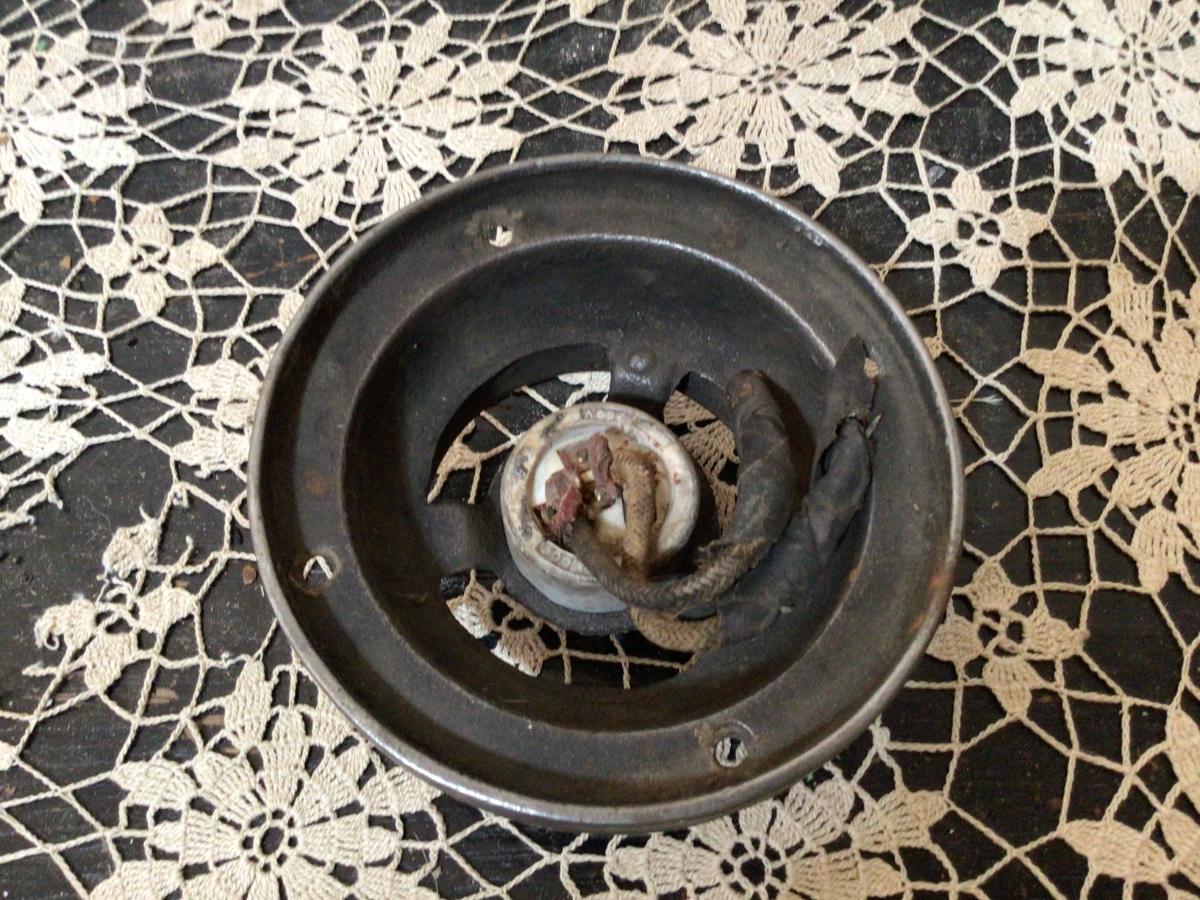 This is great brass metal ceiling light fixture no globe. Needs rewiring.