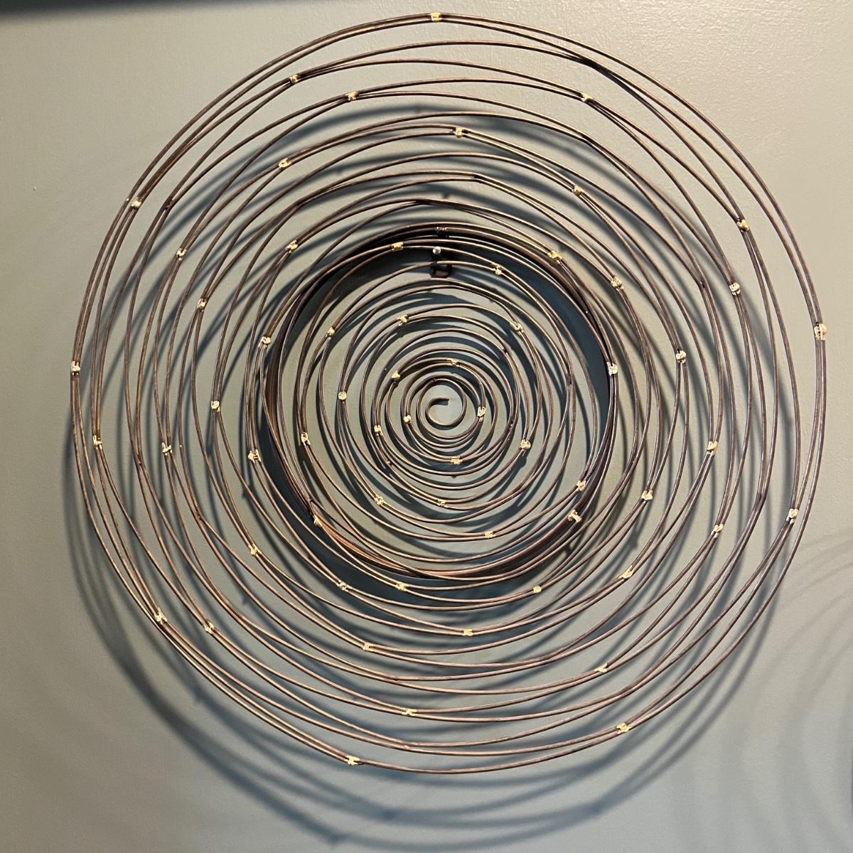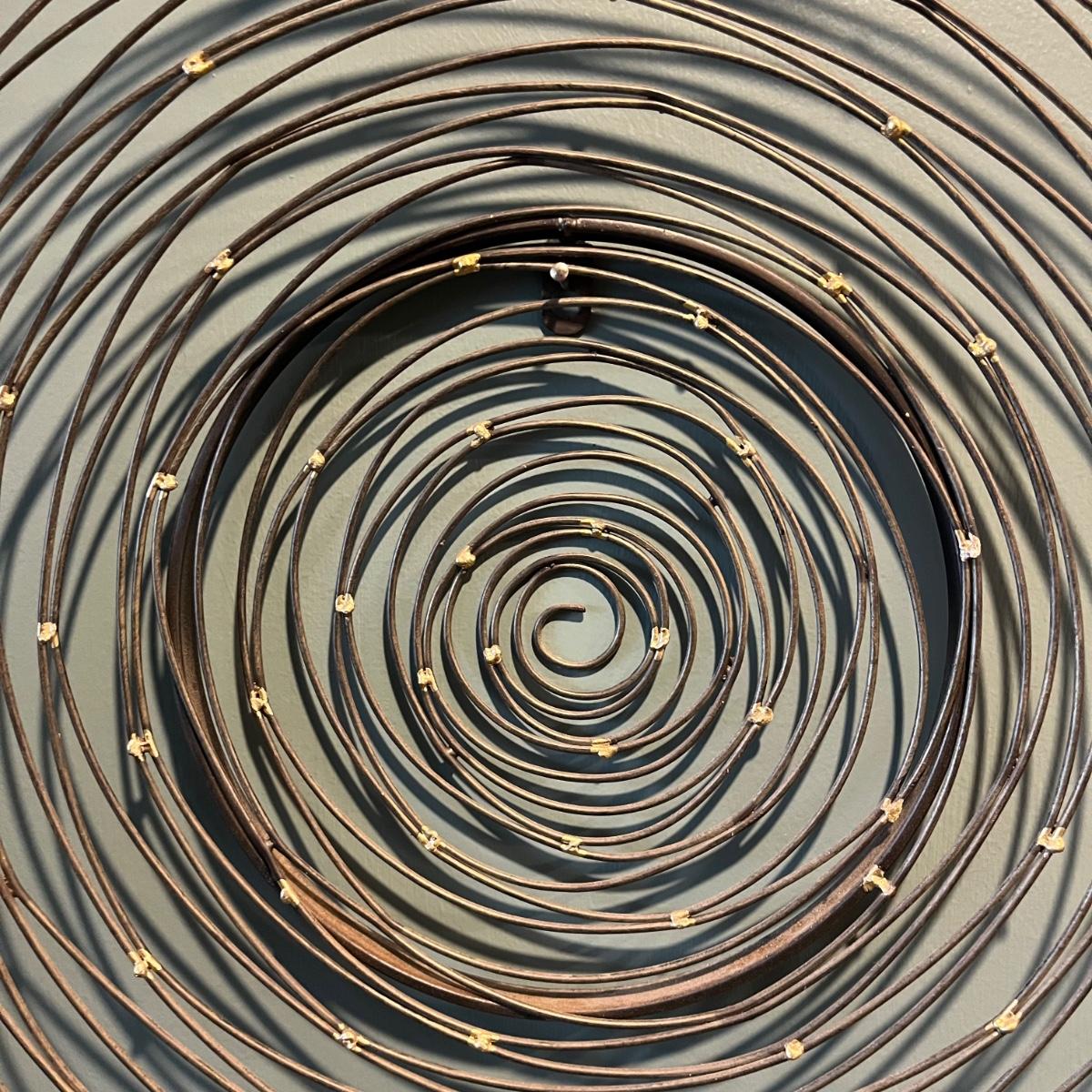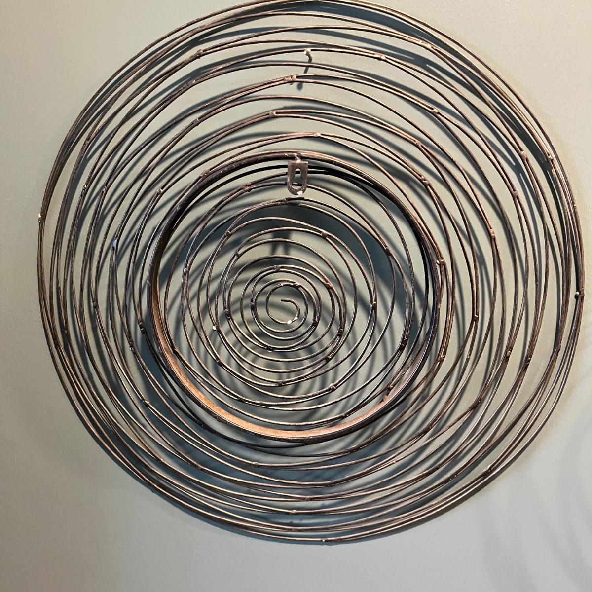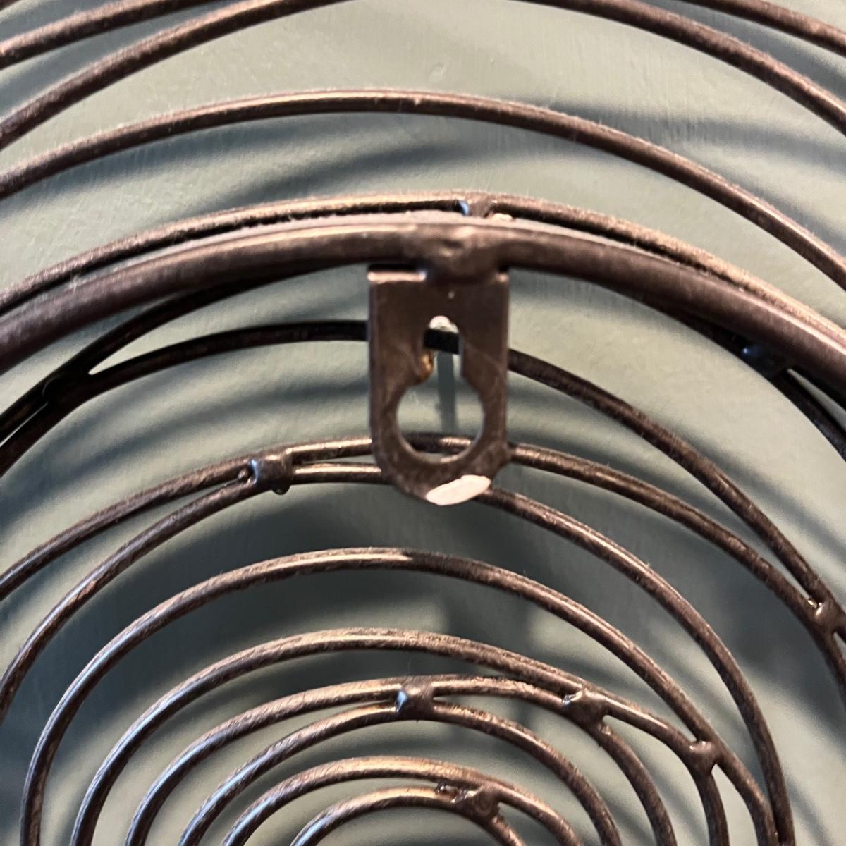 Lot includes two metal pieces of wall art that have brass colored welds. One measures 20”D and one measures 16”D. Both have wall mounts.