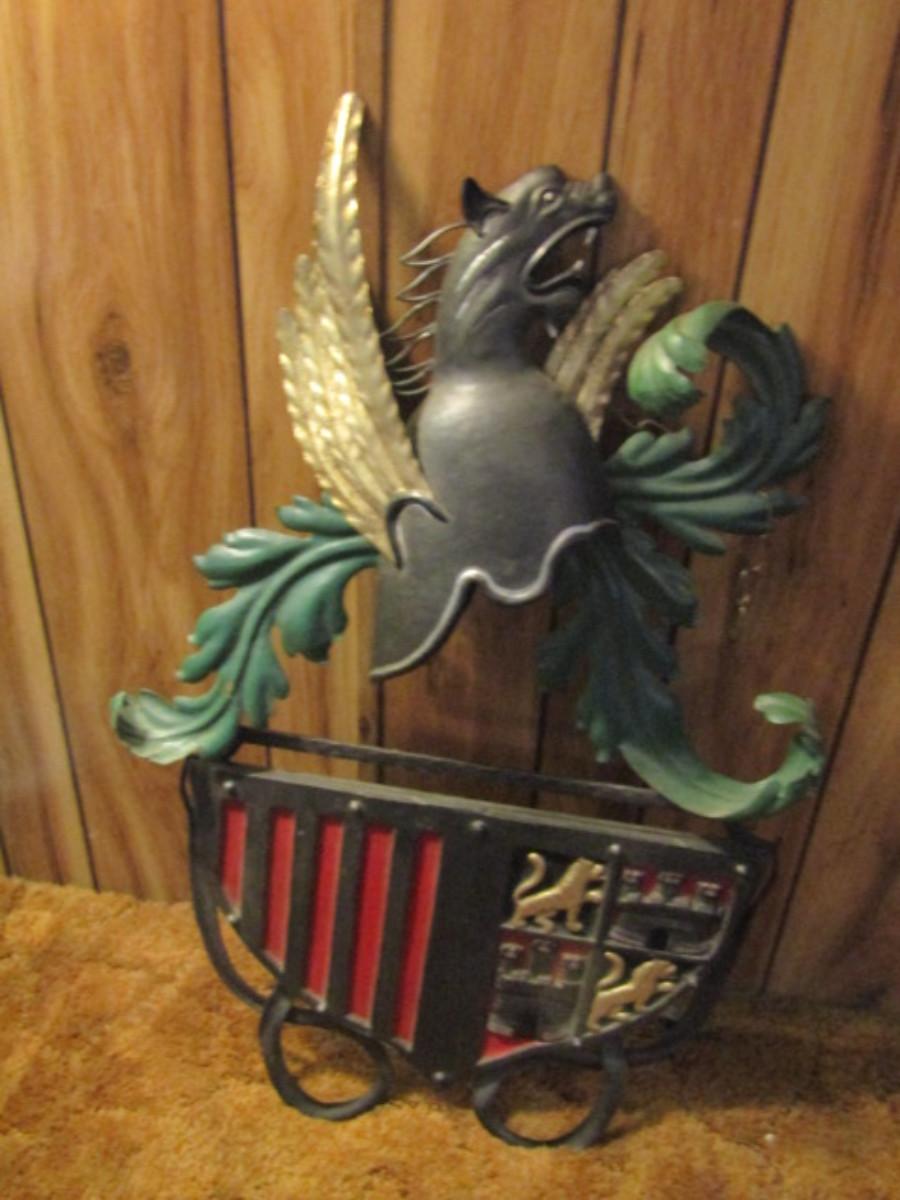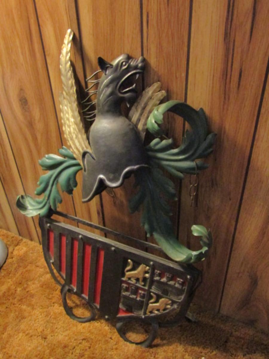 Metal Coat of Arms Hanging Wall Art- Approx 33" Tall, 21" Wide