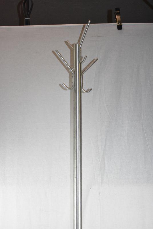 Metal Coat Rack. 4 Double Hooks. Brushed Silver Look. 14" Base 70" Tall