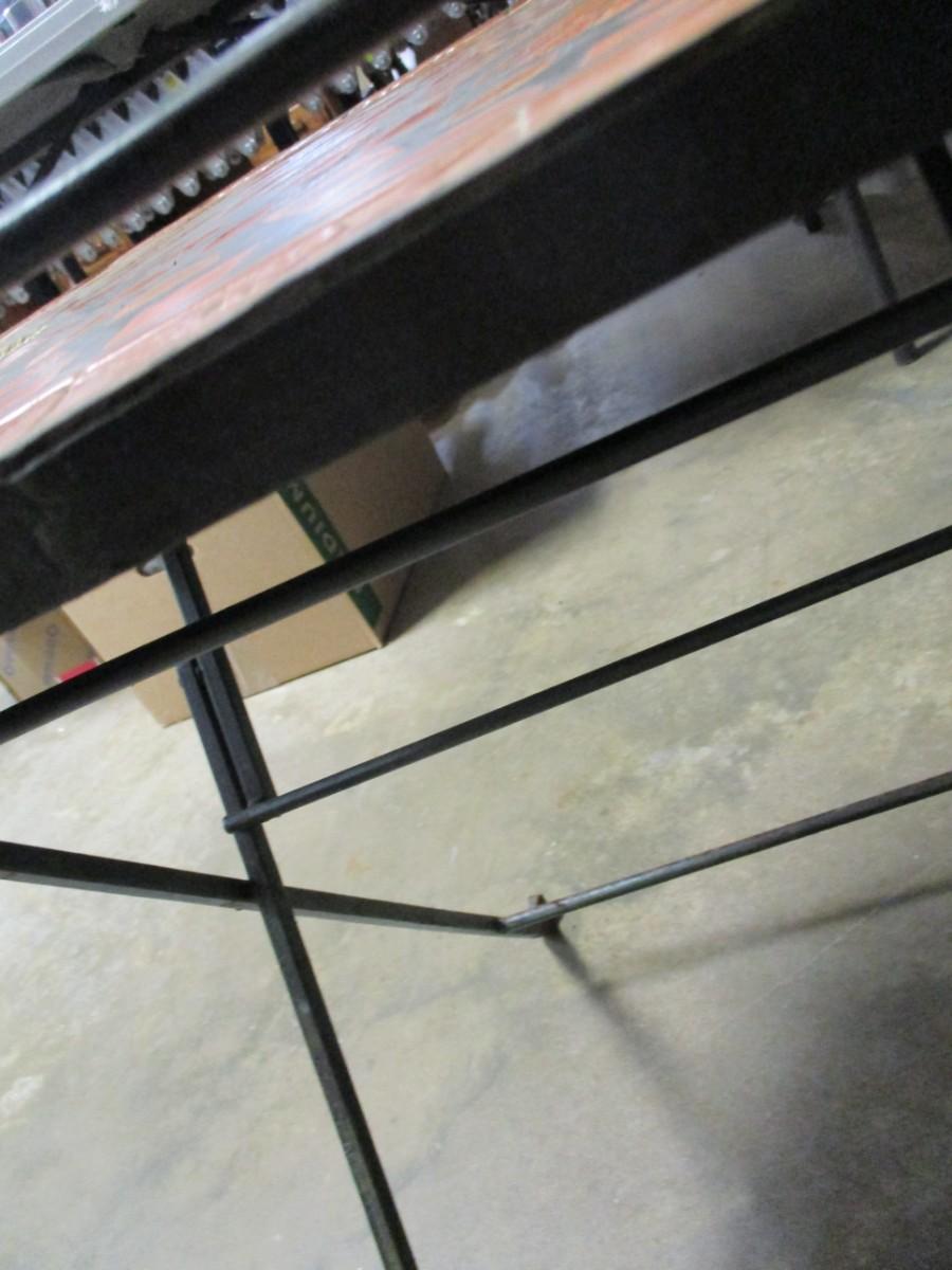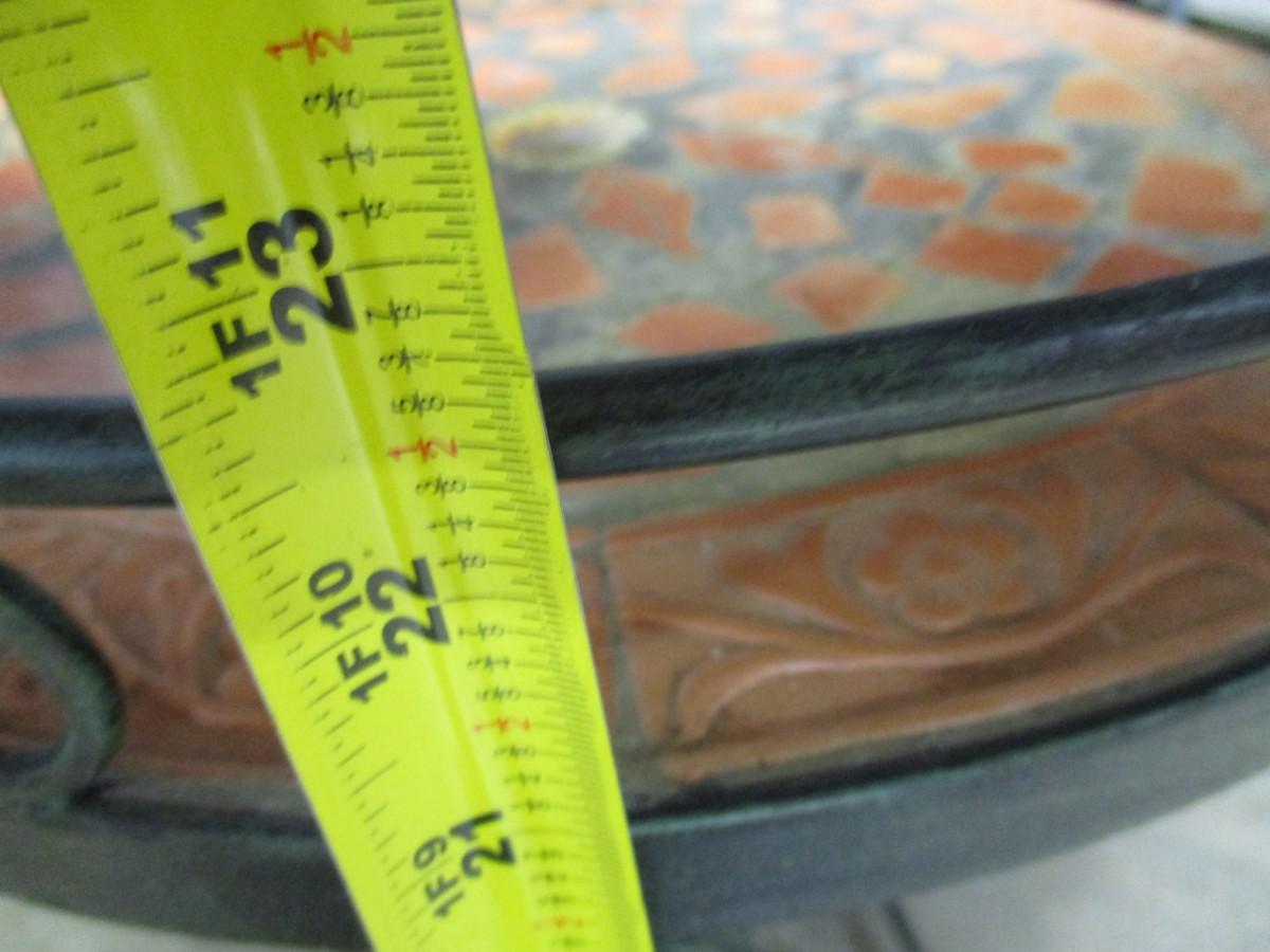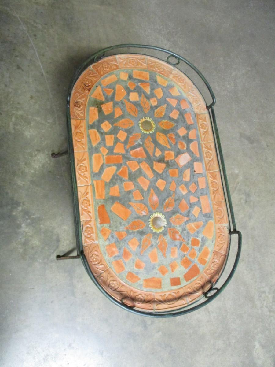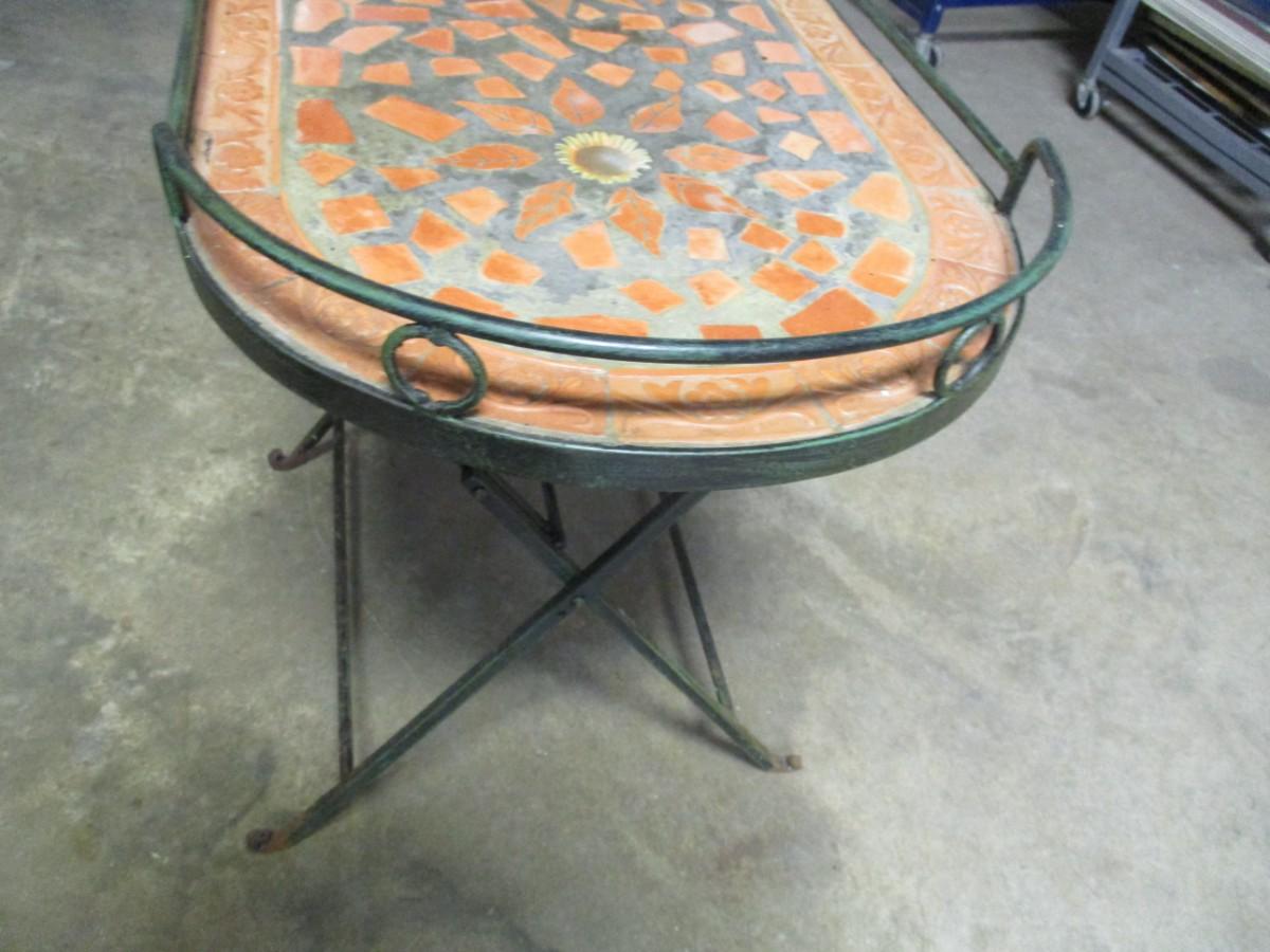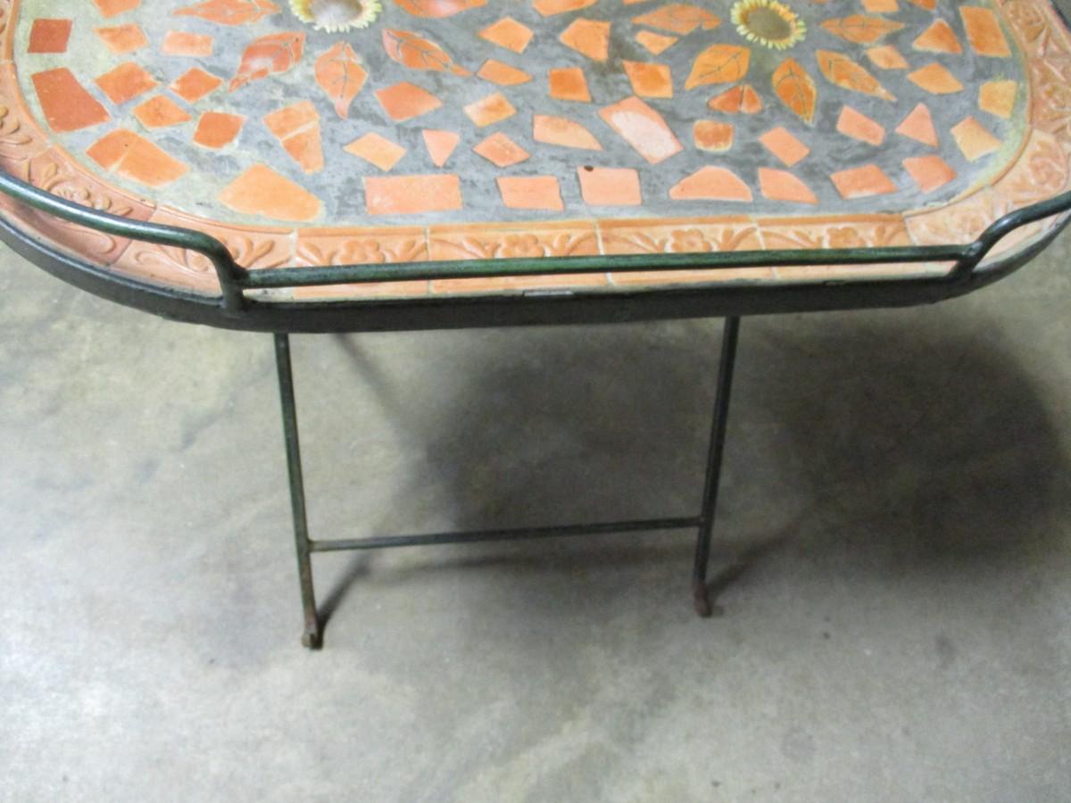 Vintage Wrought Iron Frame Folding Patio Table with Concrete and Tile Mosaic Surface