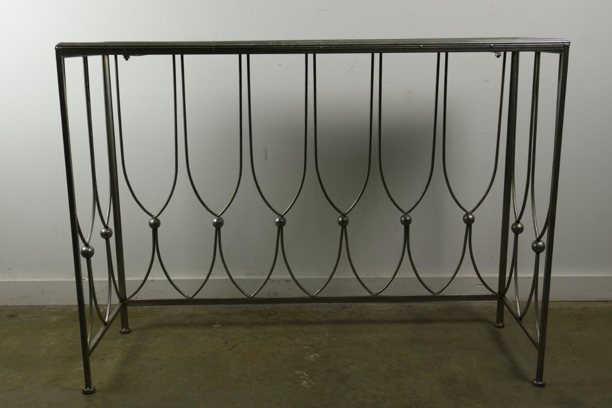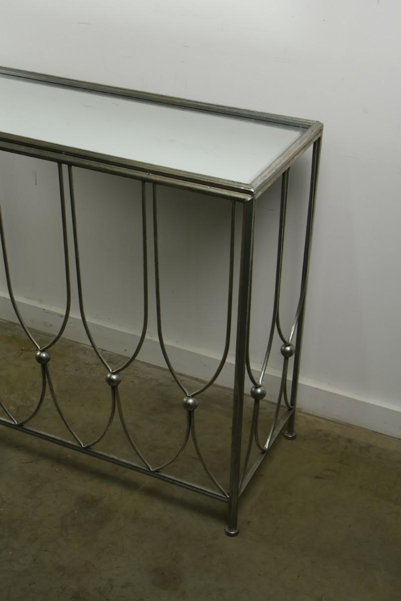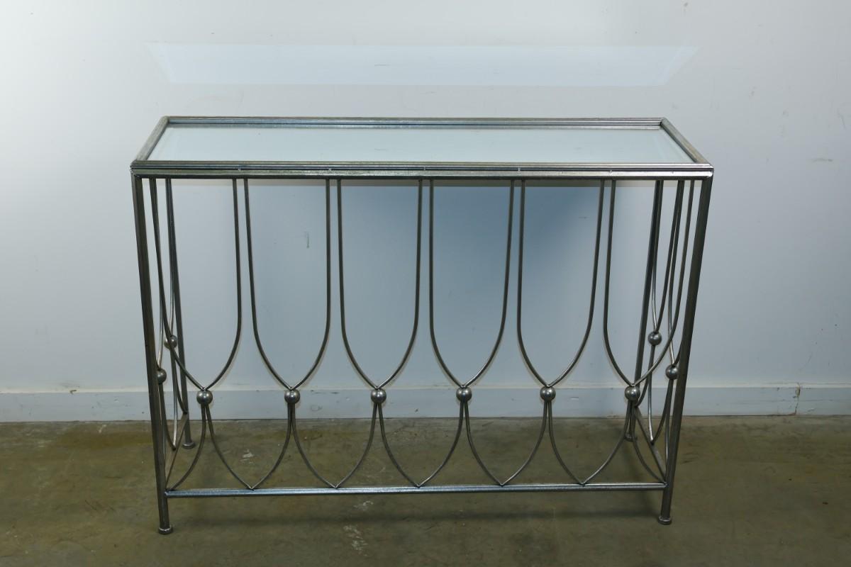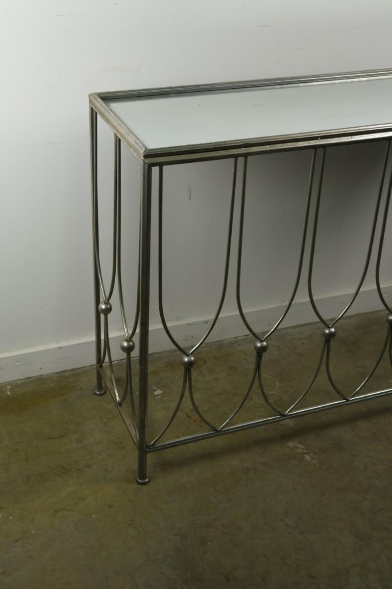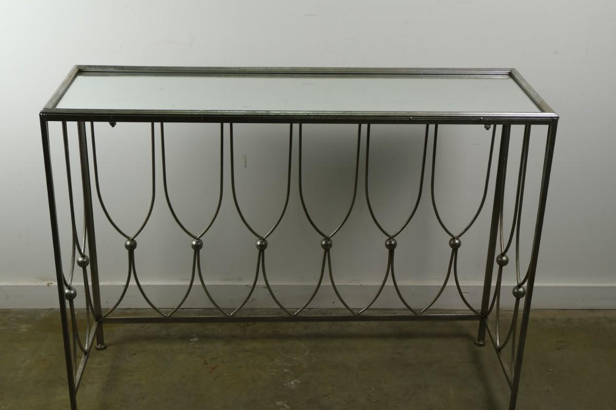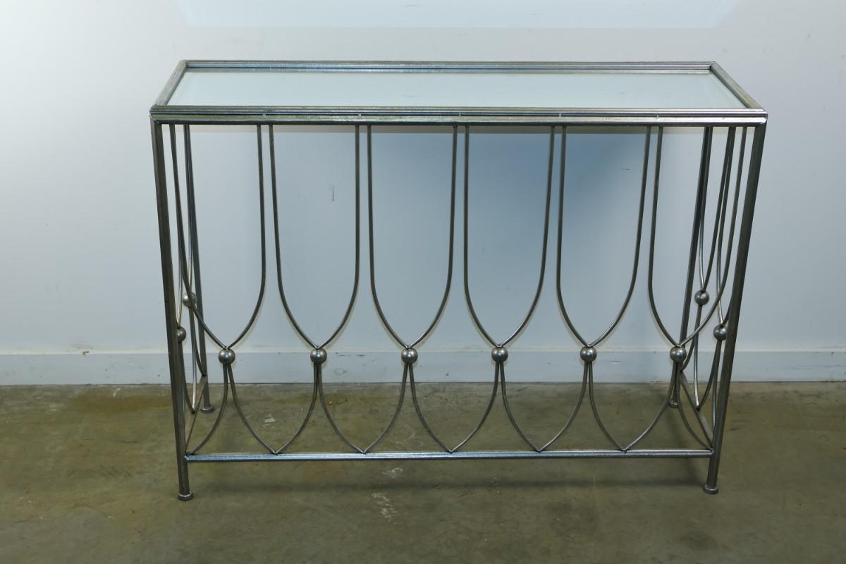 Metal Console with Mirrored Glass Top