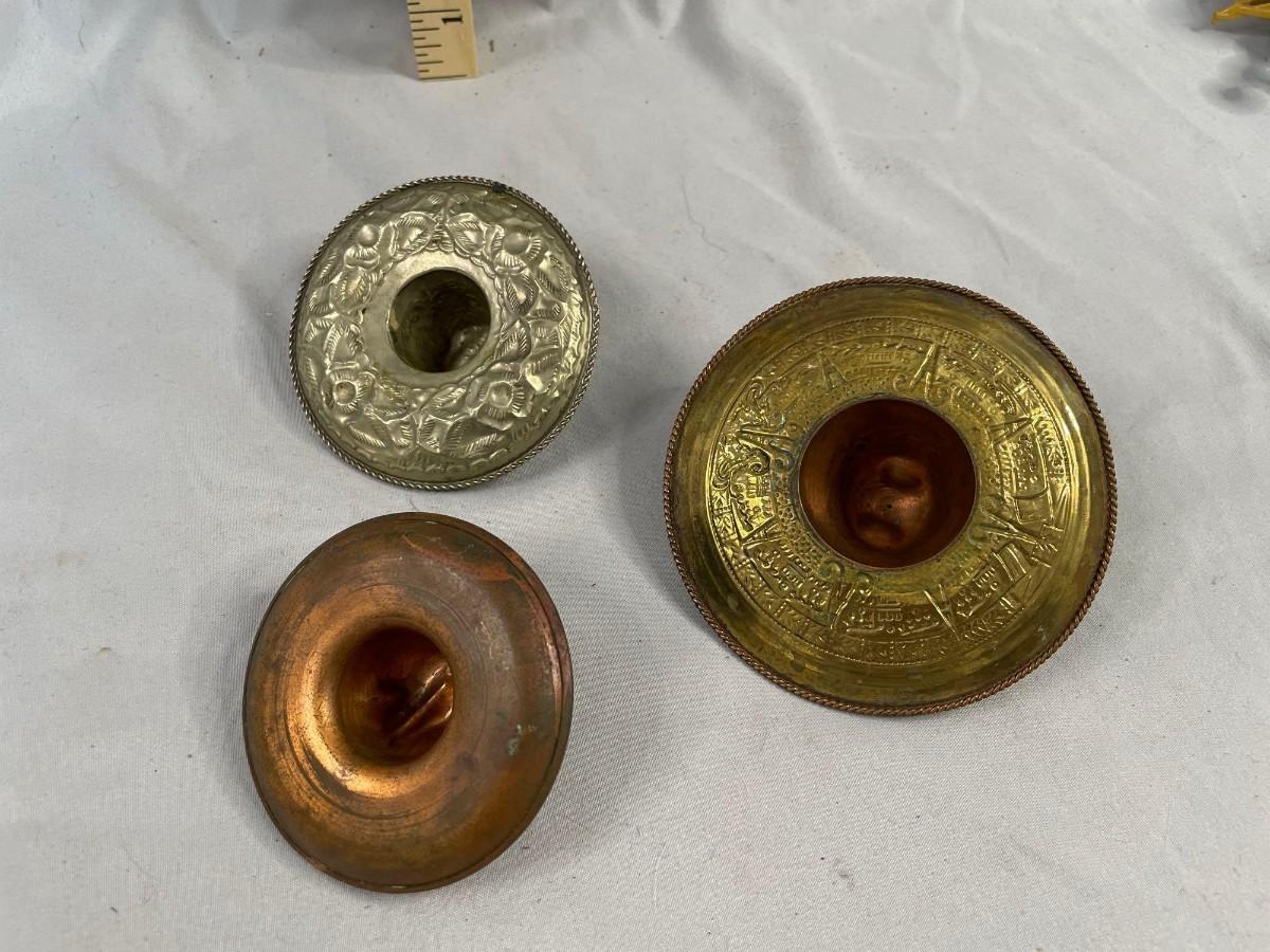 One each appears to be made from aluminum, copper, and brass.<br />