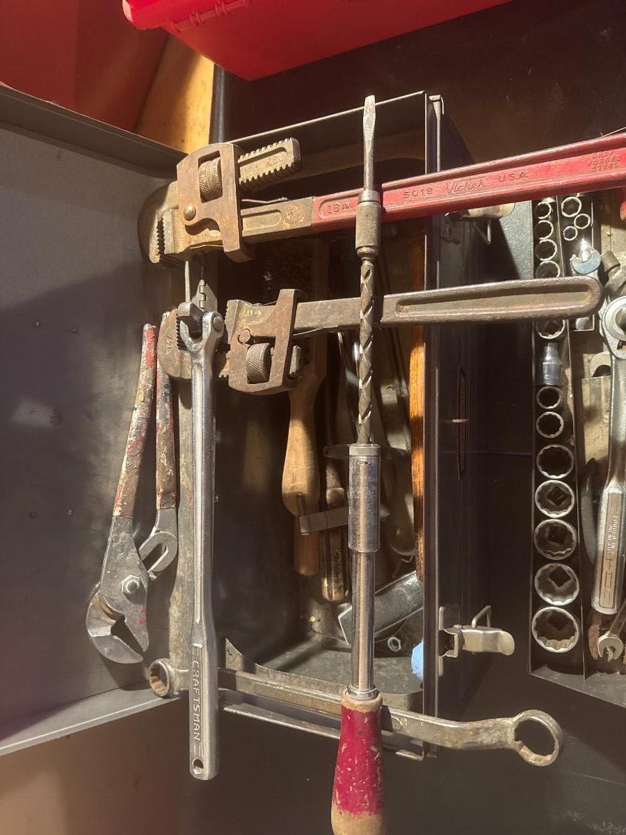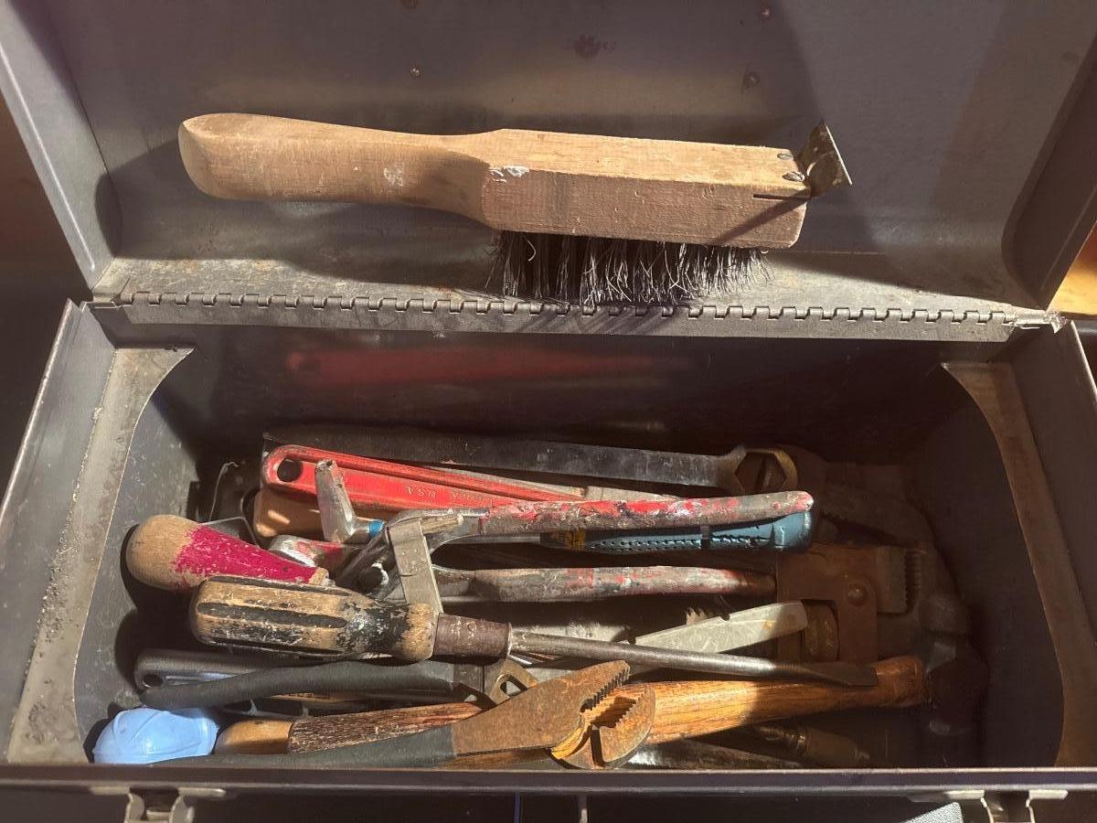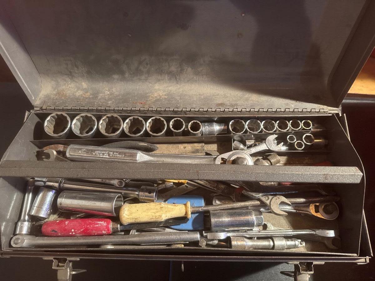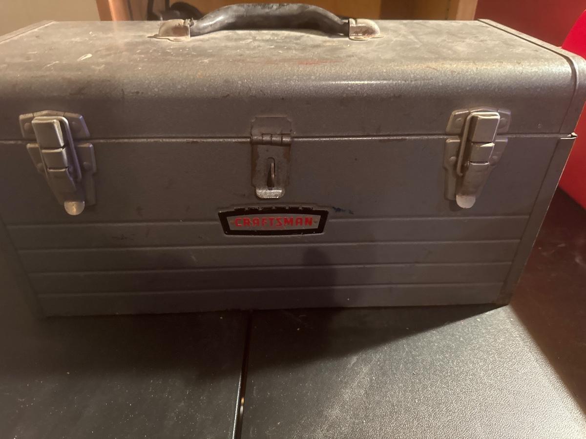 Metal Craftsman toolbox with assortment of tools