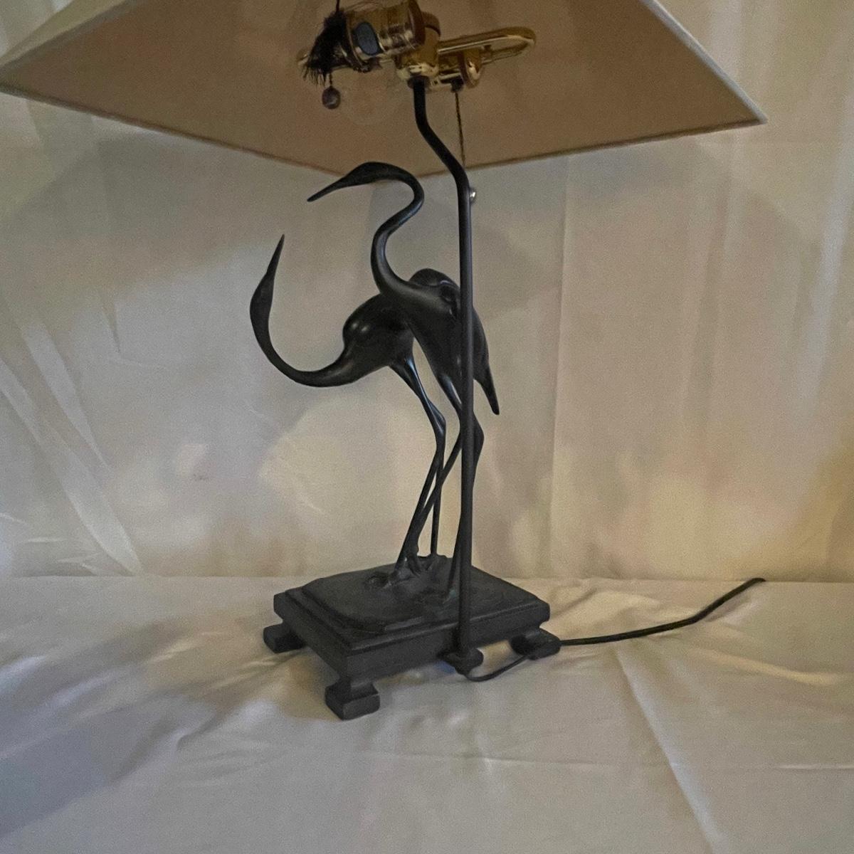 Pair of Metal Cranes Dual Bulb Lamps (LR-RG)