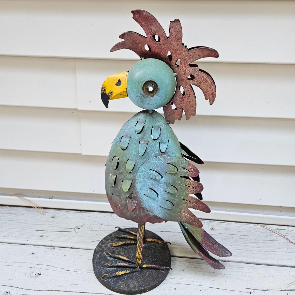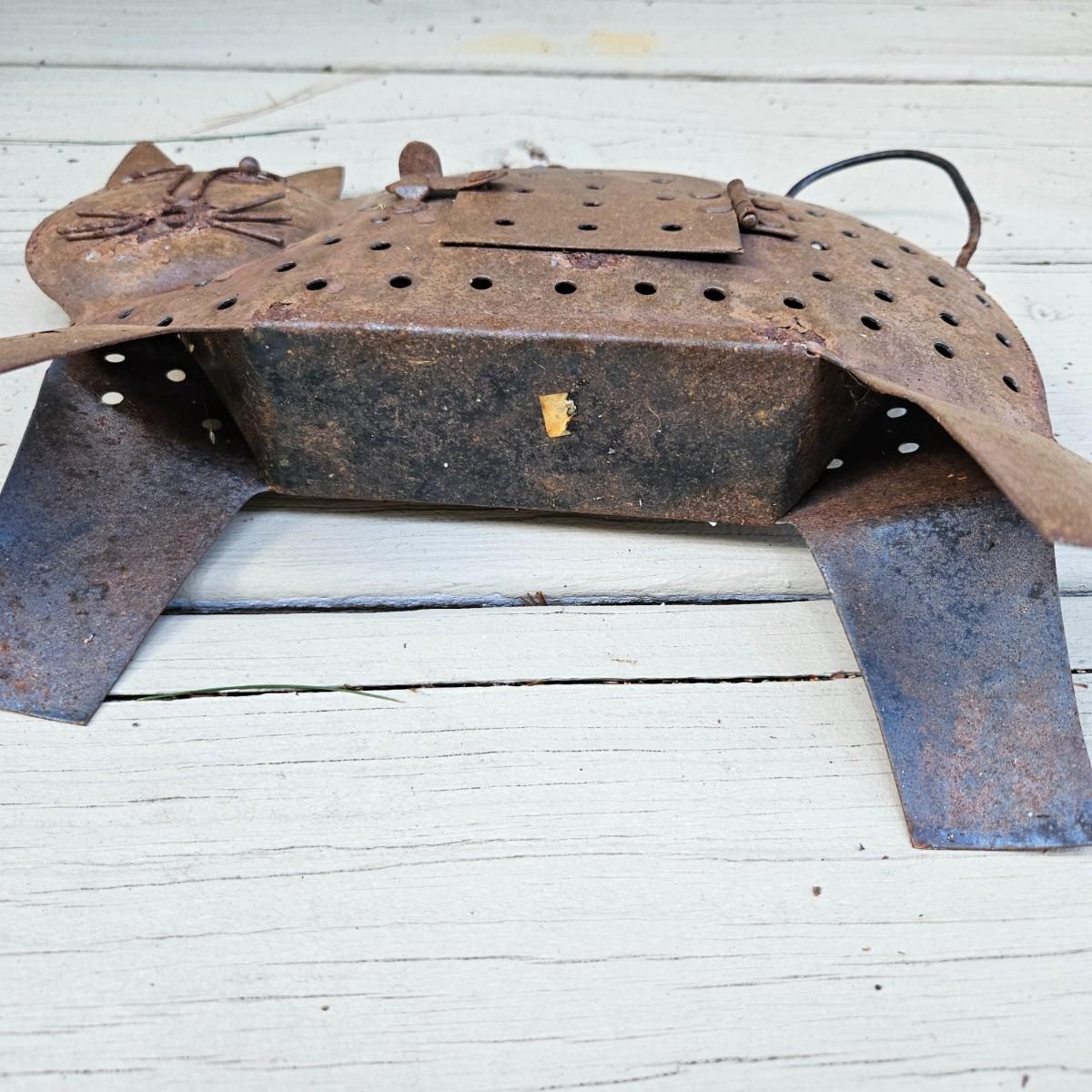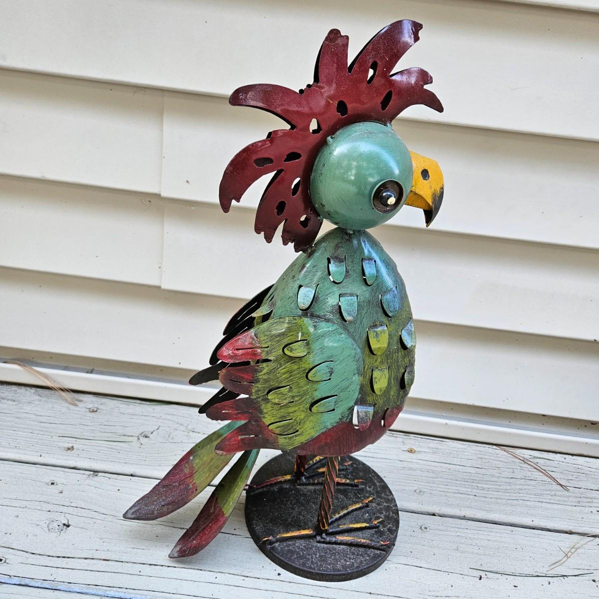 Two of metal art/decor pieces of a rooster and cat. The cat is a votive pin lamp with a chain to hang it with and a small door for the candle. The rooster measures approximately 6 5" x 11" x 19"H. Shipping available