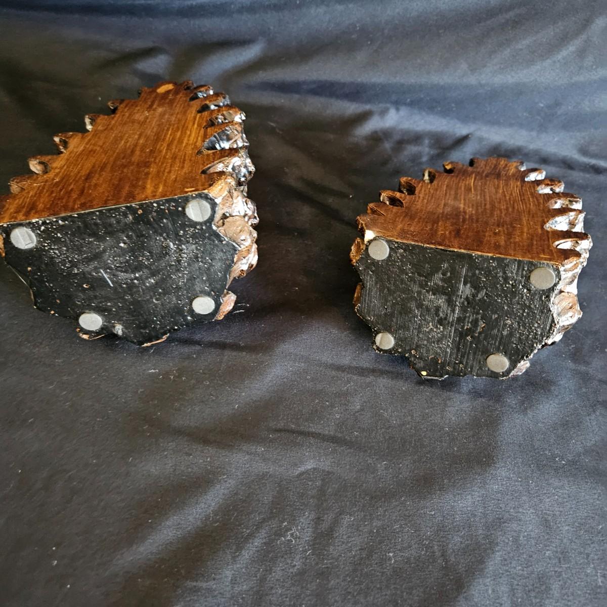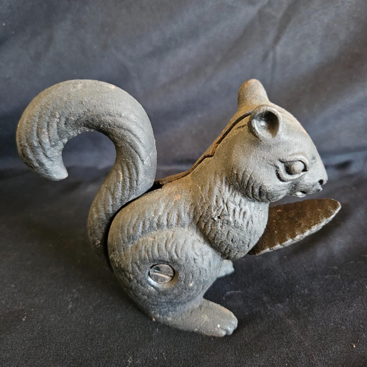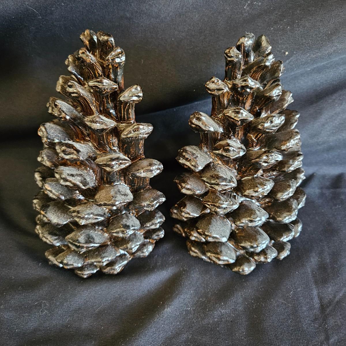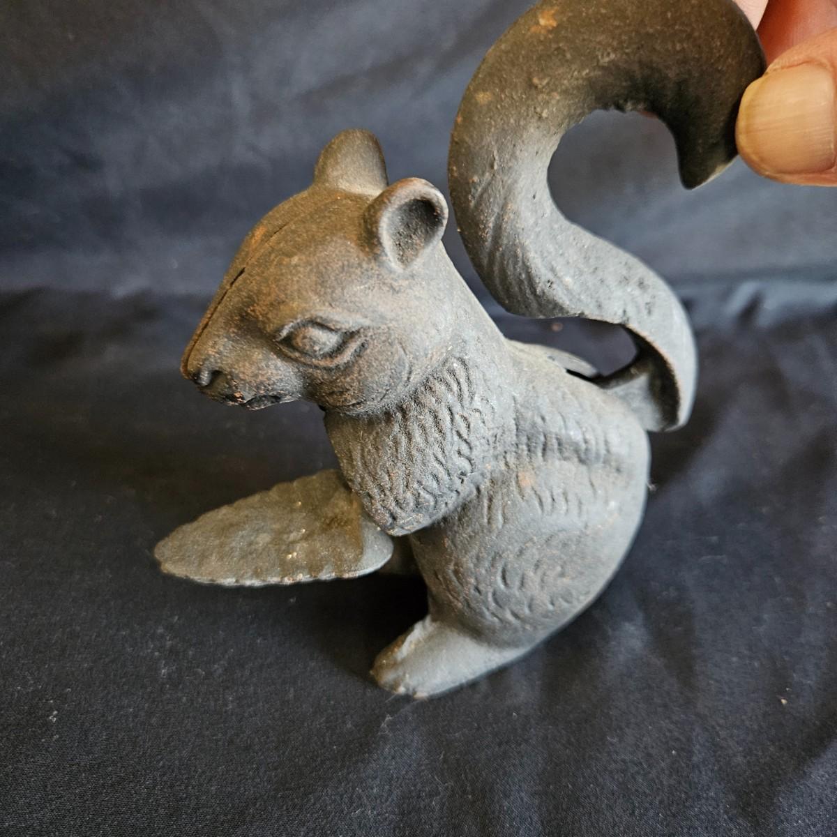 Three metal critters and a pair of what appears to be resin cast pinecone bookends. Each bookends measures approximately 4.5" x 3.5" x 7"H. Also includes a cast iron bottle openers shaped like a bird, a cast iron squirrel that is also a nut cracker and a frog that appears to be brass based on the patina. Shipping available