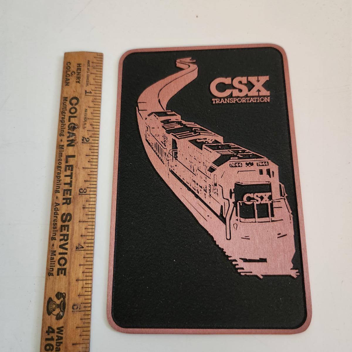 This auction lot is for a Metal CSX Transportation Plaque. This unusual railway momento appears to have been taken from an award or some other type display.
