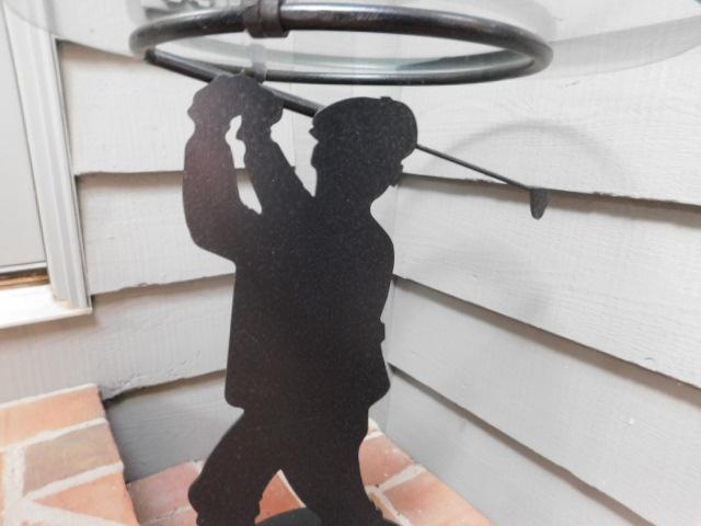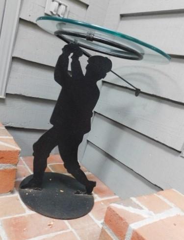 Metal Cutout Golfer Glass Top Side Table 18"x24"