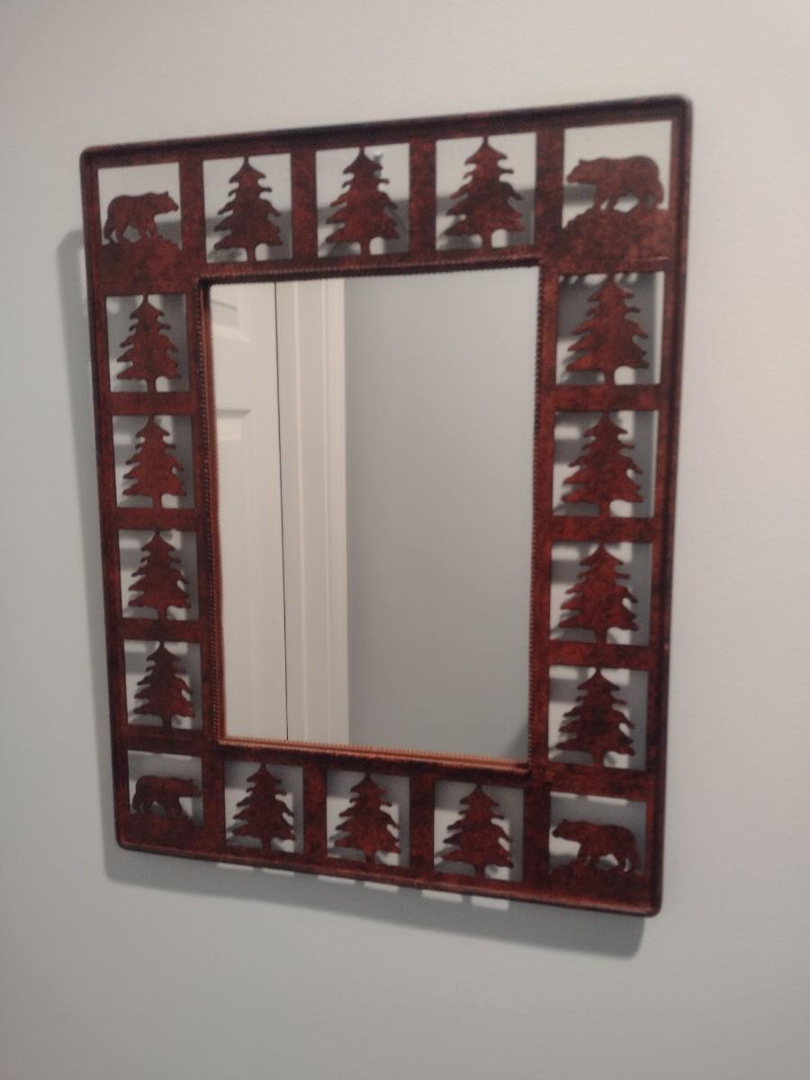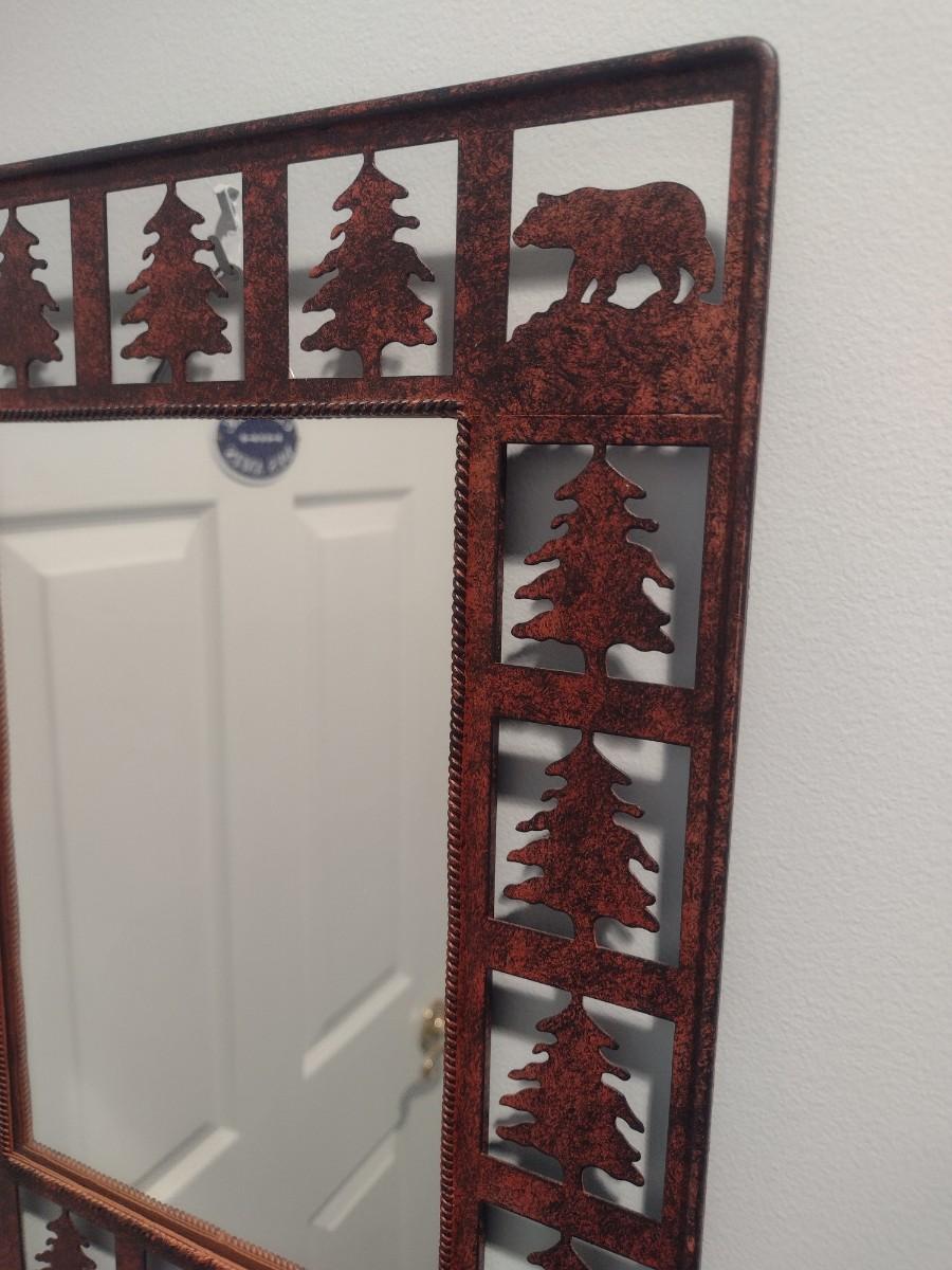 Metal Cut-Out Rustic Wall Mirror with Bear and Pine Tree Motif