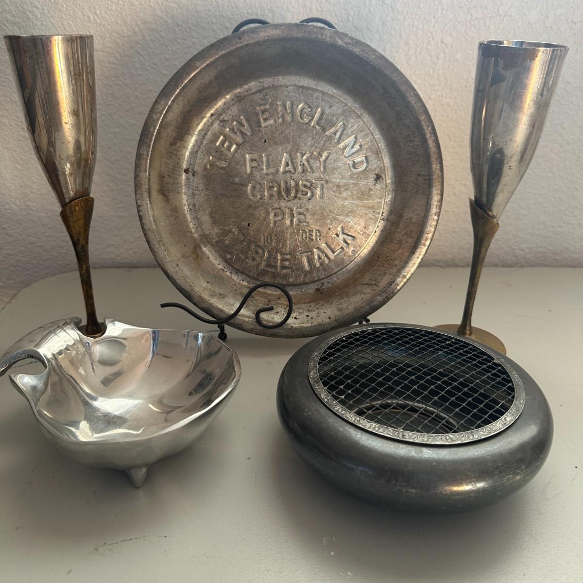 Unsold items from previous auctions lotted together. Metals are silver plate to tin. Misc. metals.