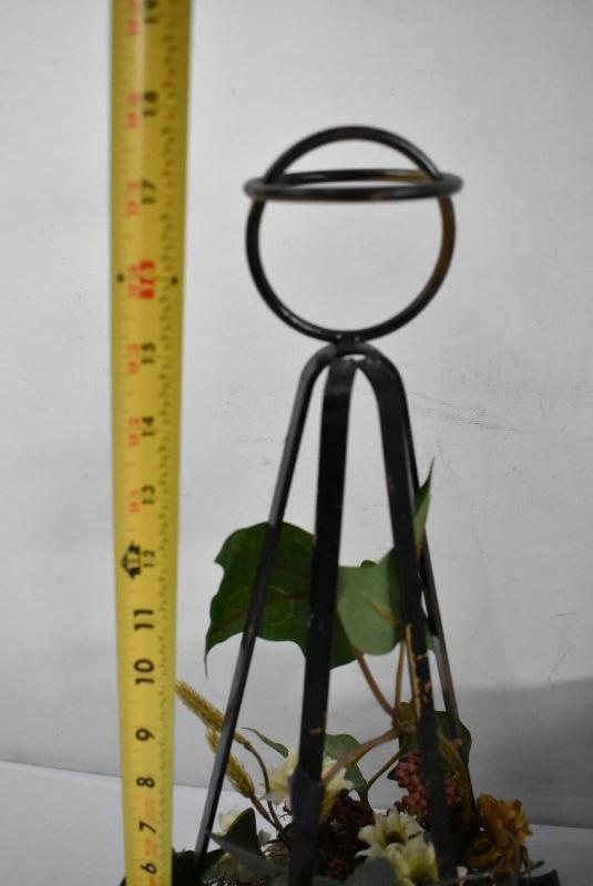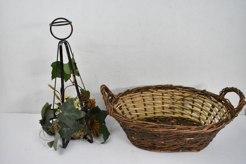 Metal Decor with Faux Flowers & Brown Oval Basket
