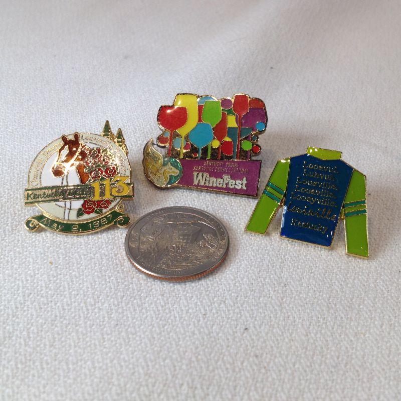 This lot of three pins includes a 1987 Festival Pin, a 2015 Derby Festival "WineFest" pin and a Louisville (Pronouncing) pin. All are in very good condition.