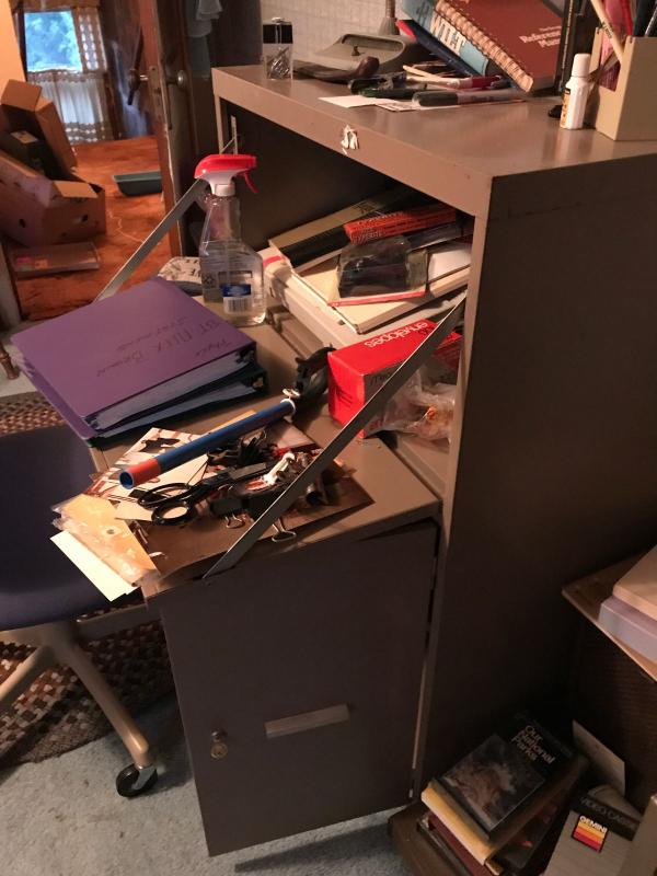 very purposeful metal desk in great condition. and Bring boxes to load all of the contents inside.
