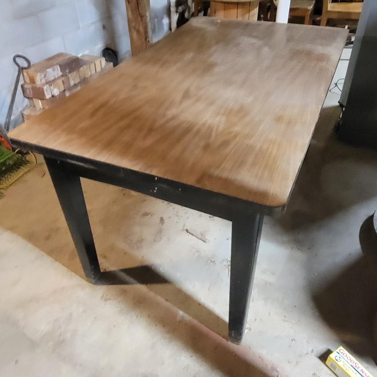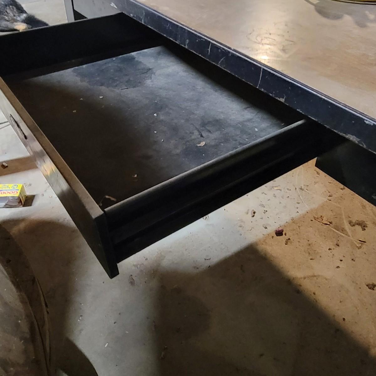 A metal work desk with one drawer that measures approximately 60" x 34" x 30.5"H. Local pickup only. Winning bidder must bring assistance to help move and load this item due to its weight and/or size.