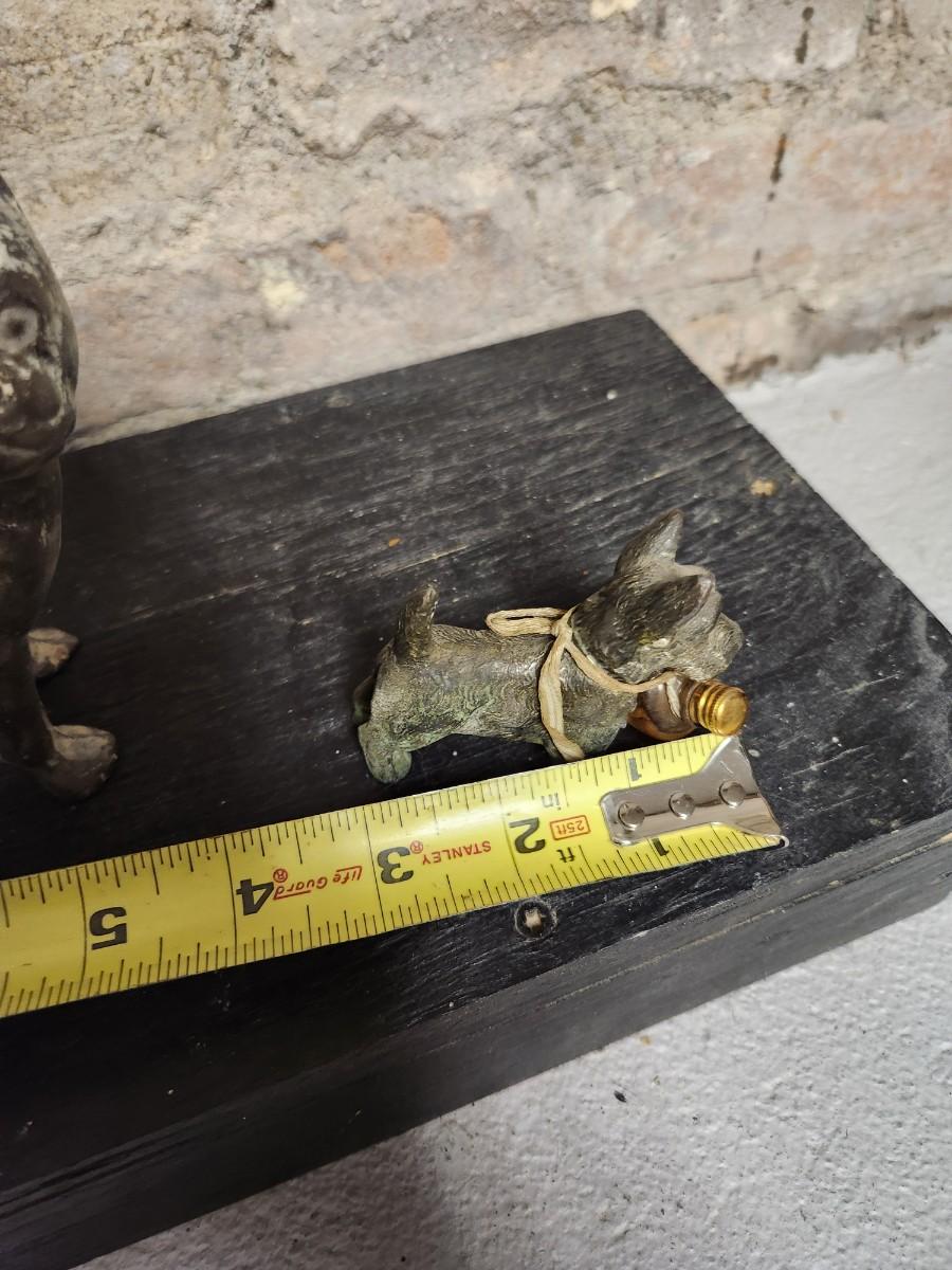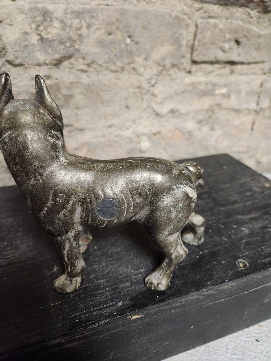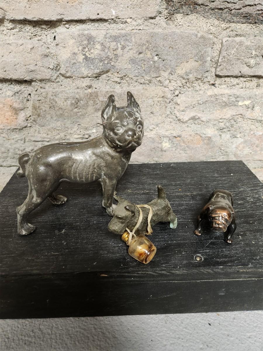Three vintage metal dogs.