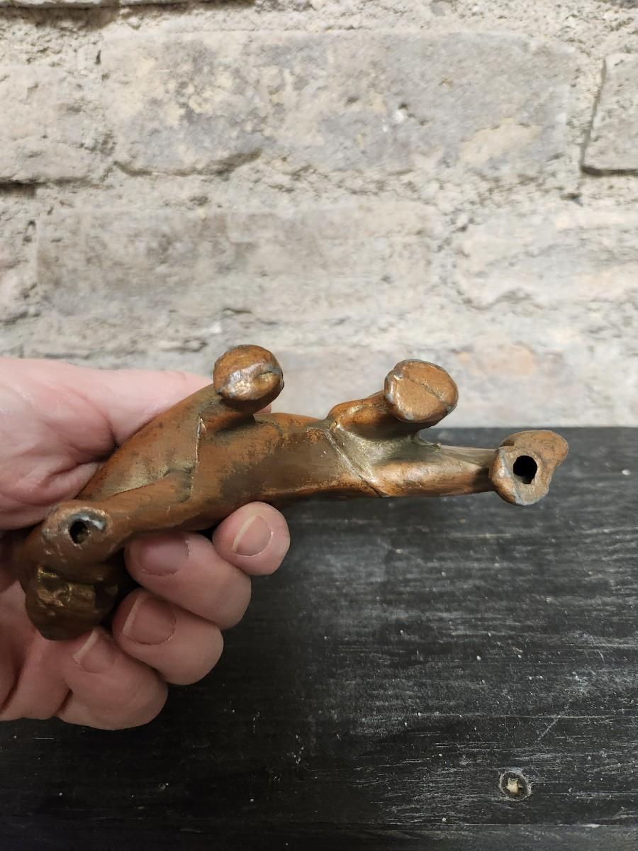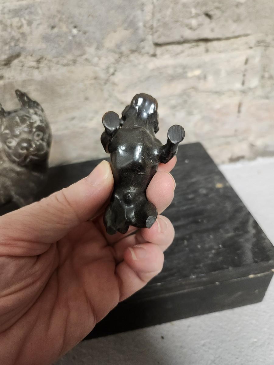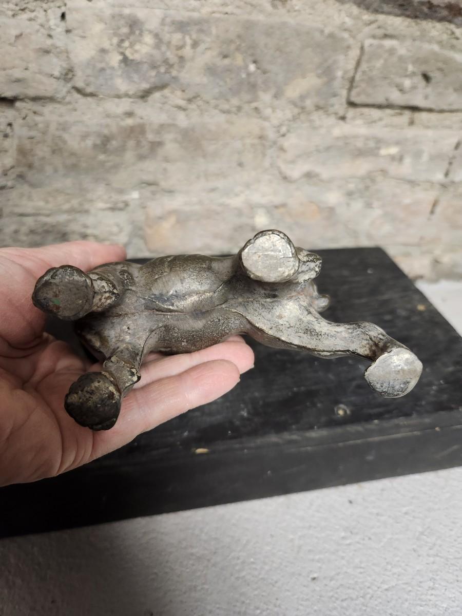 Three vintage metal dogs.