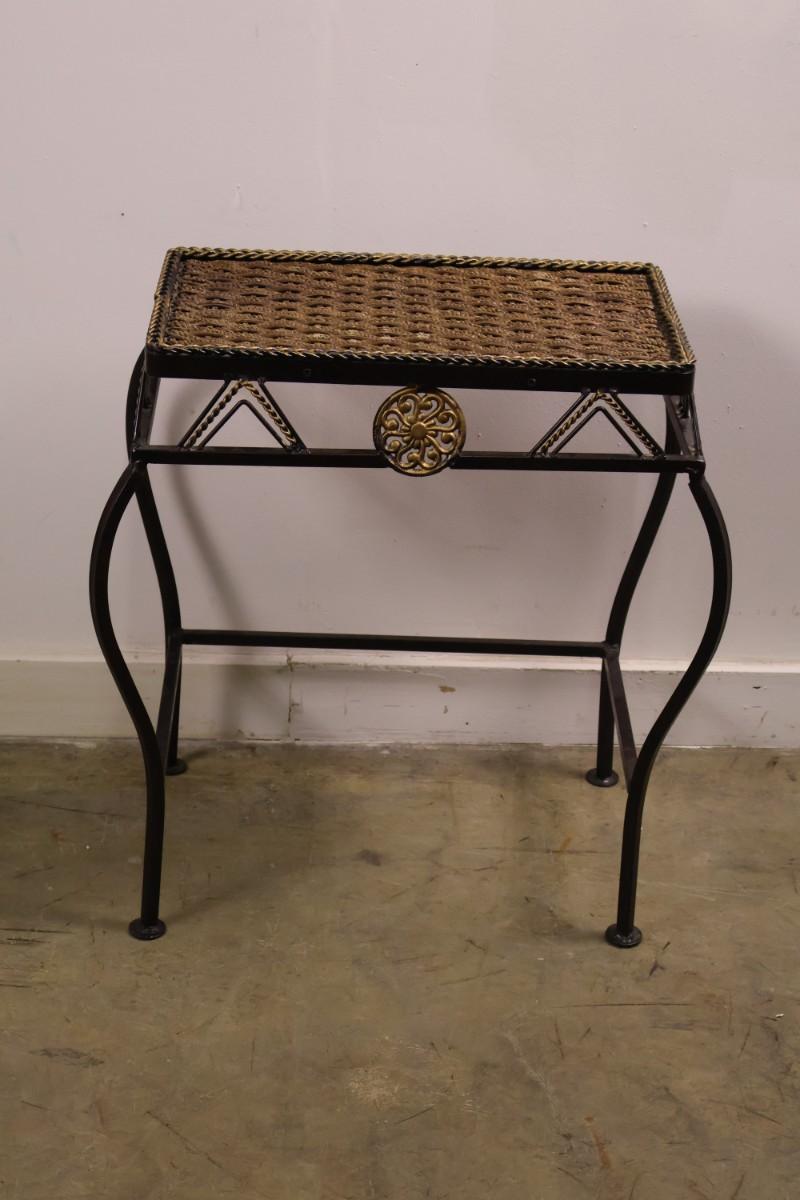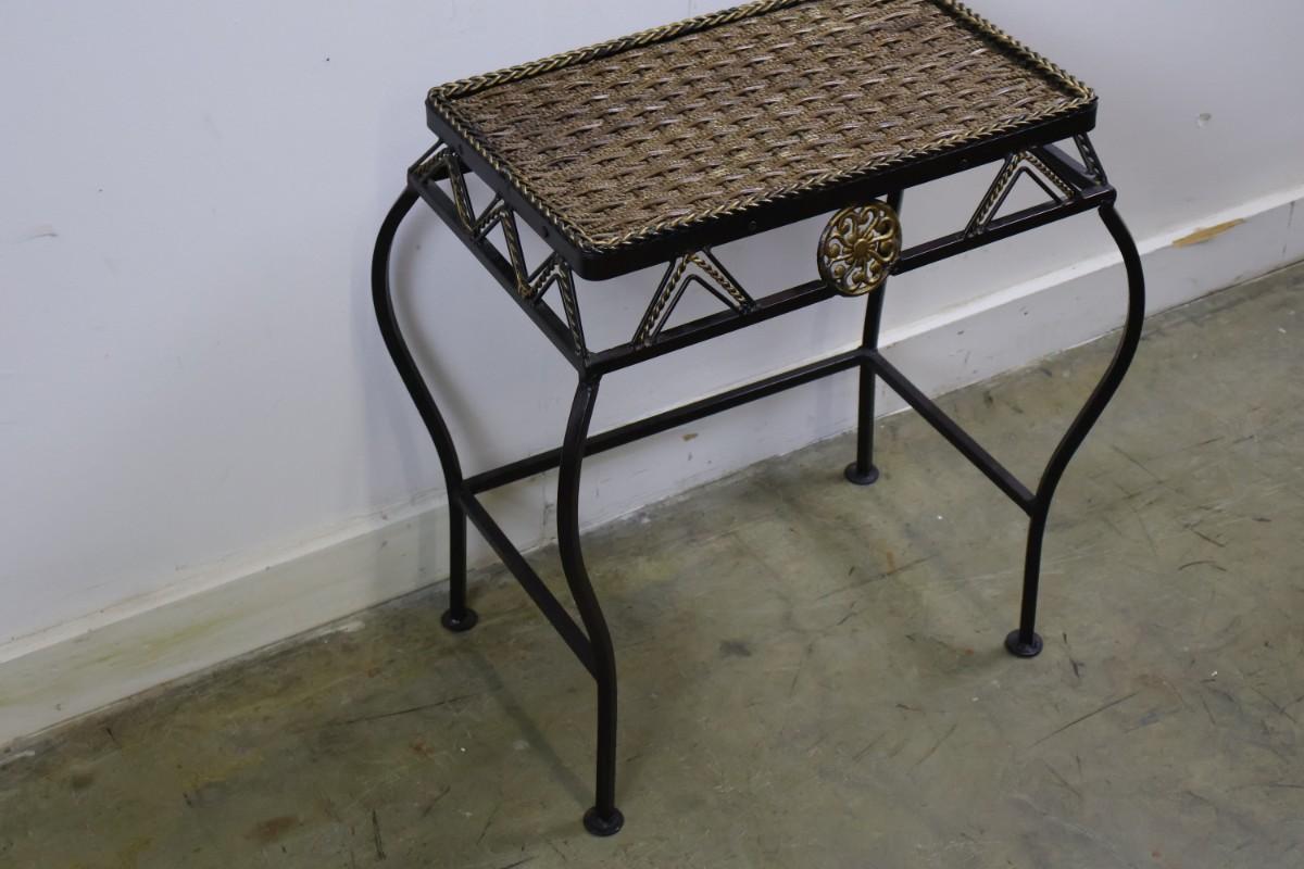 Metal End Table with Woven Top. 11" x 17 1/2" x 22" high.