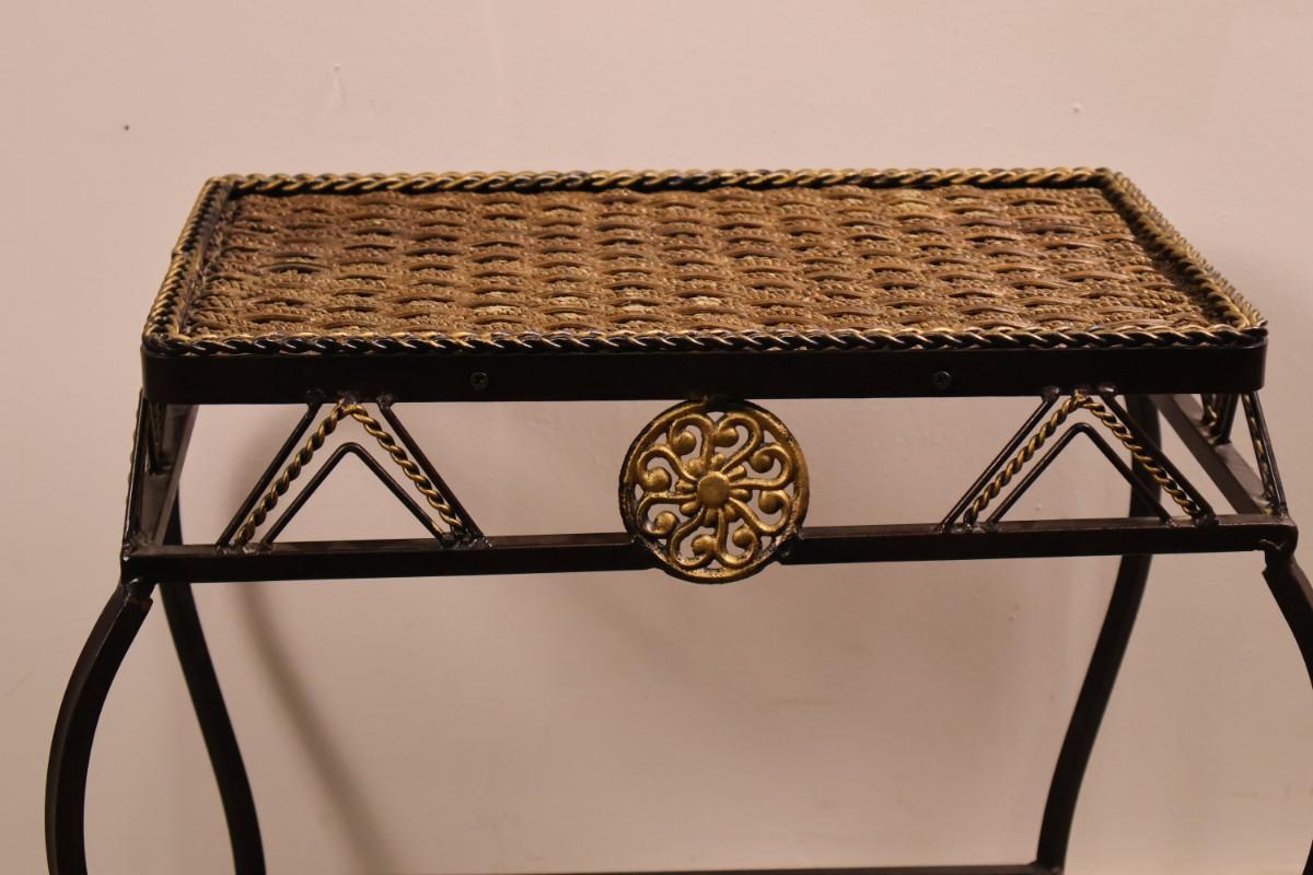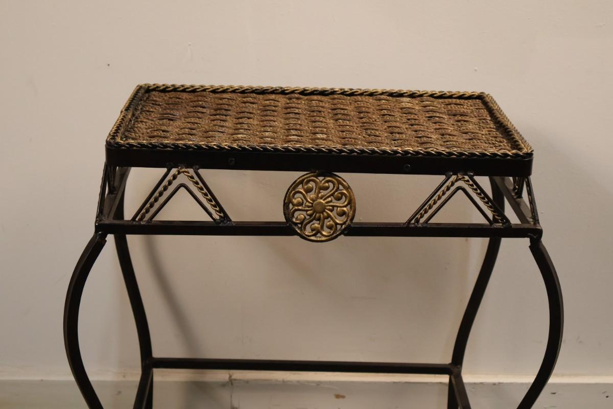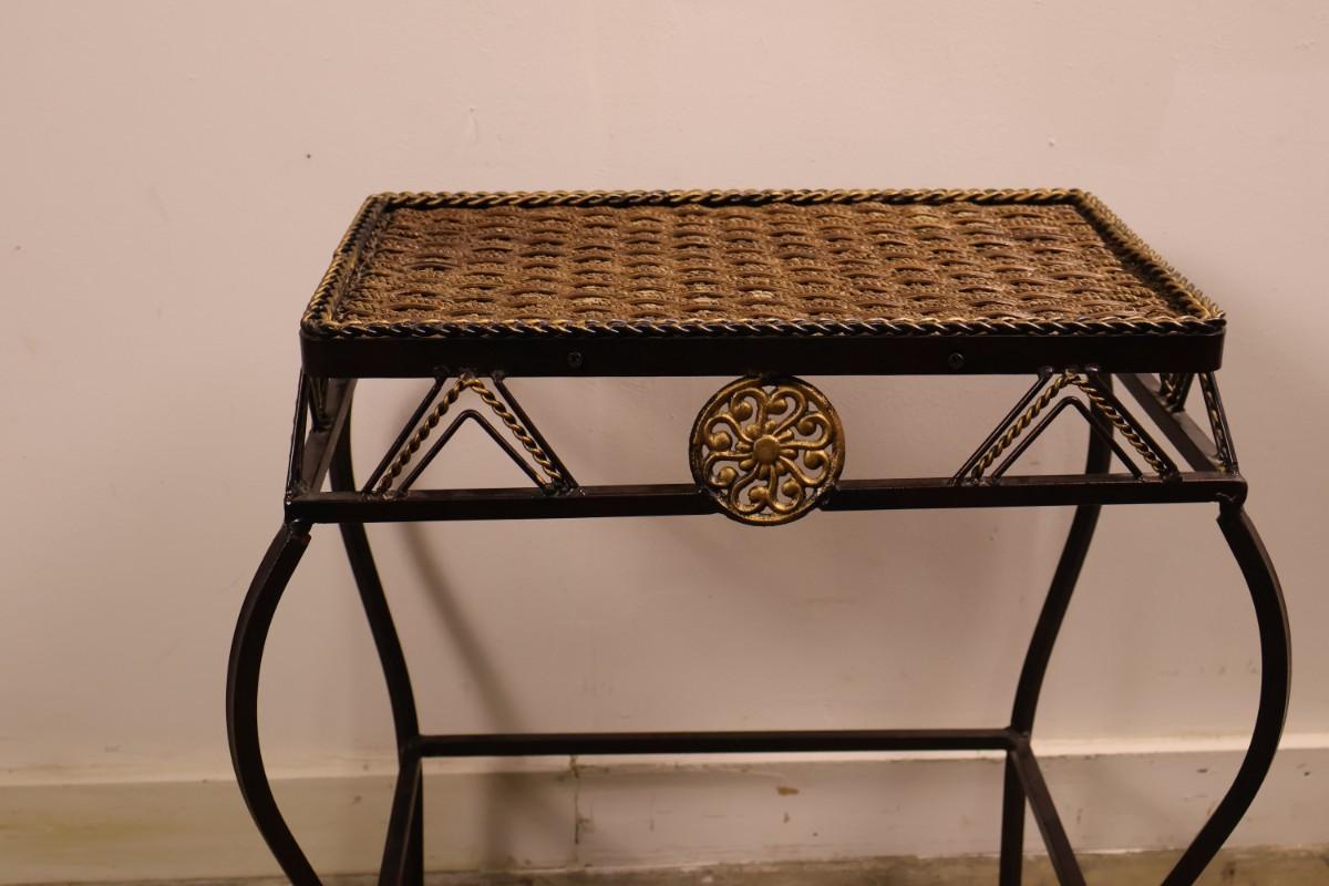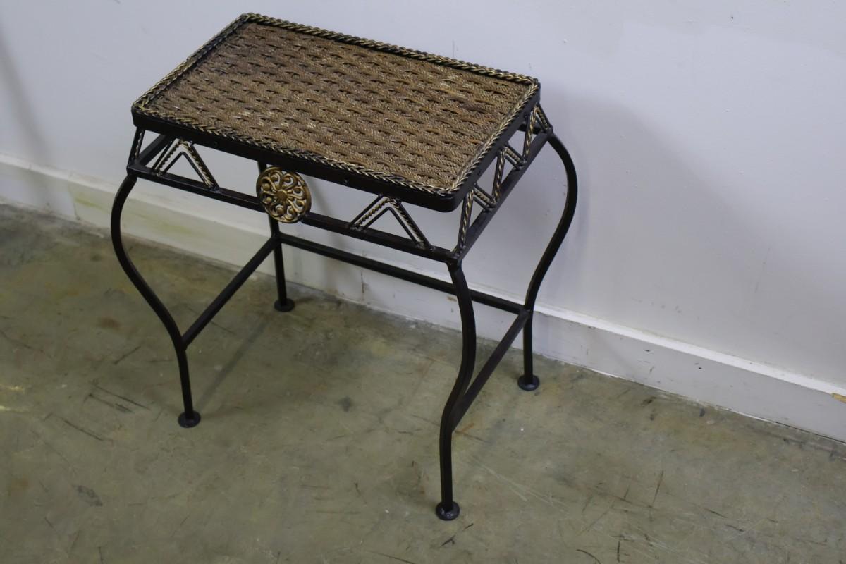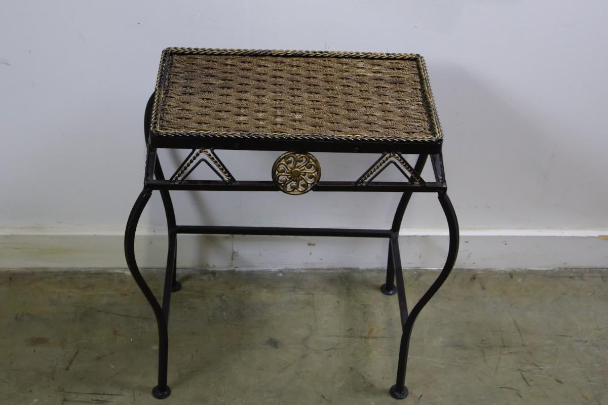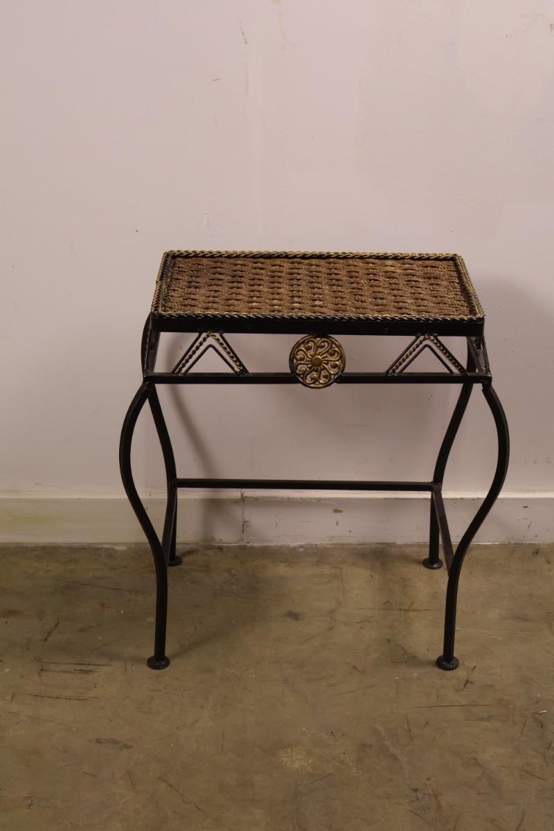 Metal End Table with Woven Top