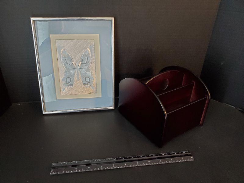 Metal Etched Picture w/Frame and Remote Control Caddy