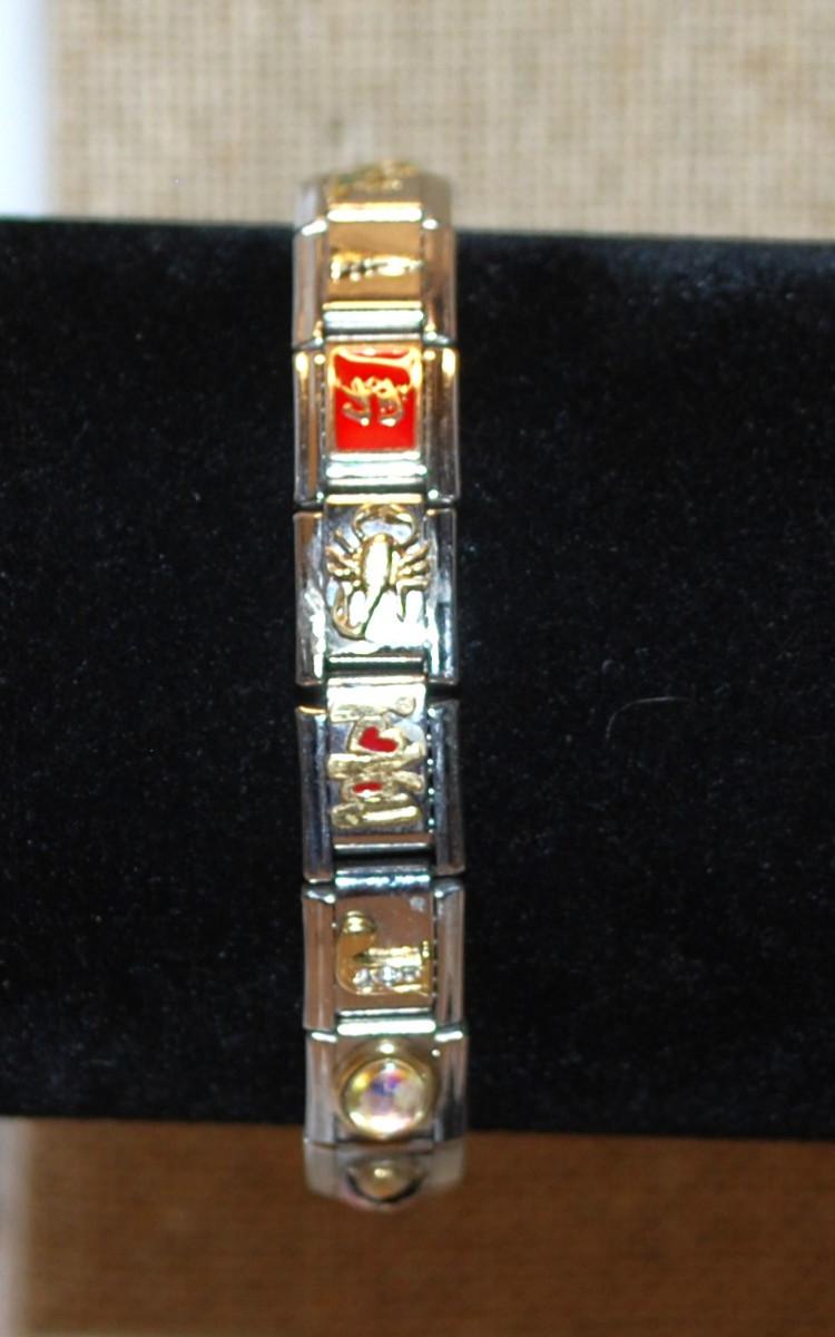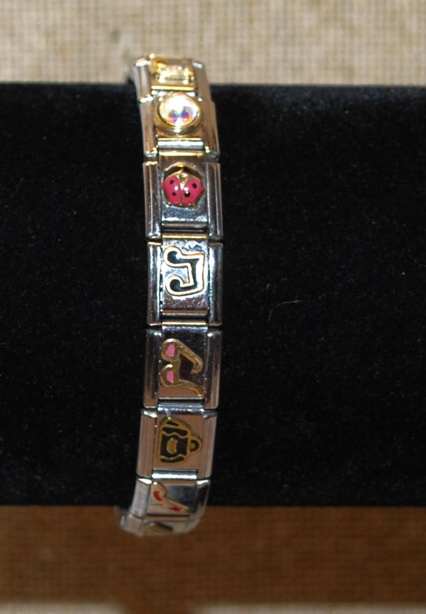 Metal Slightly Expandable Bracelet with Lady Bug, Hearts, Books, Camera, Eiffel Tower, Etc. 3" Diameter