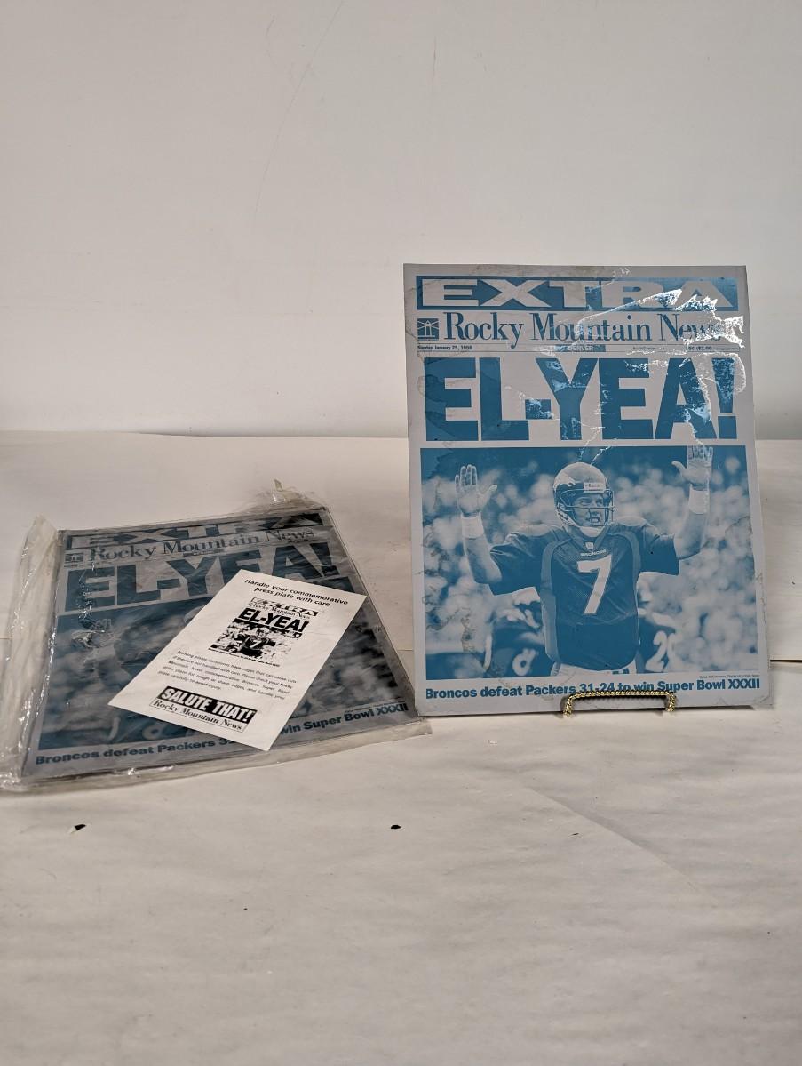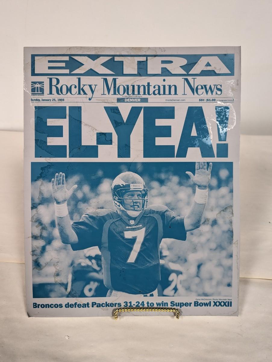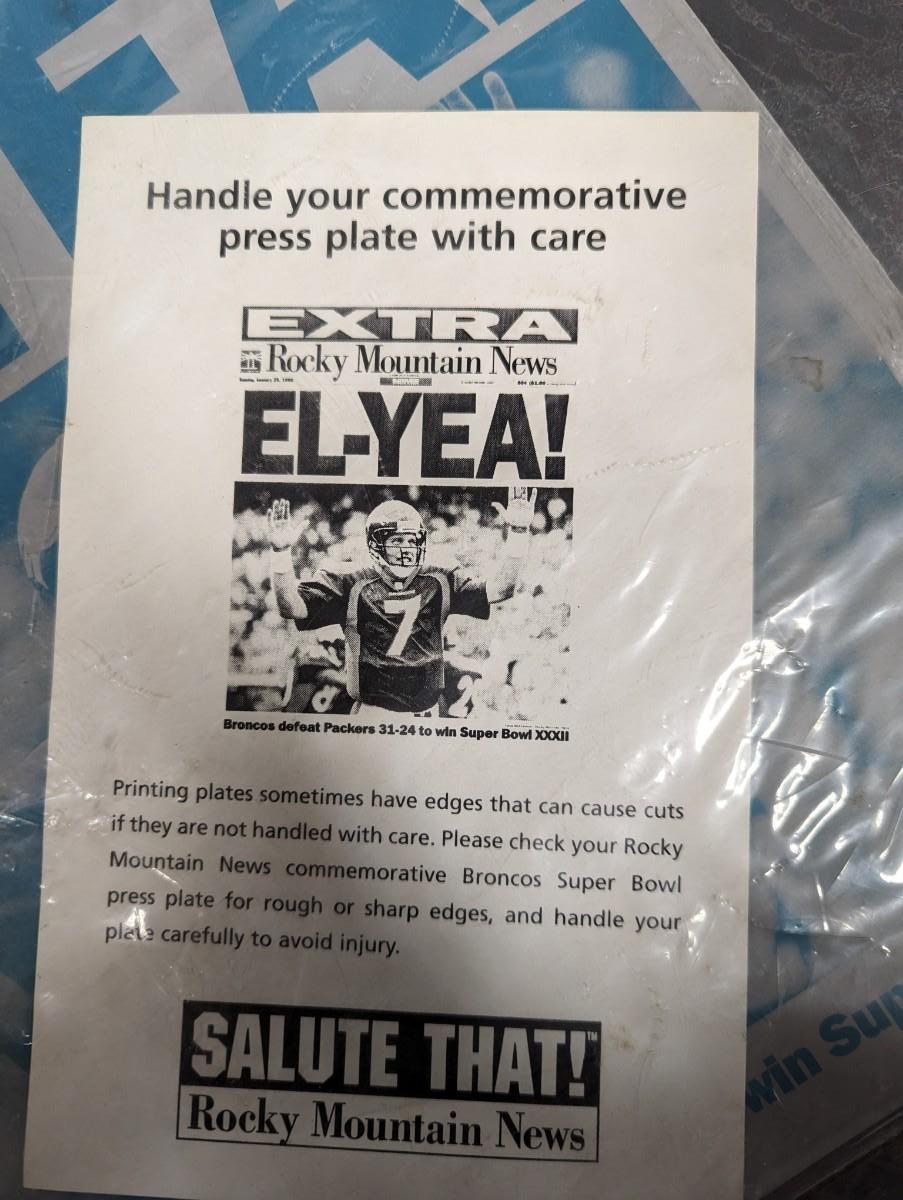 Metal Extra Rocky Mountain News EL-Yea Commemorative Press Plate. Elway Super Bowl XXXII winning game.