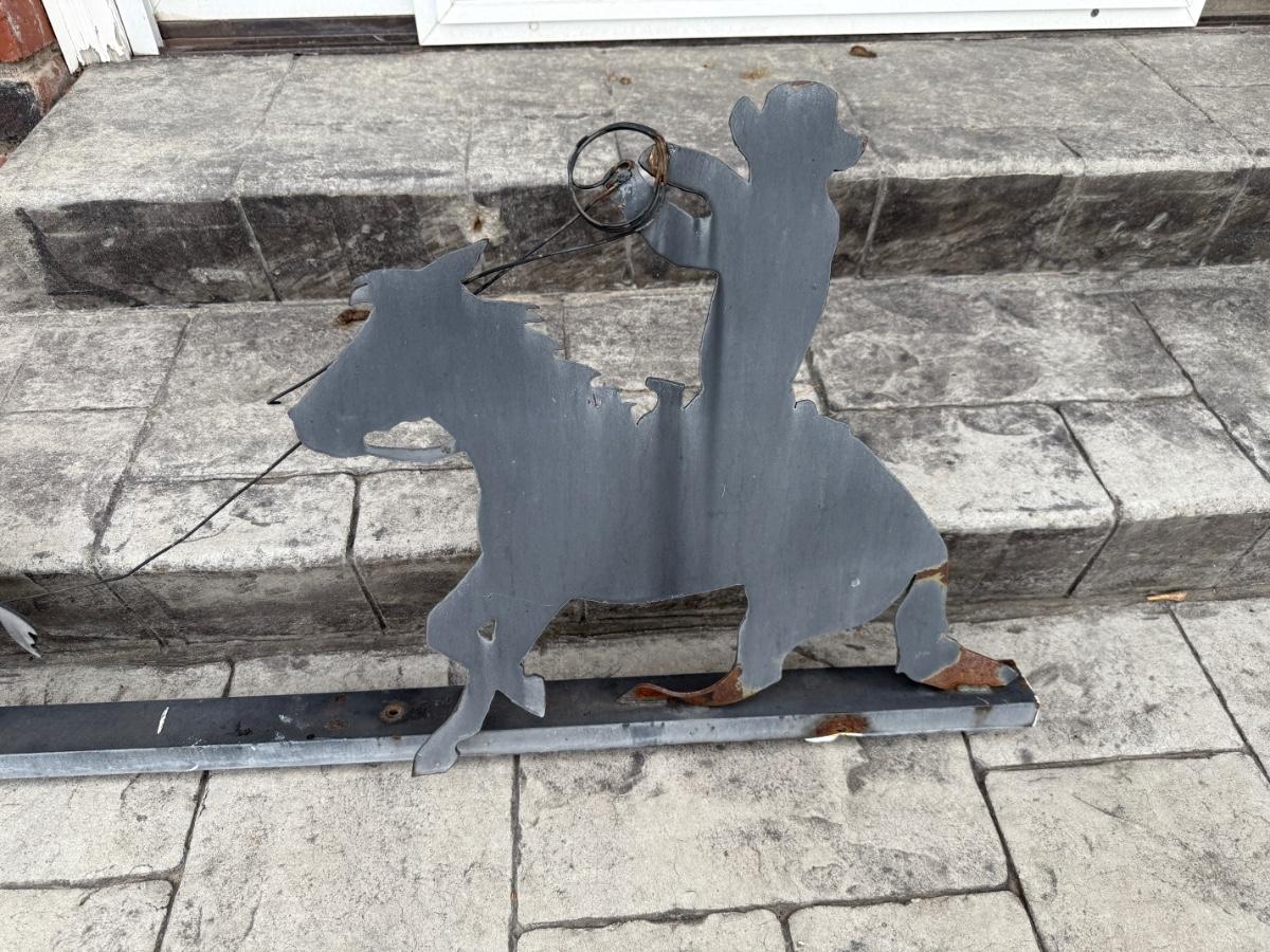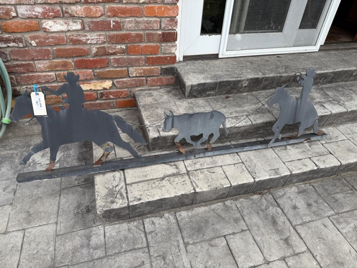 Metal fence topping 6’L Cowboy roping Cow outdoor decor