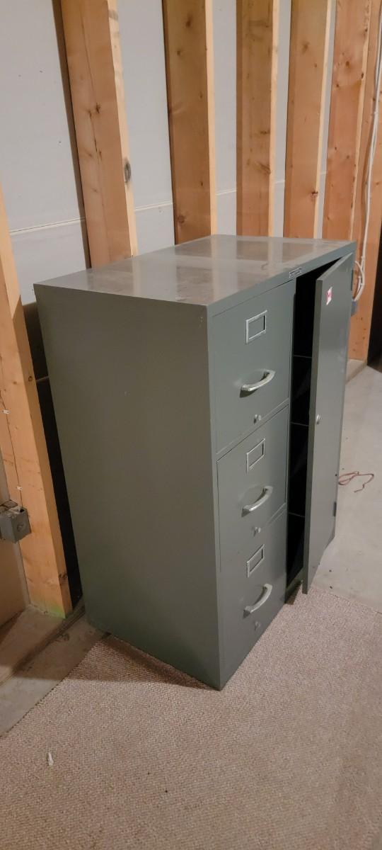Metal file storage, three drawer plus door Welham brand 29.5W 39 H 18 D