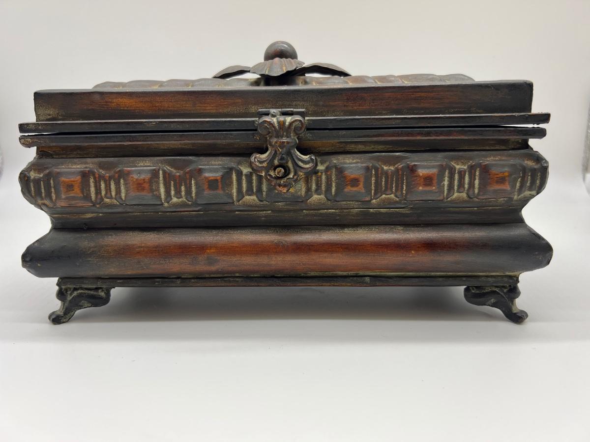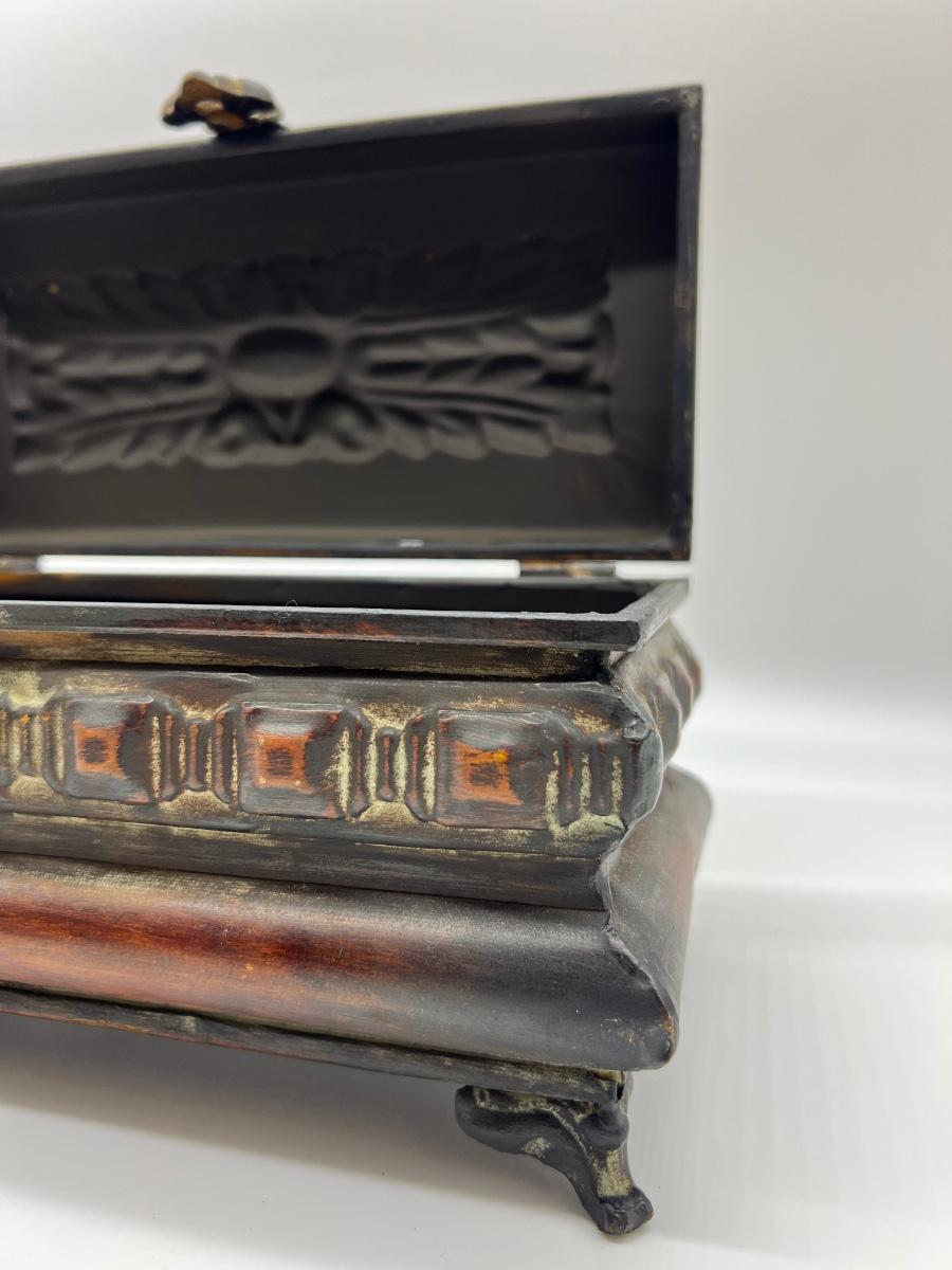 Metal Floral Decorative Box 7 inches tall, 12 inches long and 6 inches deep.