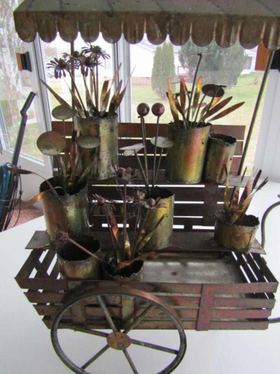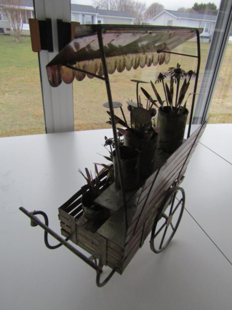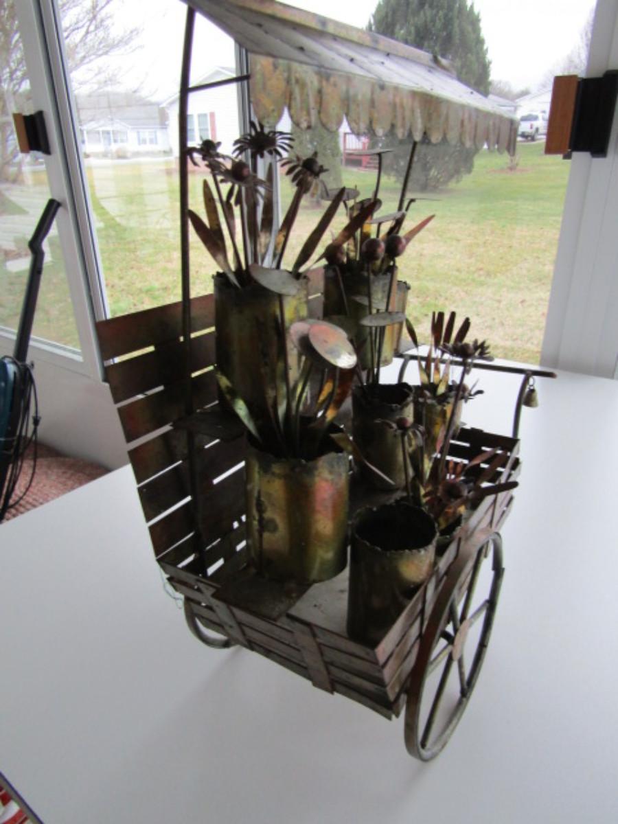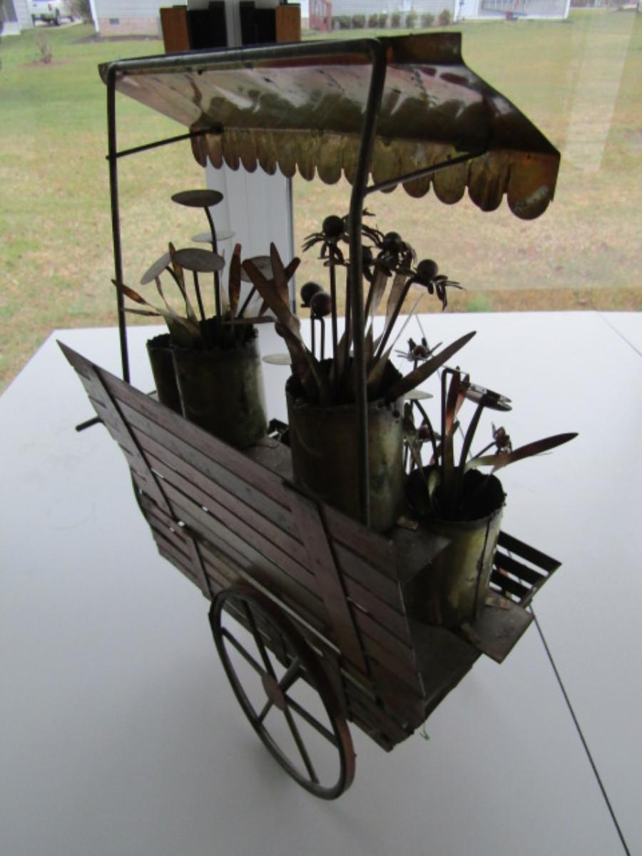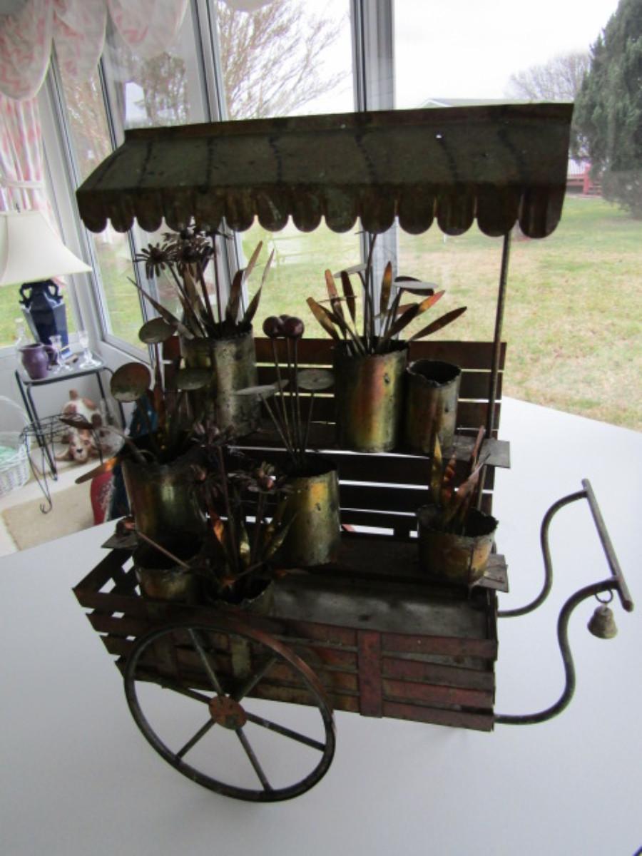 Metal Flower Cart Themed Figurine