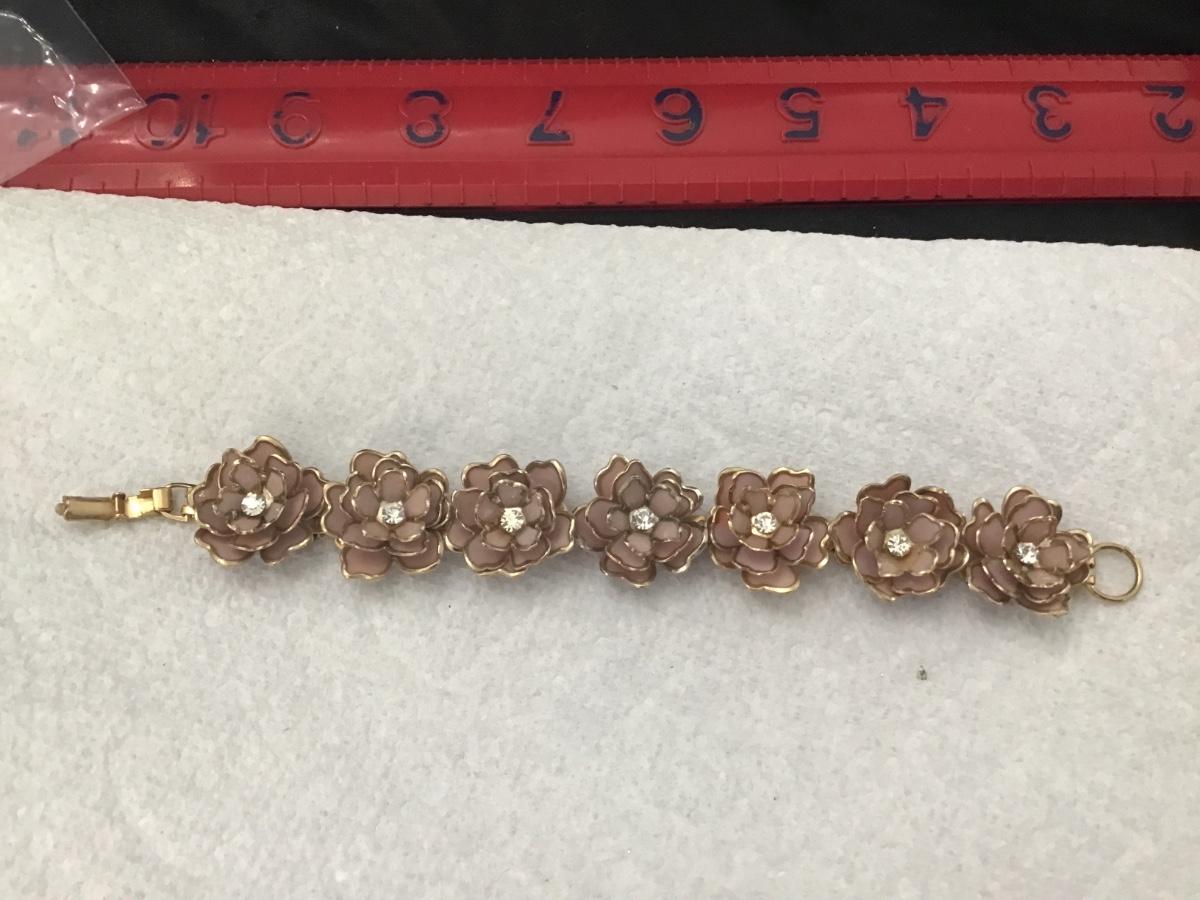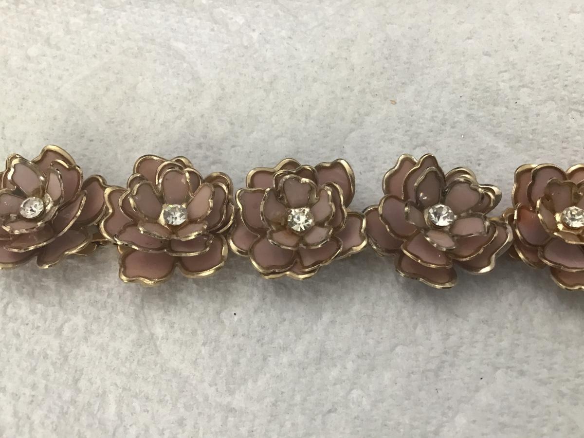 Metal Flower Rhinestone Center’s Linked Bracelet
