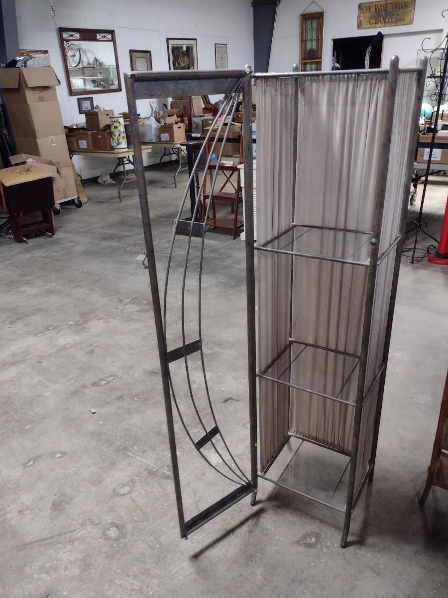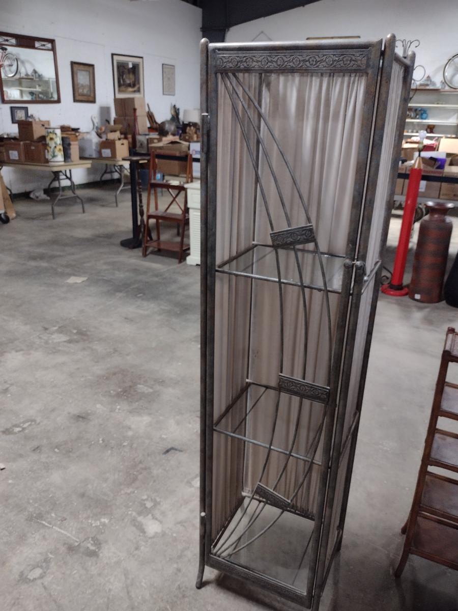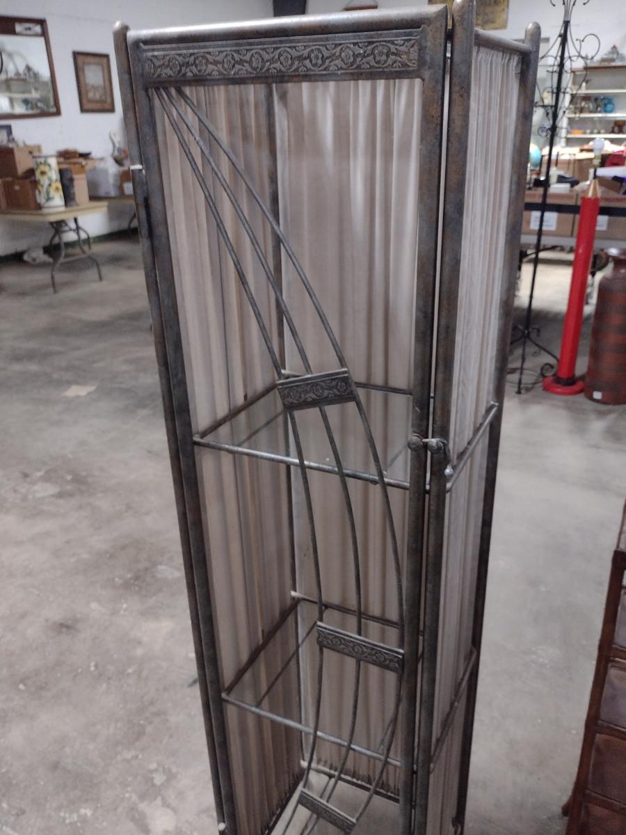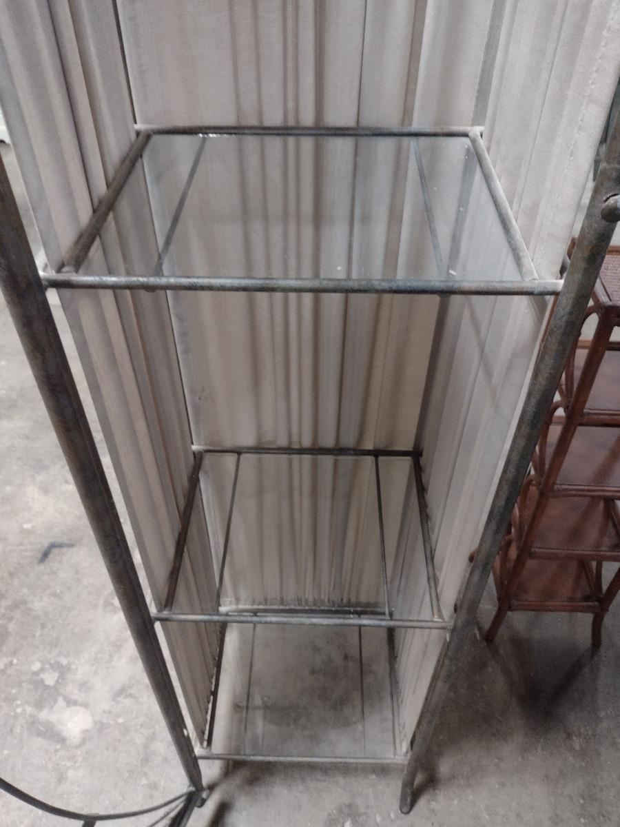 Metal Frame and Glass Shelving Unit. Approx 15" wide, 12" deep, 60" tall.