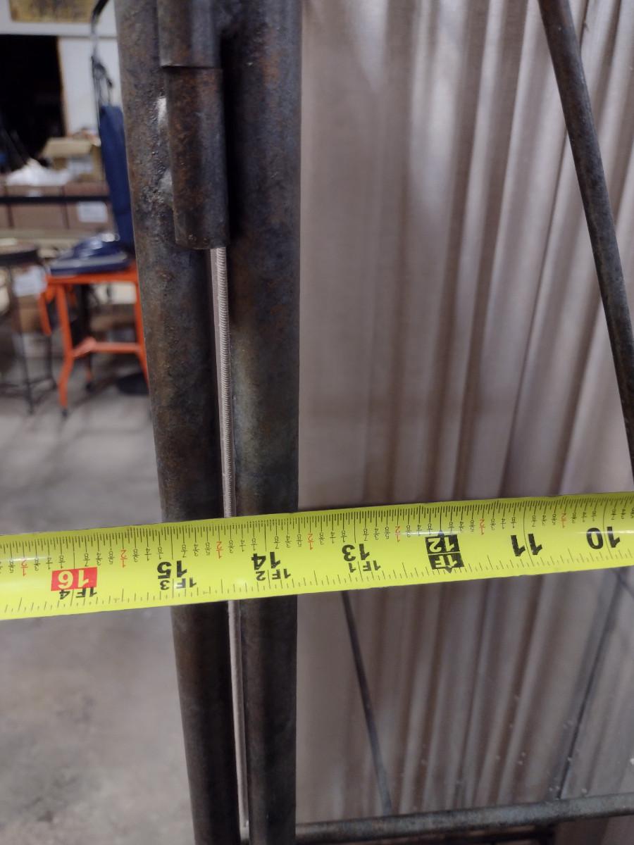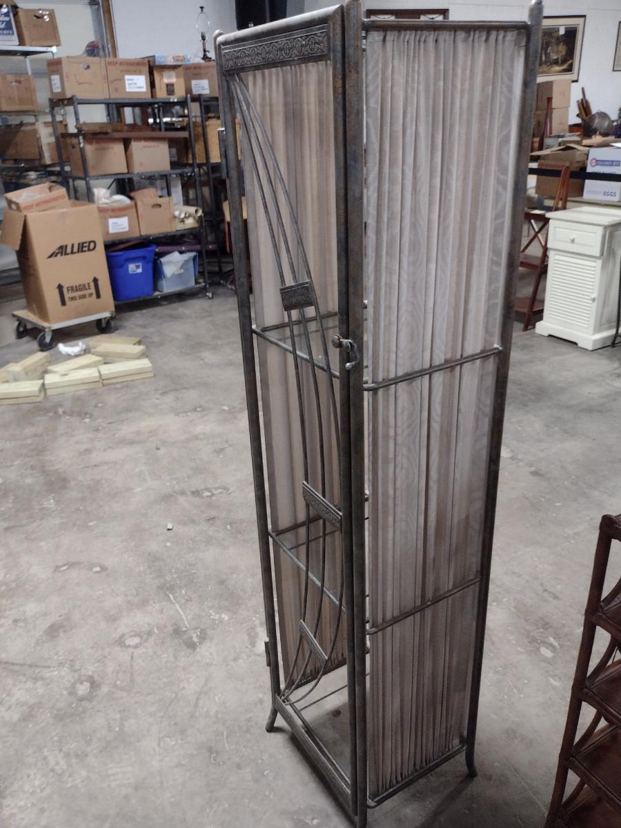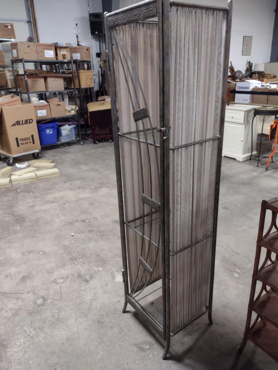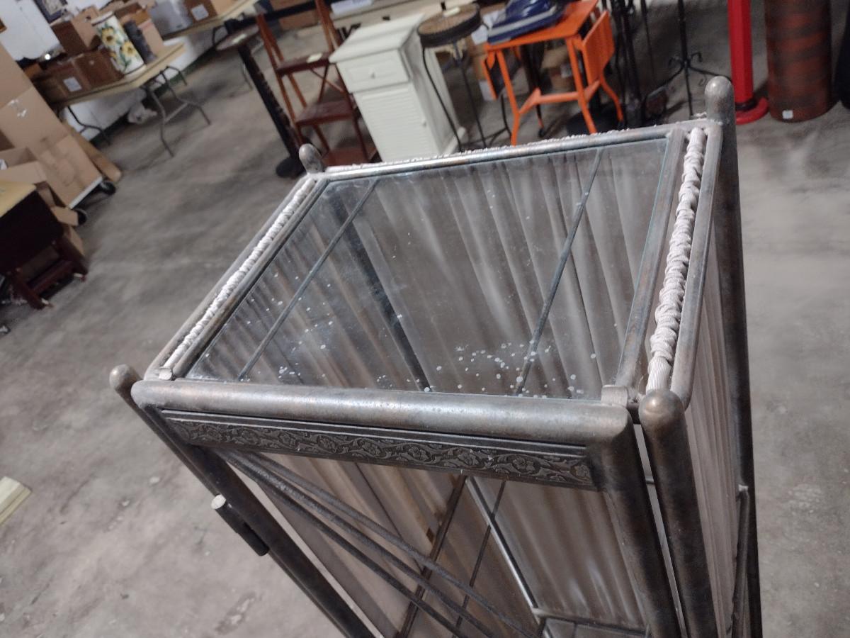Metal Frame and Glass Shelving Unit. Approx 15" wide, 12" deep, 60" tall.
