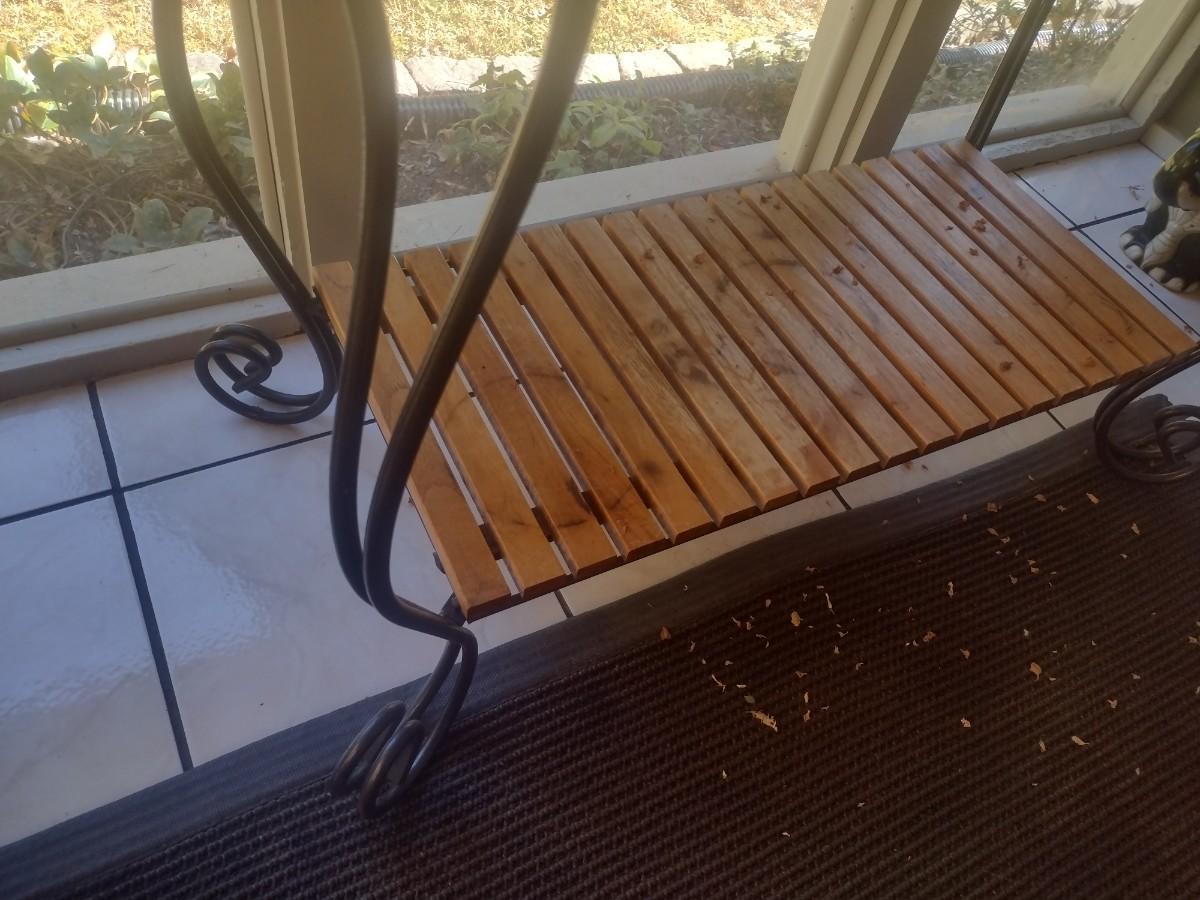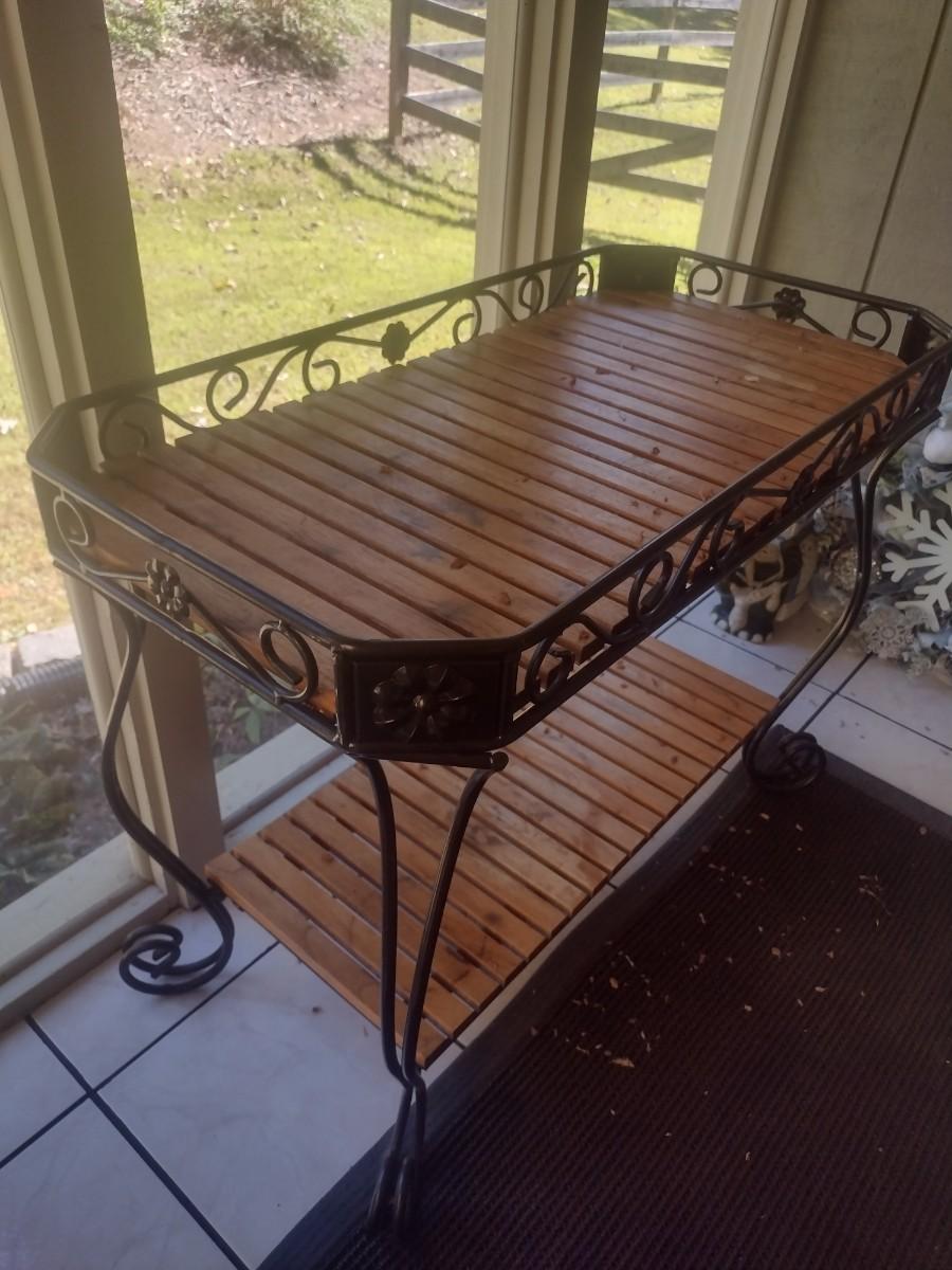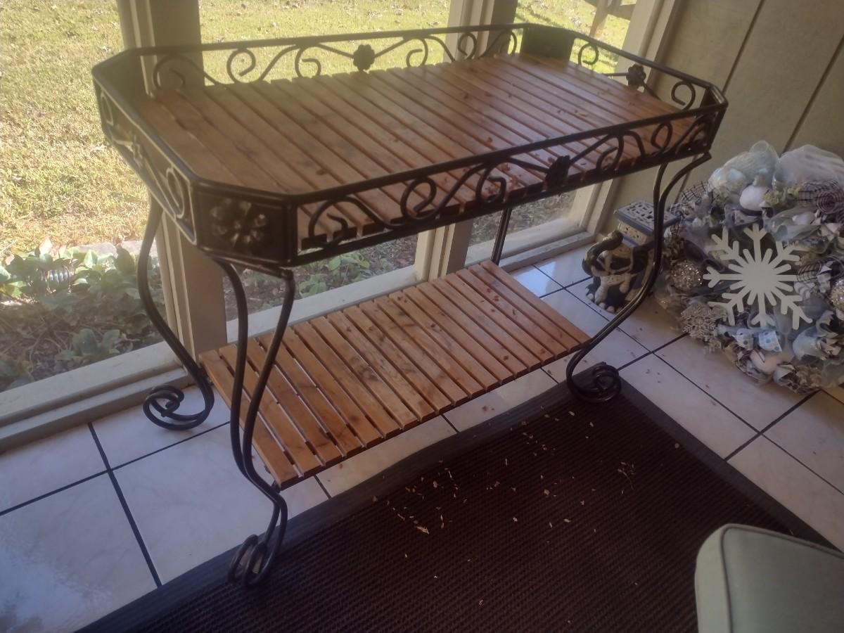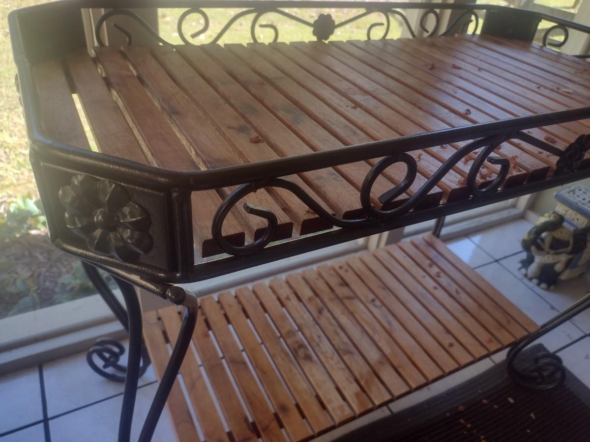 Metal Frame Garden Plant Stand with Teak Wood Shelving