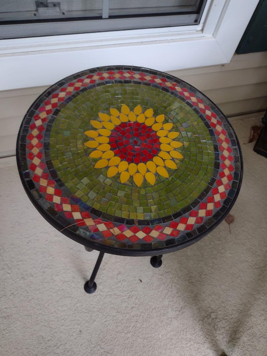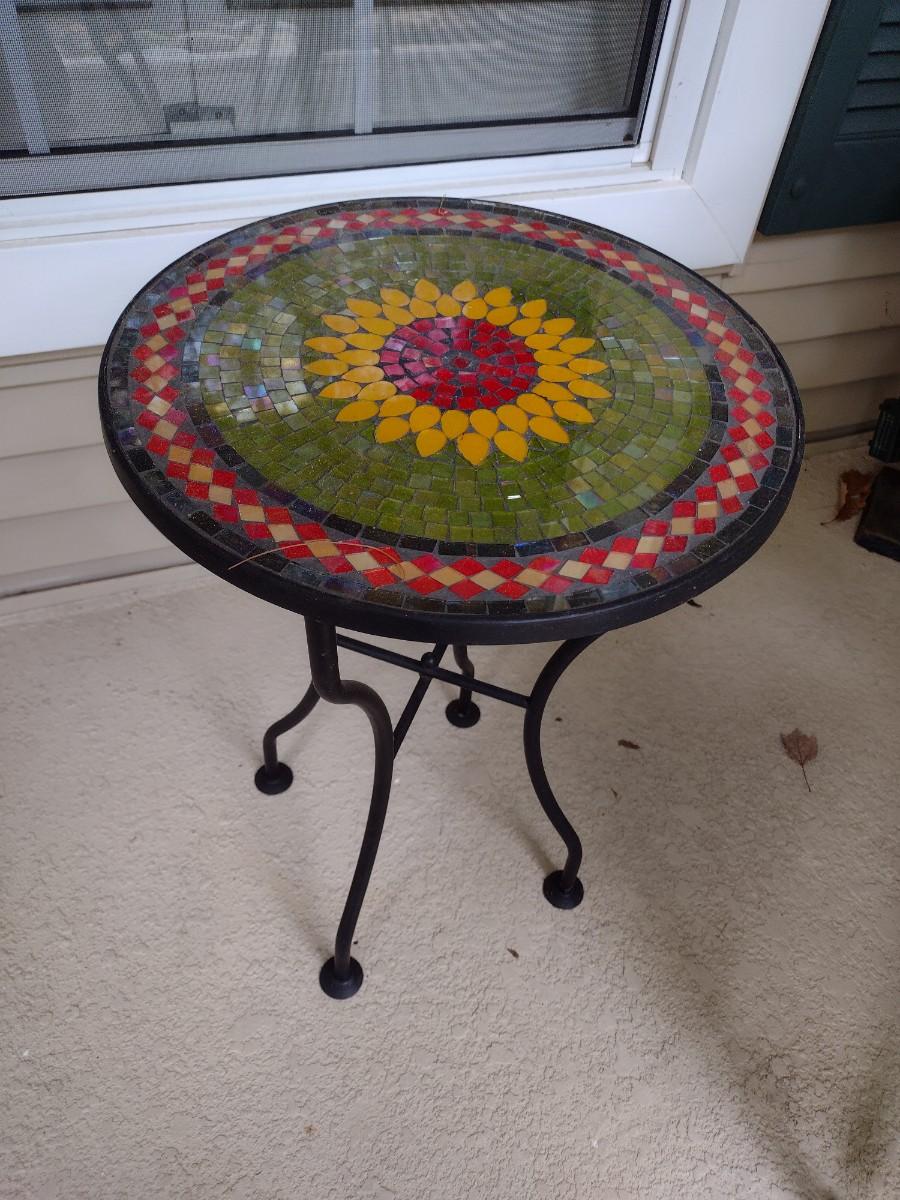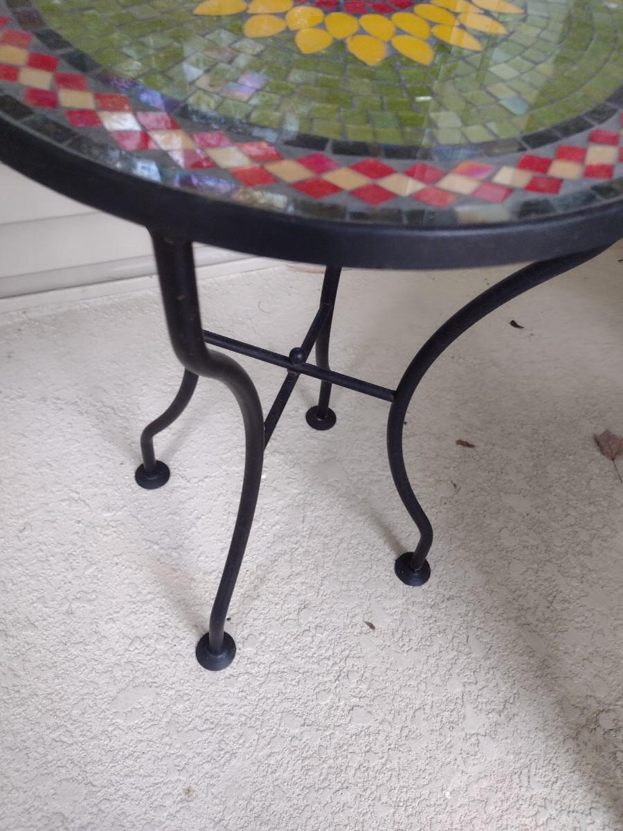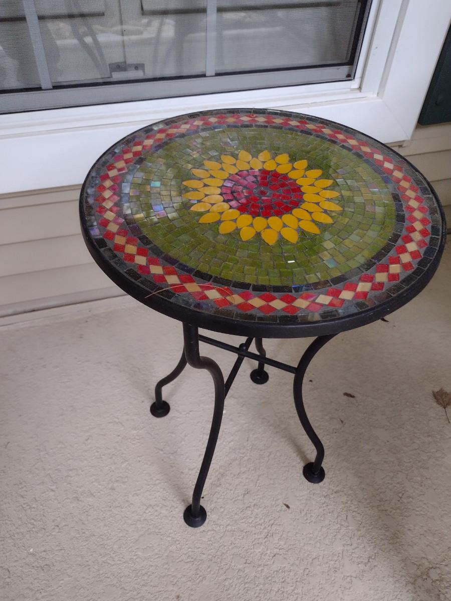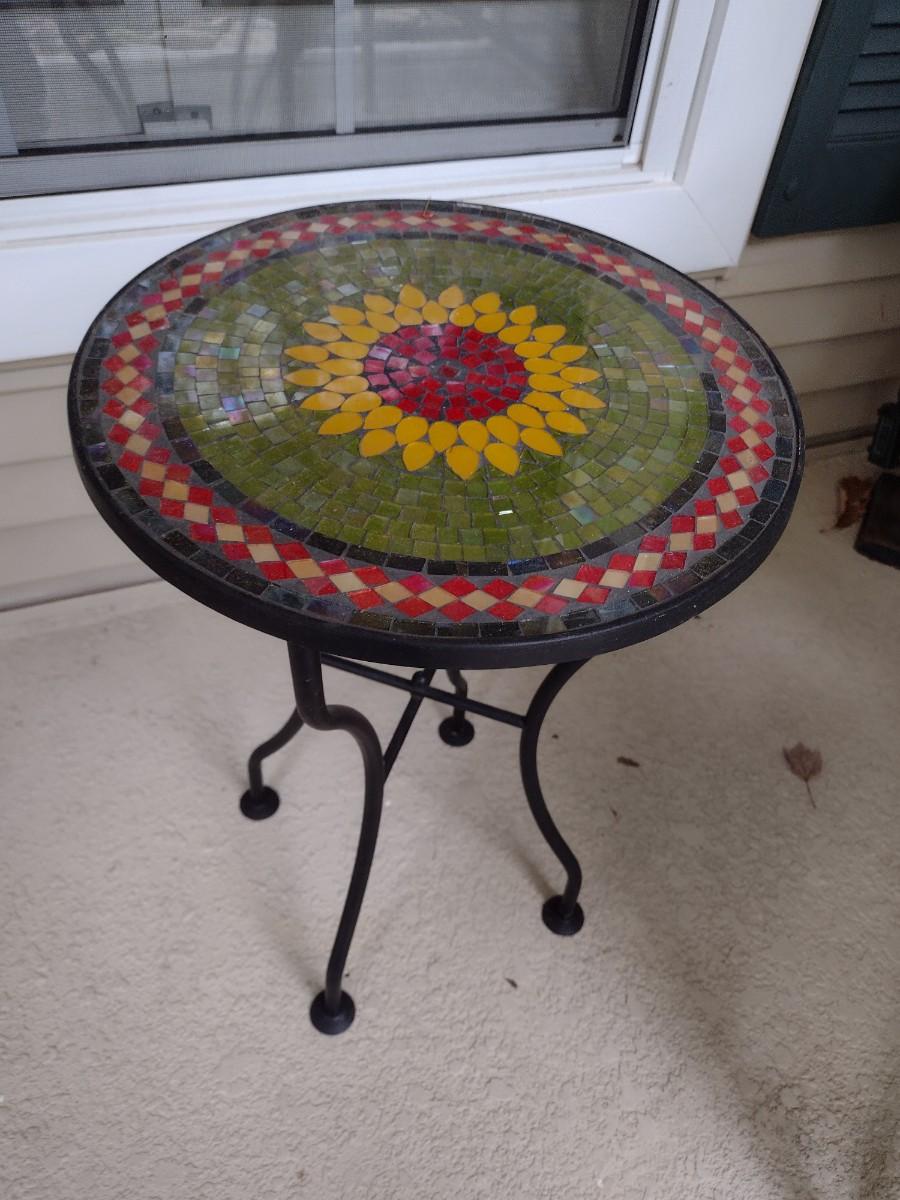 Metal Frame Mosaic Tile Top Garden Side Table