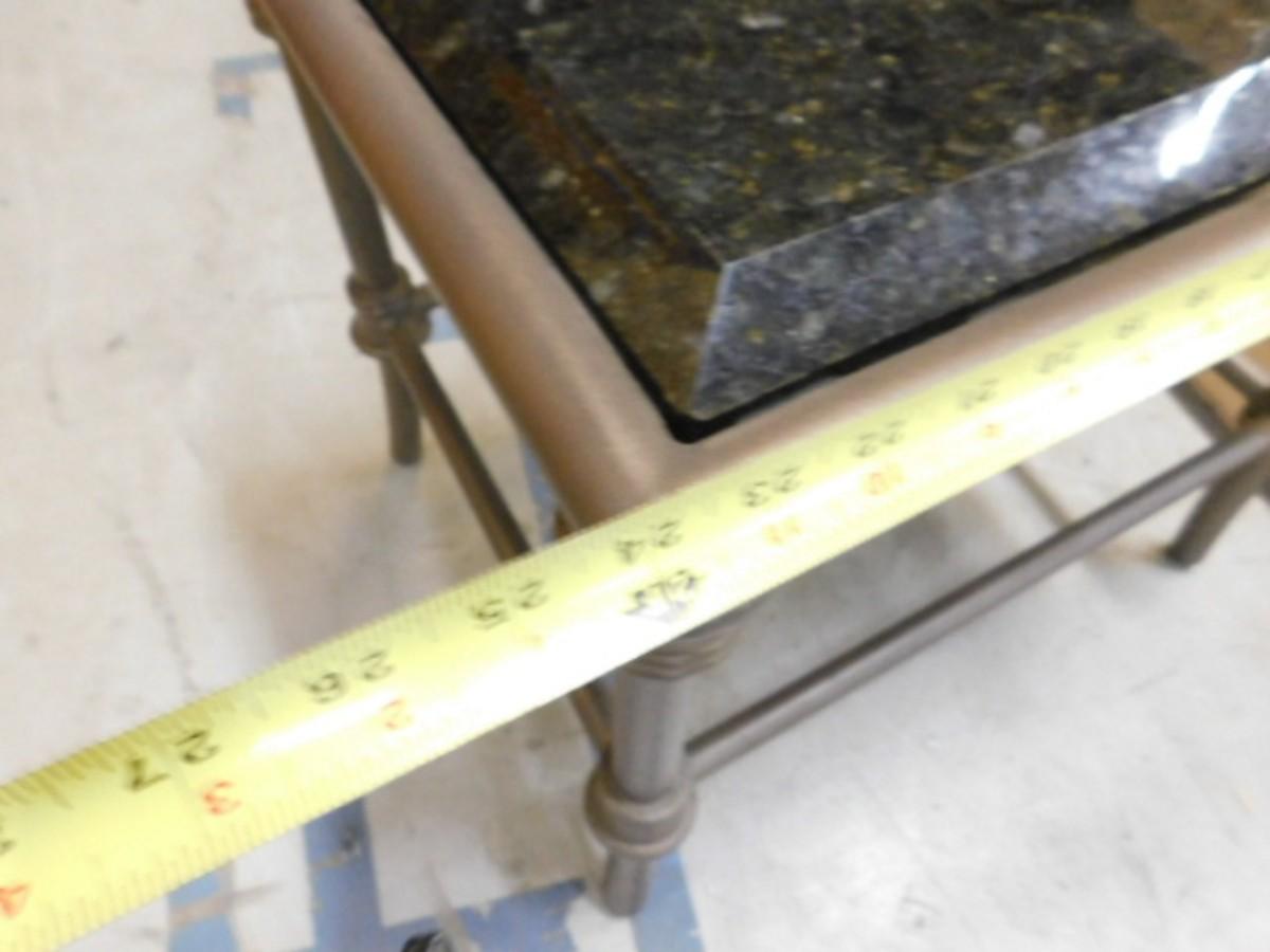 Metal Frame Side Table with Black Beveled Cut Granite Insert Choice C Shipping option via freight or local mover is Buyer's responsibility and expense. Buyer must have all shipping scheduled within the stated dates and times of pickup. Recommended local mover is Beaty Bros. Moving 828-201-2982