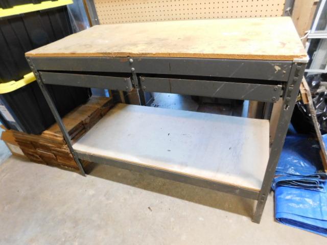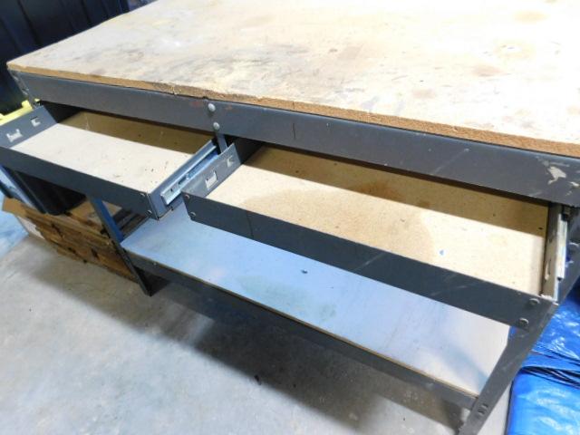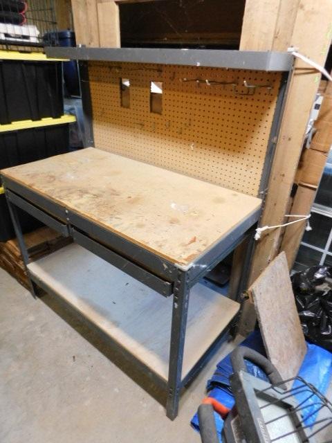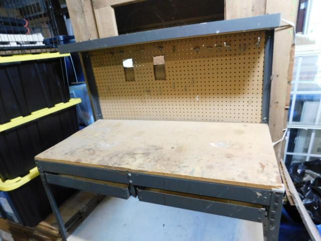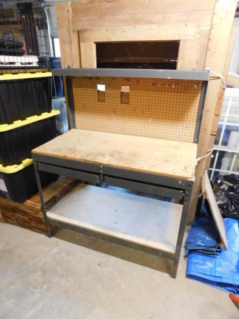 Metal Framed Tool Bench with Peg Board Back and Double Drawers 48"x24"x60"