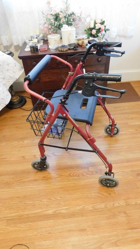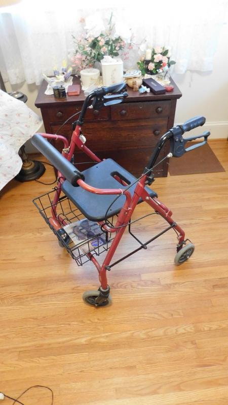 Metal Framed Walker with Wheels, Seat, and Basket (1 of 2)