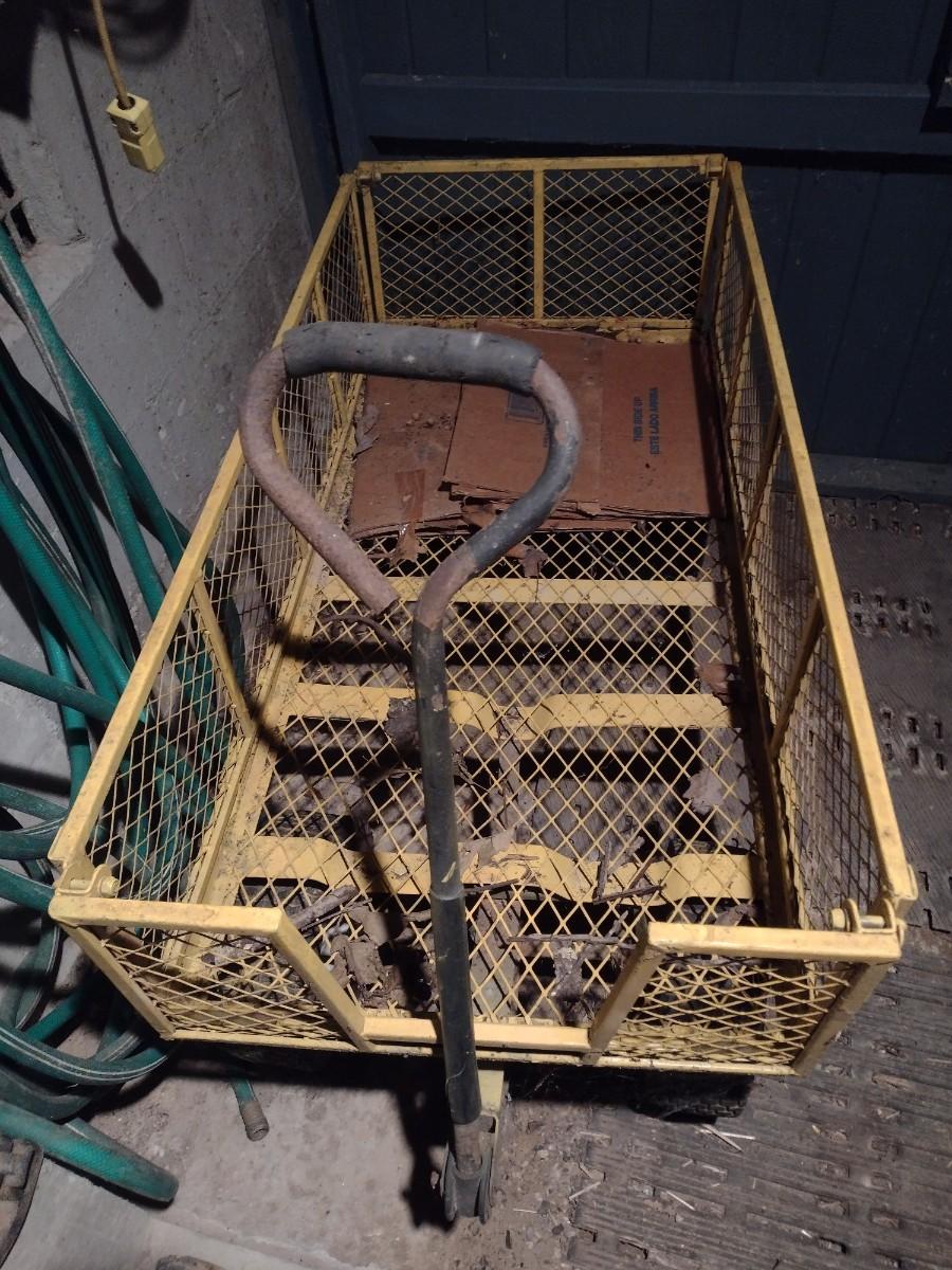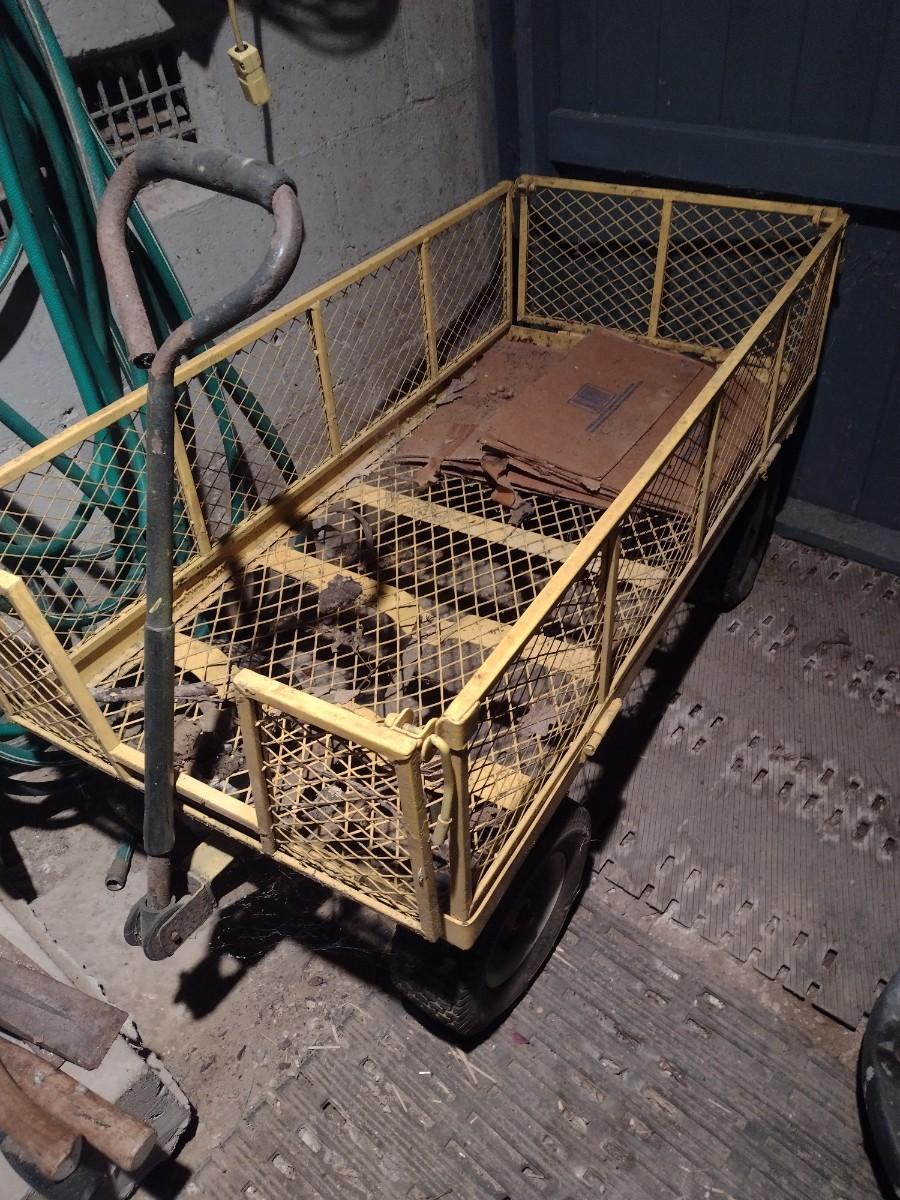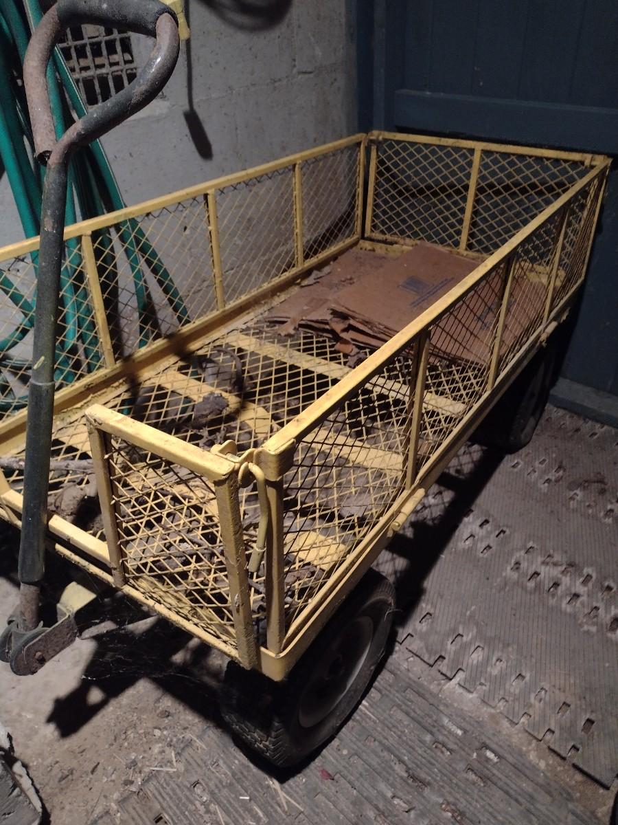 Metal Garden Pull Cart with Pnuematic Tires. Has a flat Tire