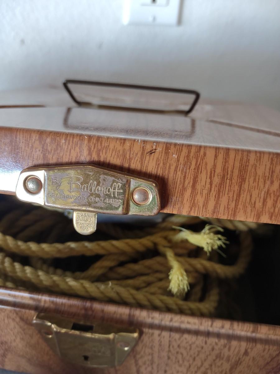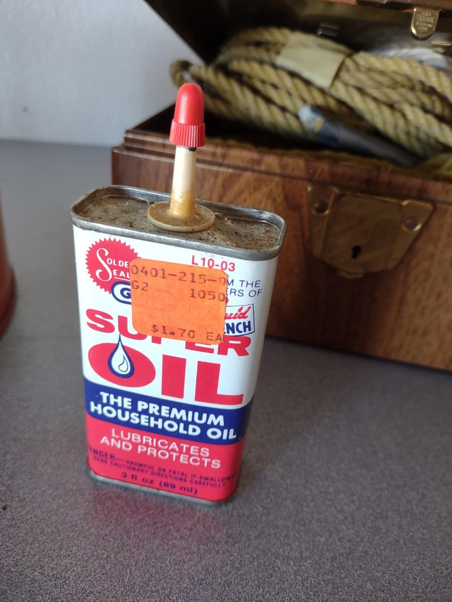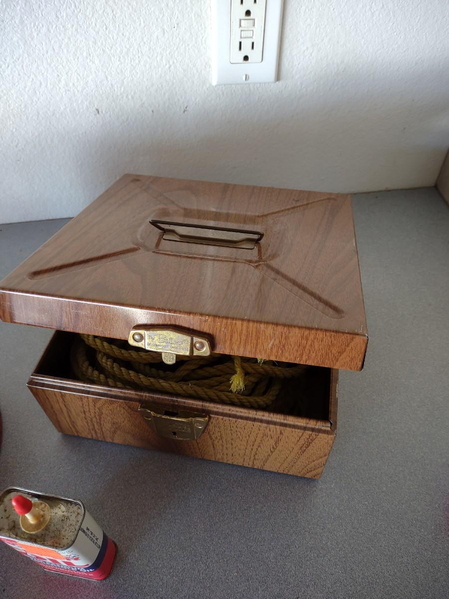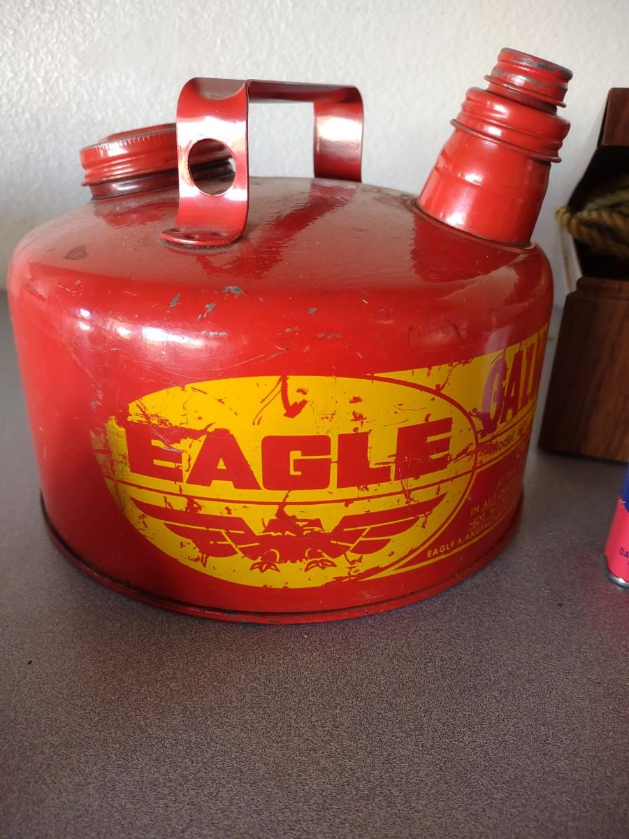 METAL GAS CAN, PIECES OF ROPE, FUNNEL & OIL
