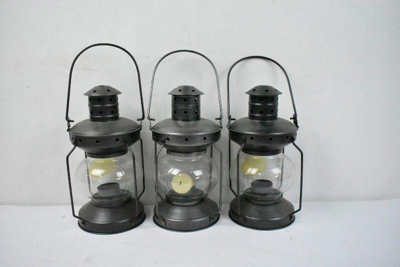 Metal & Glass Lanterns, Quantity 3 - Melted Candles, Needs New Candles