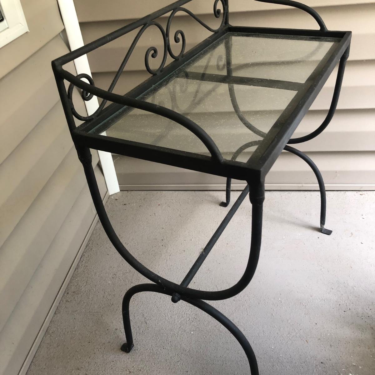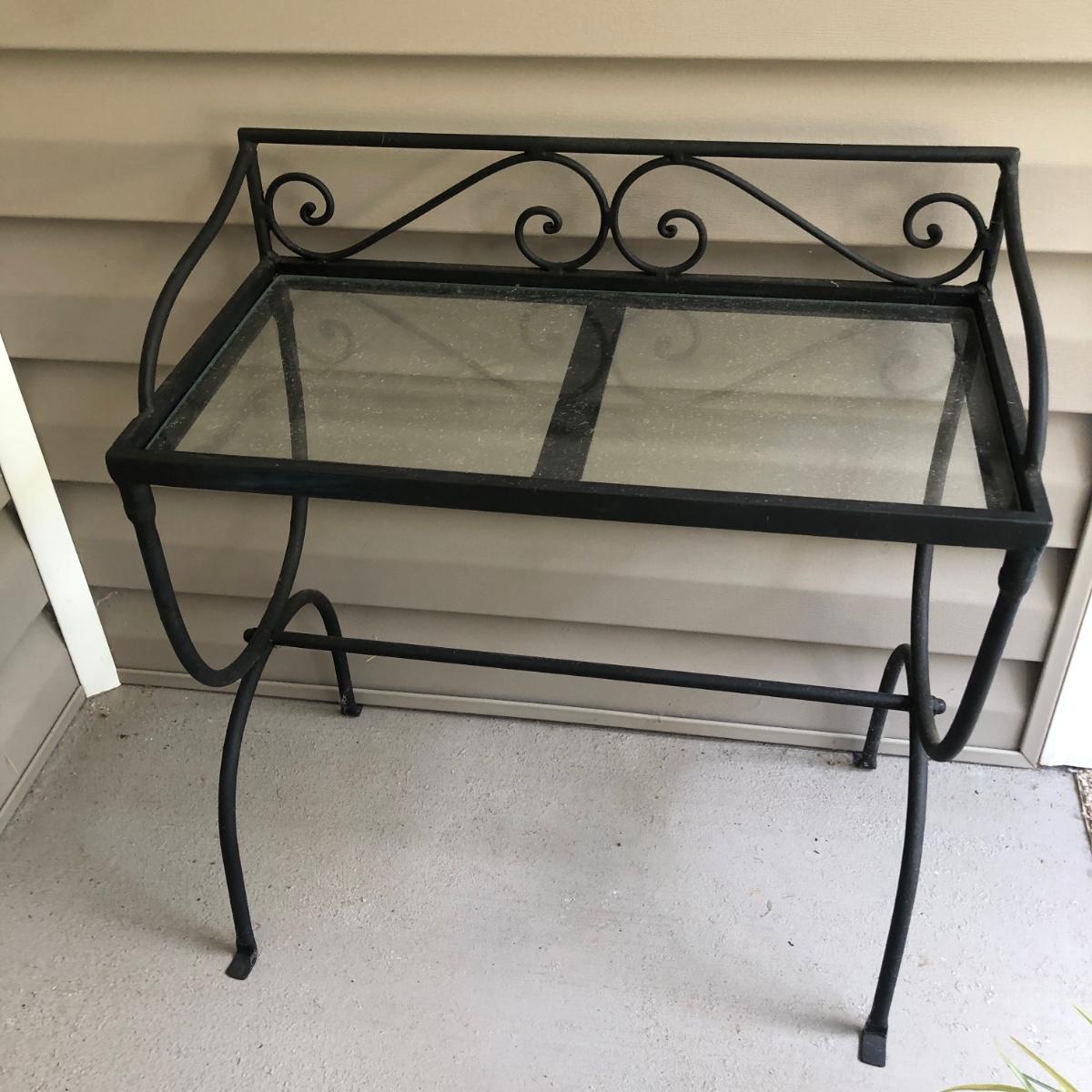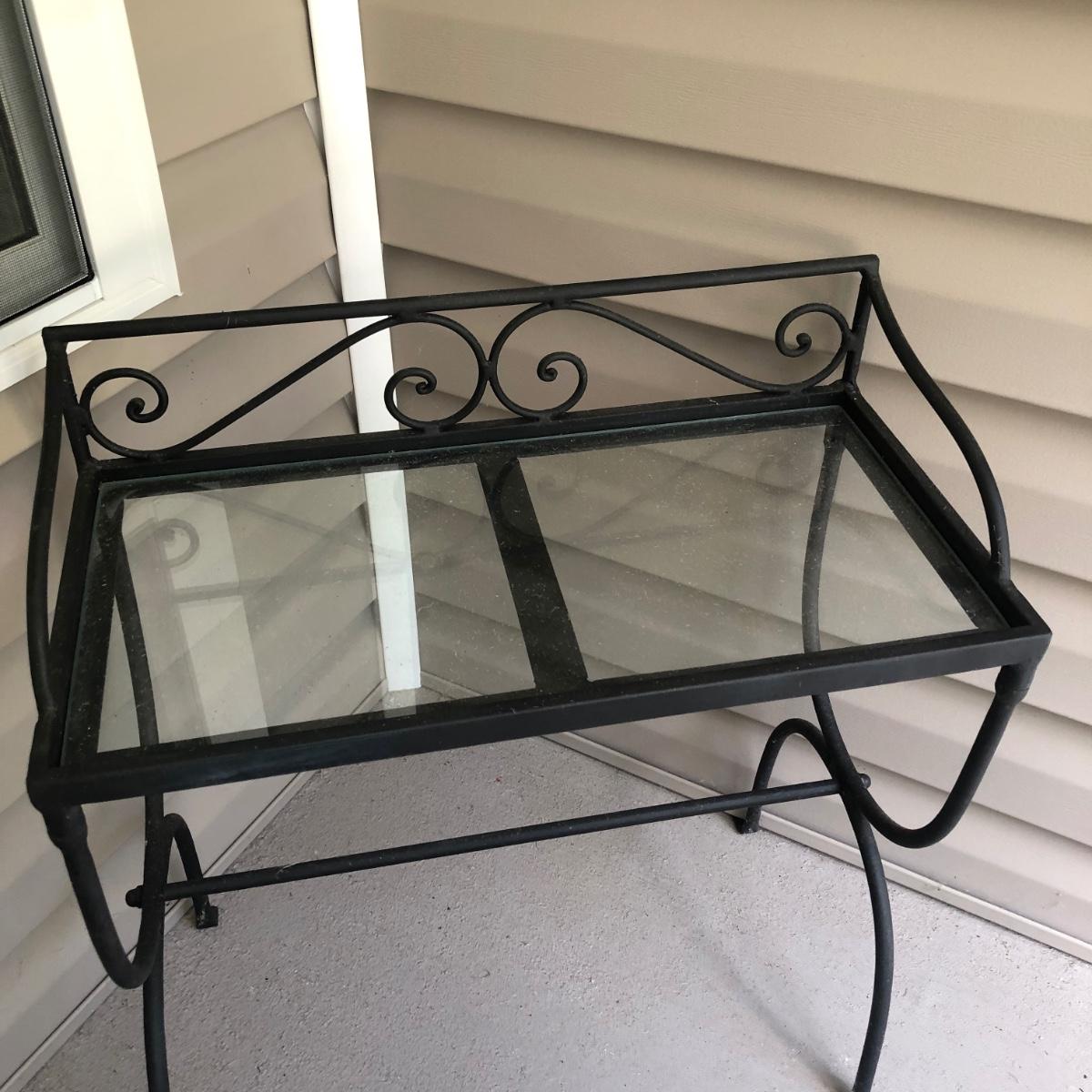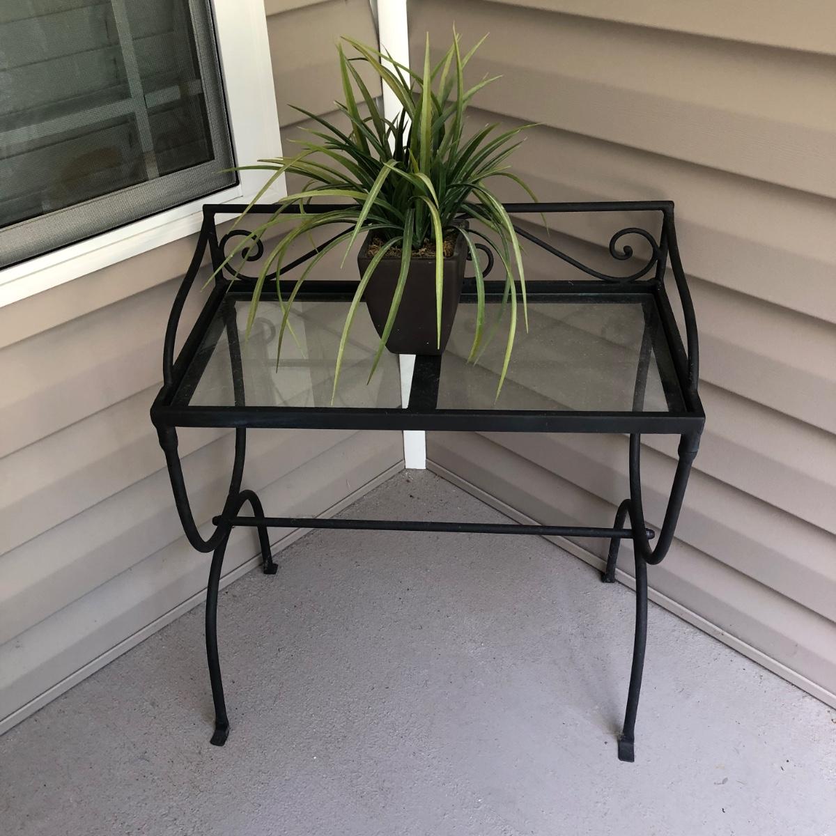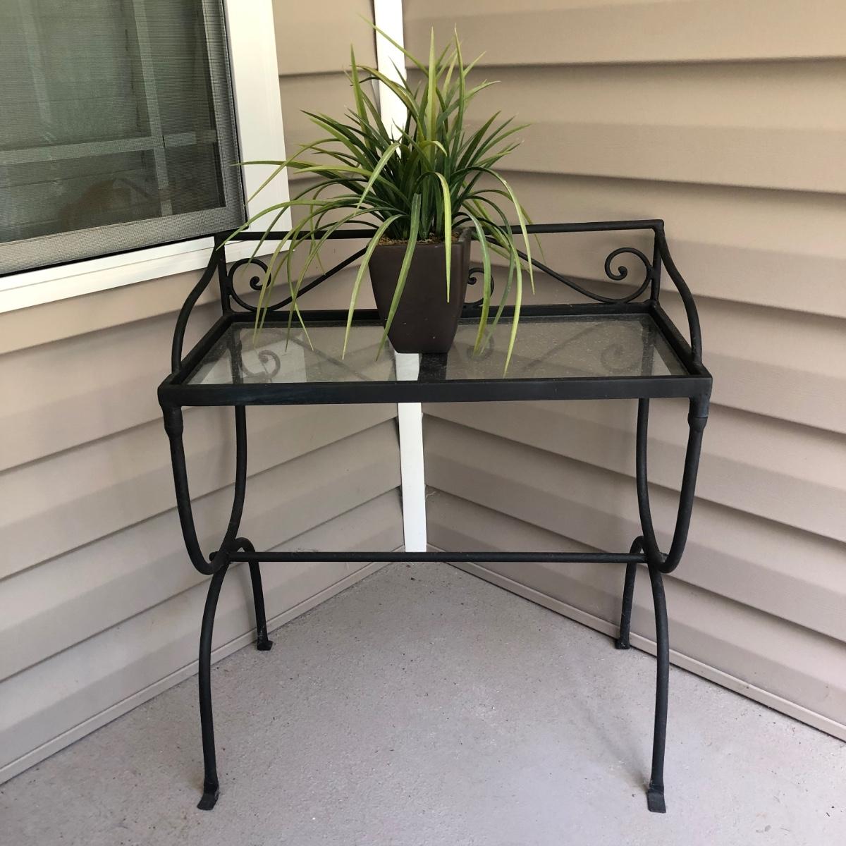 Table measures 21” x 11” x 24”. Glass comes out for safe transport. Faux plant is in a brown pot. Local pick up only.