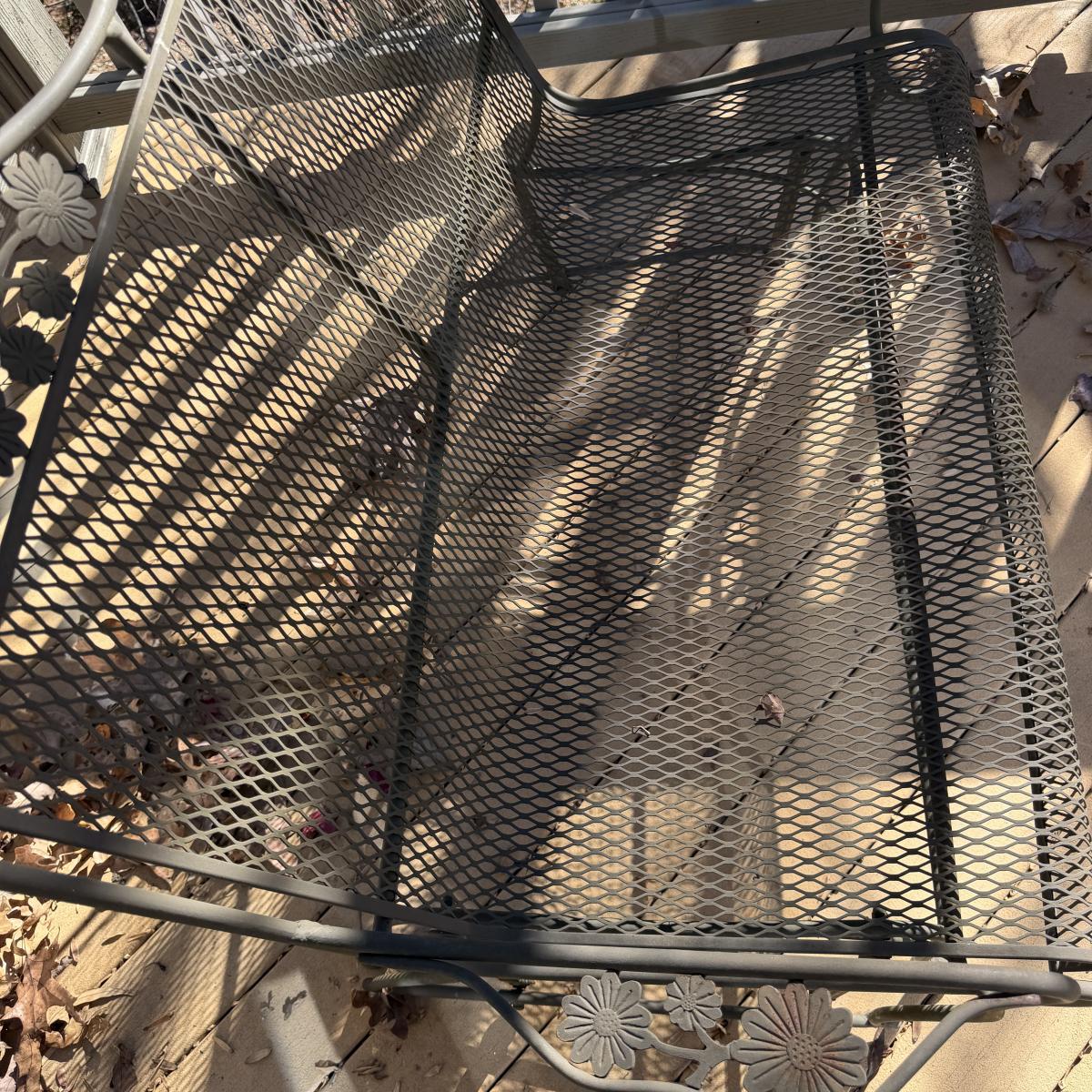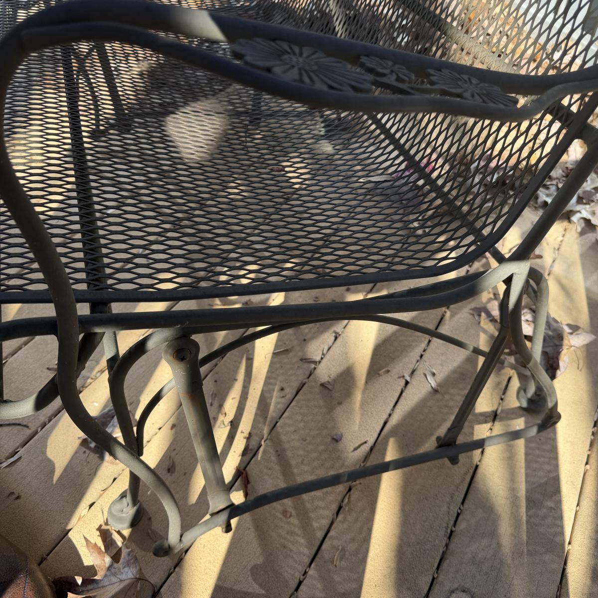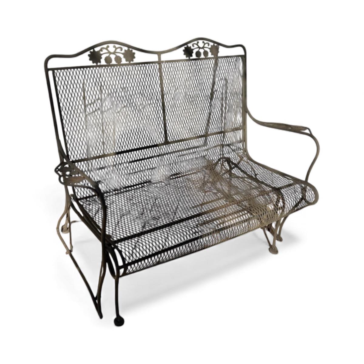 Lot includes a metal glider bench. Bench measures 45” x 25” x 35”H with 16.5” seat height.