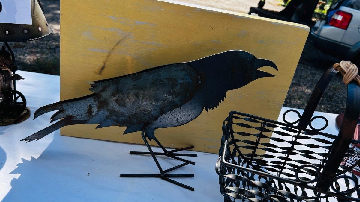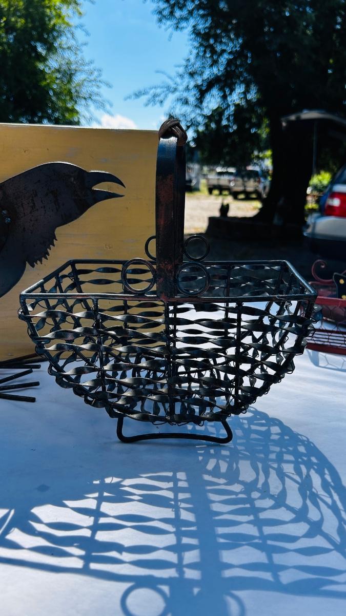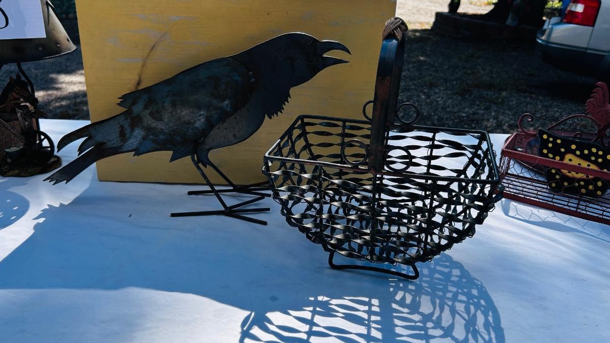 METAL HANDMADE WELDED CROW AND STEEL WOVEN BASKET