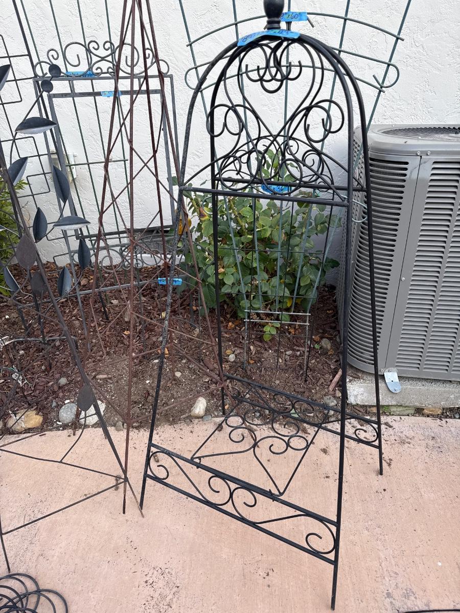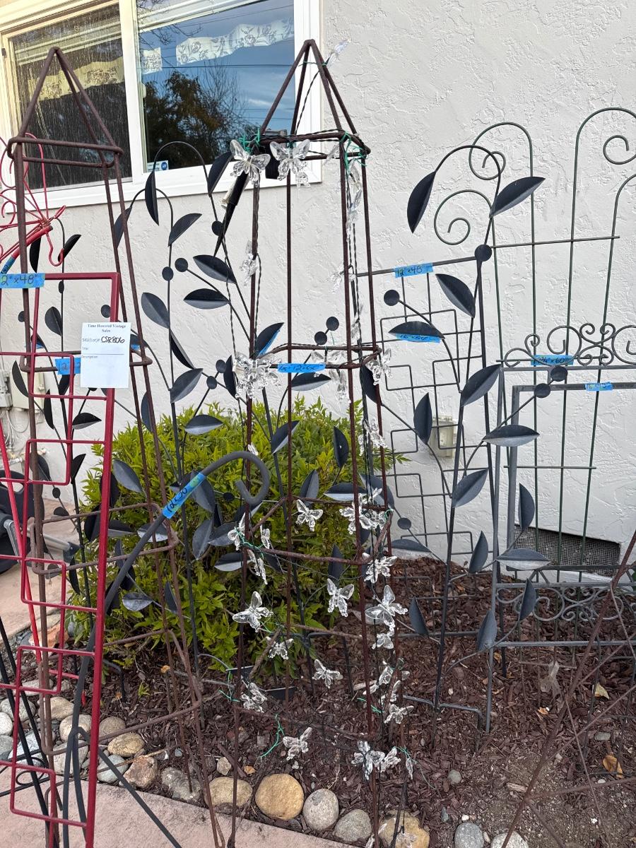 Metal Hanging Pot Planters, Trellises And Decorative Metal Garden Stakes
