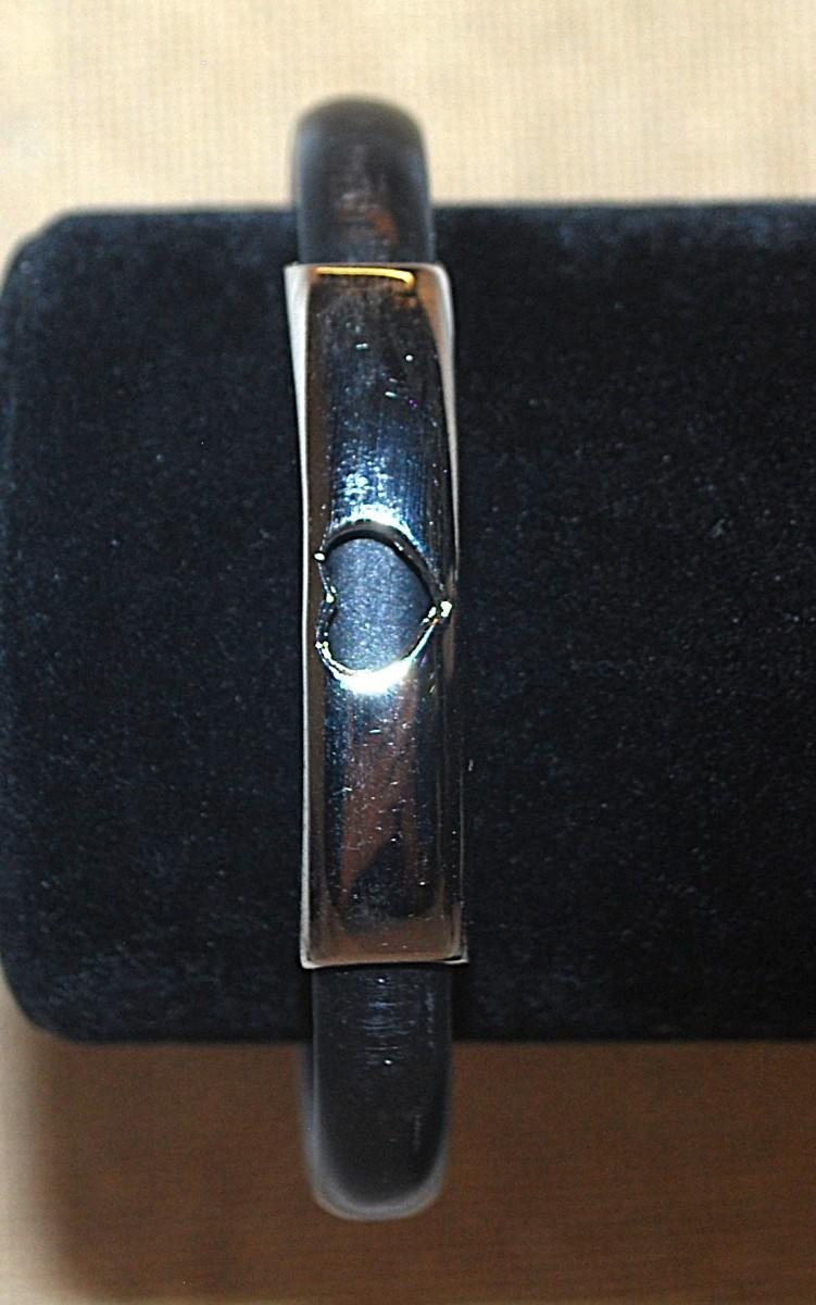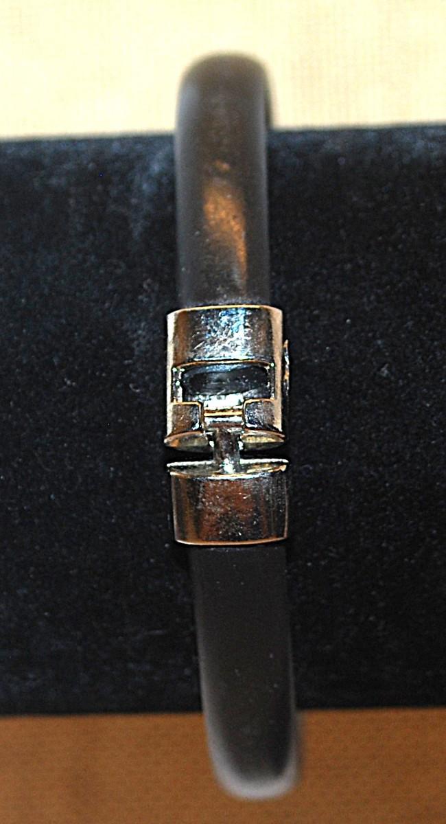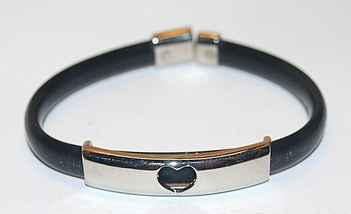Metal "HEART" BRACELET with Silver Tone Bar, Black Rubberized Surround and "Twist T" Closure