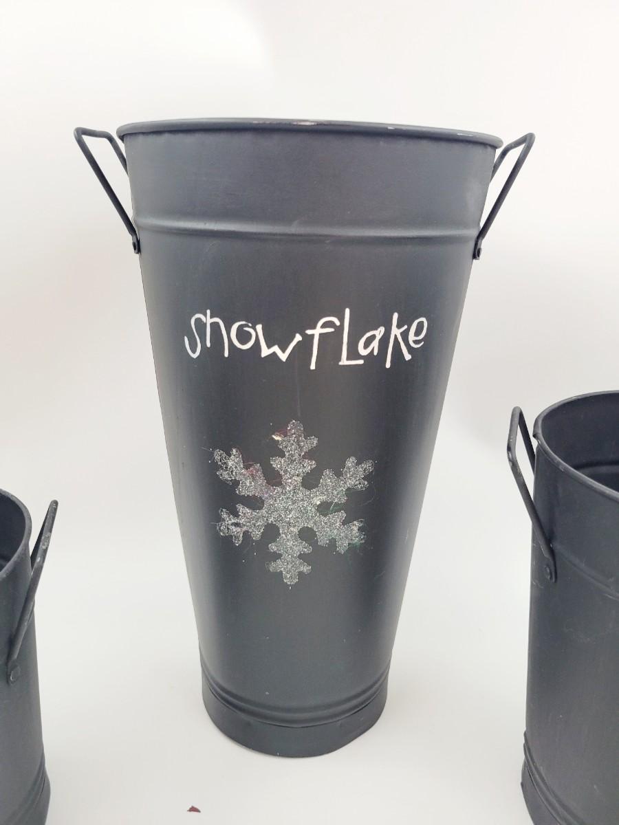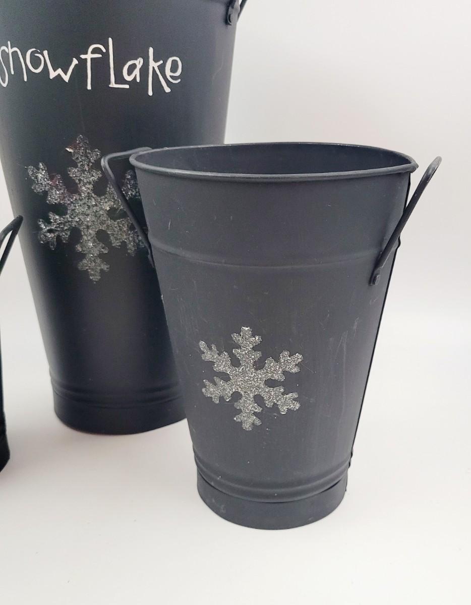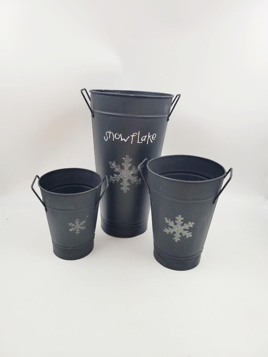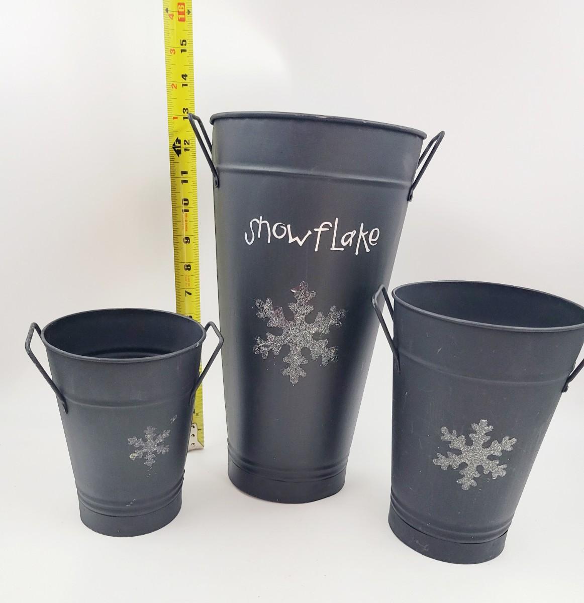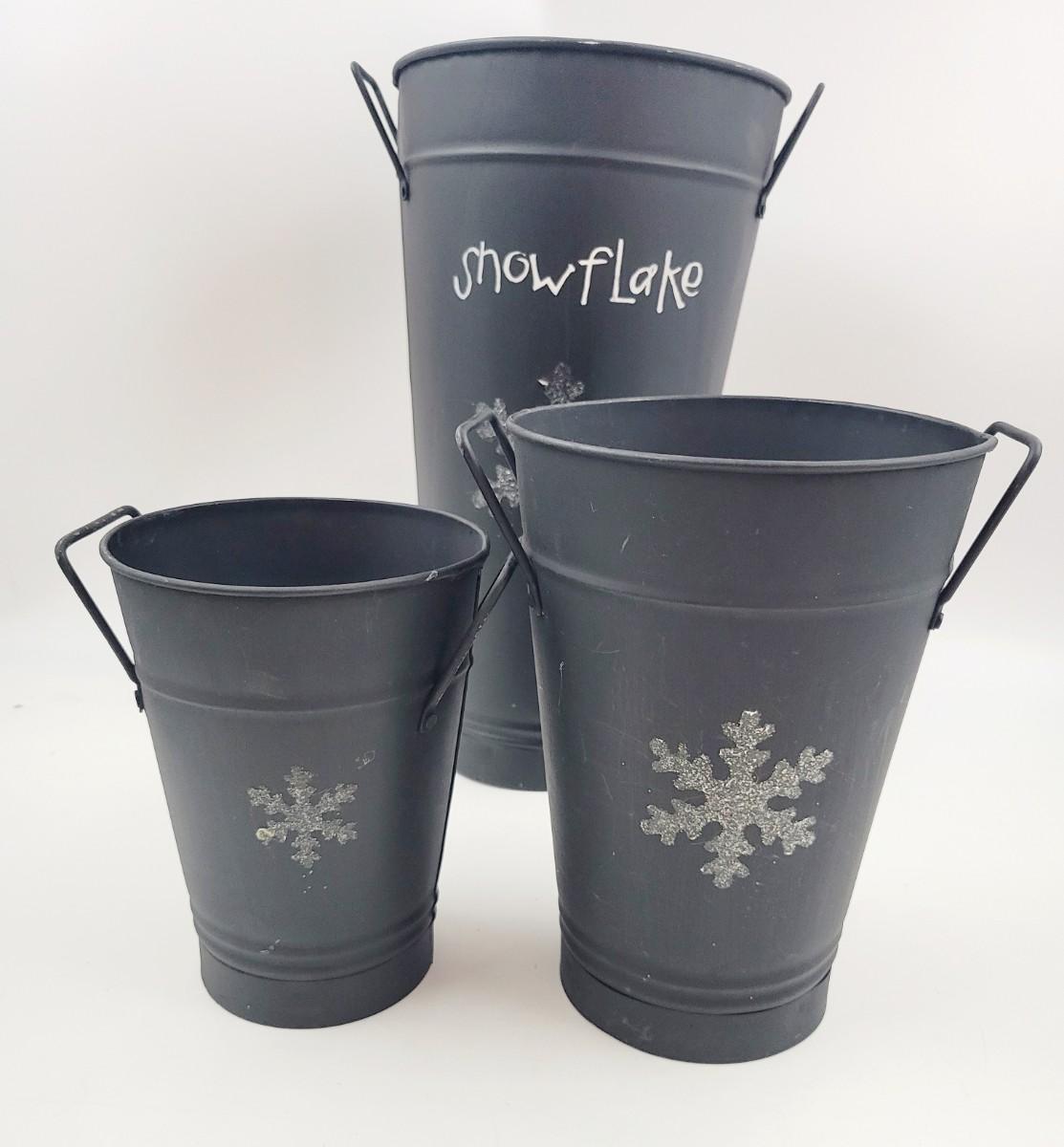 METAL HOLIDAY SNOWFLAKE PAILS 3PC
